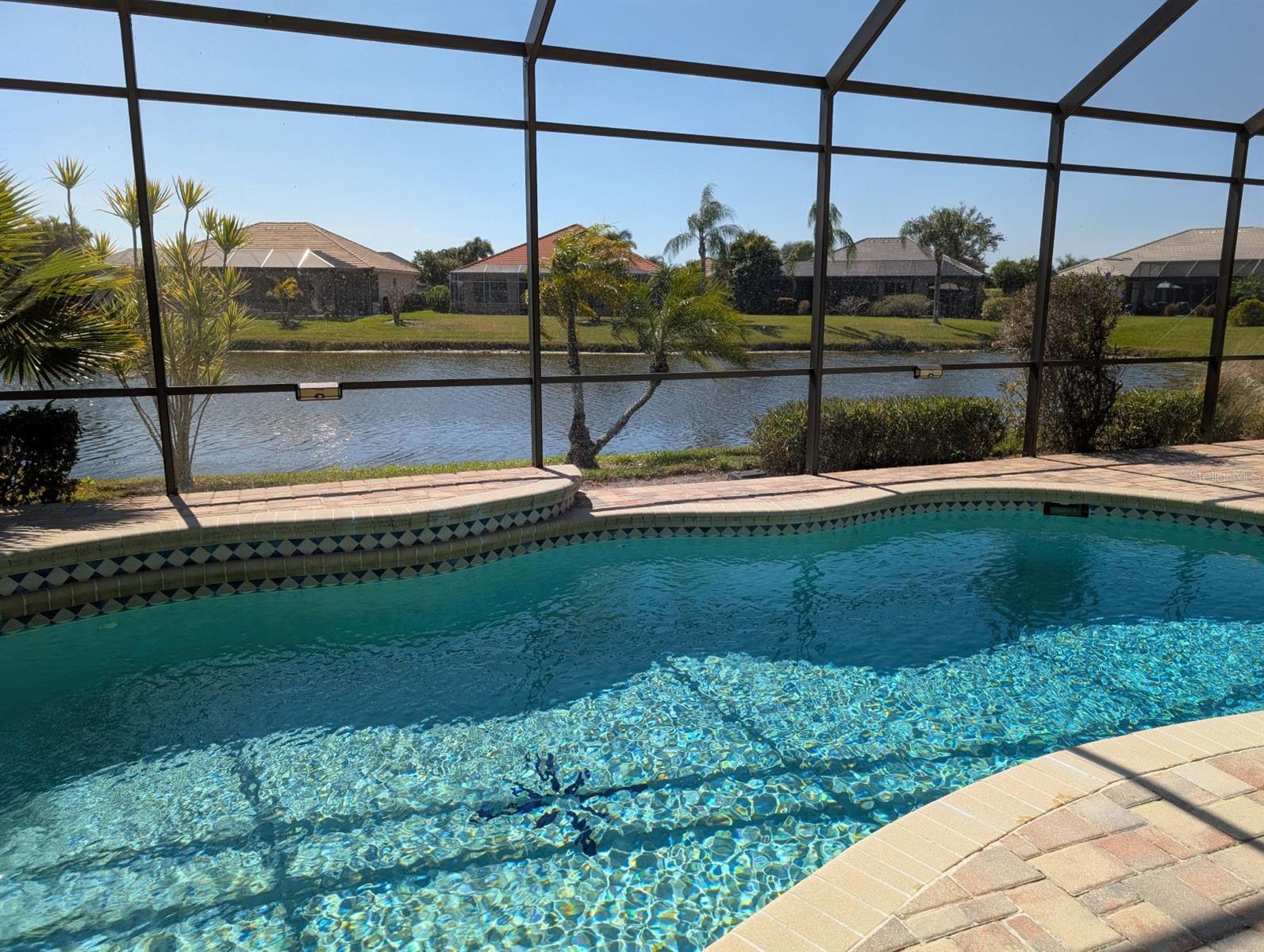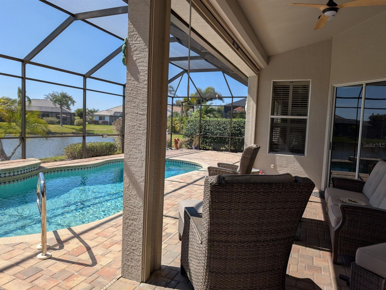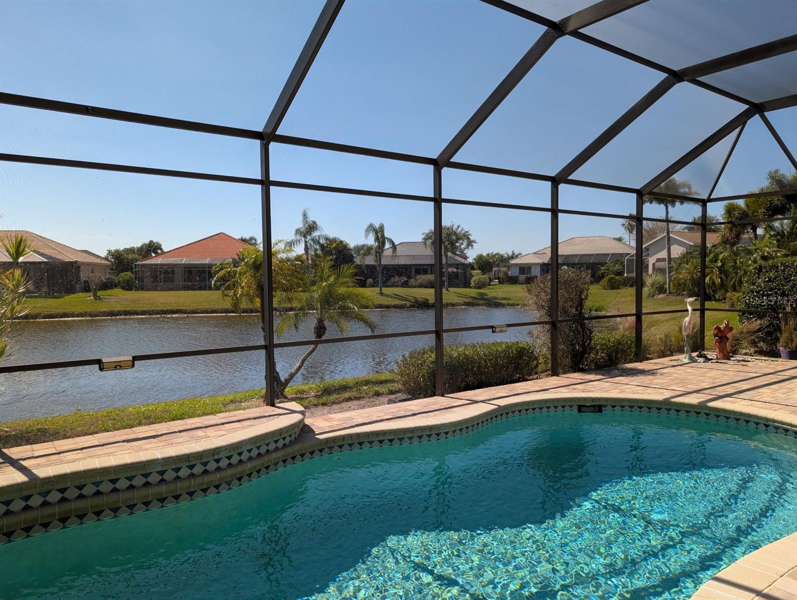 NEW ROOF 2023! Lovely well-appointed Areca home in the desired Bay Ridge neighborhood of Riverwood. Approach the home on the beautiful paved driveway. As you enter, the newly painted formal living area leads you into the updated eat in kitchen with granite counter tops, new backsplash and stainless steel appliances. The open concept family room boasts a sleek and stylish built-in entertainment center for organizing your media equipment and TV. Plantation shutters allow for plenty of natural light. The sliding glass doors will lead you to the expansive resurfaced paved lanai with an inviting pool, water fall and relaxing water view. The primary bedroom with access to the lanai offers a updated modern en-suite bathroom. A split floor plan, the guest bedrooms with a jack-and-jill bathroom, provides privacy for you and your guests. The laundry room is complete with a newer washer/dryer. Other updates include updated flooring, an epoxy garage floor and storm shutters. There is no pool heater. Schedule a showing today and begin living the grand Florida lifestyle you have been dreaming of! Property taxes include an annual CDD fee. Riverwood stands as a premier community in Southwest Florida, offering an exquisitely landscaped setting along the tranquil Myakka River, nestled between Fort Myers and Sarasota in Port Charlotte. Spanning 1300 acres, Riverwoods master-planned community seamlessly blends natural beauty with modern living trends. Enjoy an array of lifestyle amenities, including a recreational center equipped with state-of-the-art fitness facilities, a Lap Pool and Resort Style pool, 6 hard tru tennis courts, Pickell Ball Courts, Lawn croquet, and a Dog Park, among others! Riverwood Golf Club is recognized as a Golf Digest-rated 4 ½ star Golf Course, and Riverwood Beach Club on the Gulf of Mexico offers memberships based on availability. Conveniently located near the new Sunseeker Resort, which boasts a variety of restaurants, the Tampa Rays and Atlanta Braves Spring Training facilities, Boating, World-Class Fishing, and the pristine beaches of Southwest Florida, Riverwood’s location provides easy access to a wealth of cultural and lifestyle opportunities.