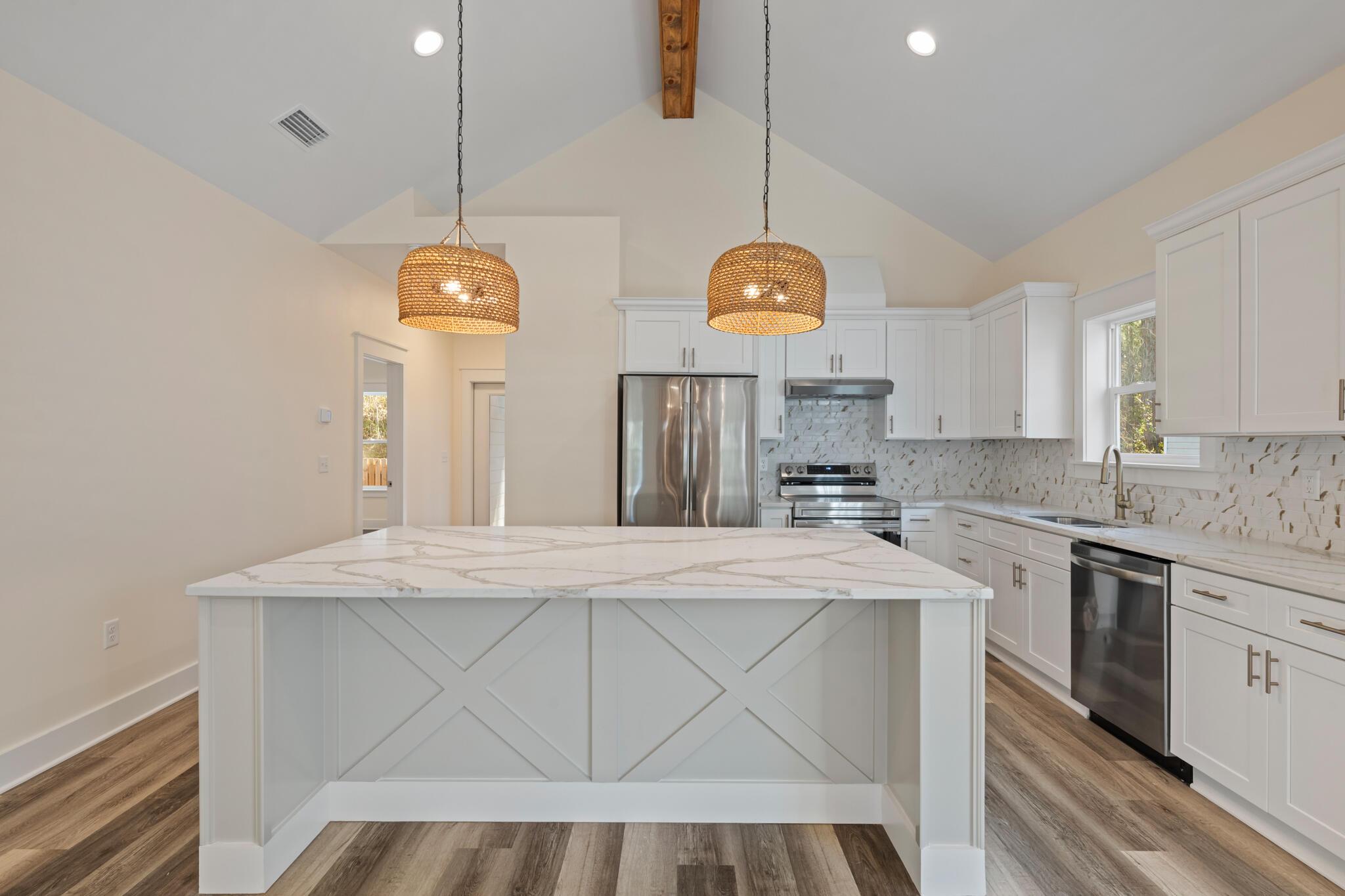 No HOA! Experience investment and relaxing coastal living in this brand-new beach home! Perfectly positioned near Choctawhatchee Bay and the pristine white sands of the Emerald Coast. Just moments from boating access at Cessna Landing and minutes from the Gulf, this New Built, offers an exceptional balance of luxury, lifestyle, and location.The interior is thoughtfully curated with vaulted ceilings, exposed wood beams, and an open-concept design that seamlessly connects the living, dining, and kitchen spaces. The chef-inspired kitchen features quartz countertops and soft-close cabinetry, while the living room invites relaxation with a warm fireplace and inviting coastal ambiance.