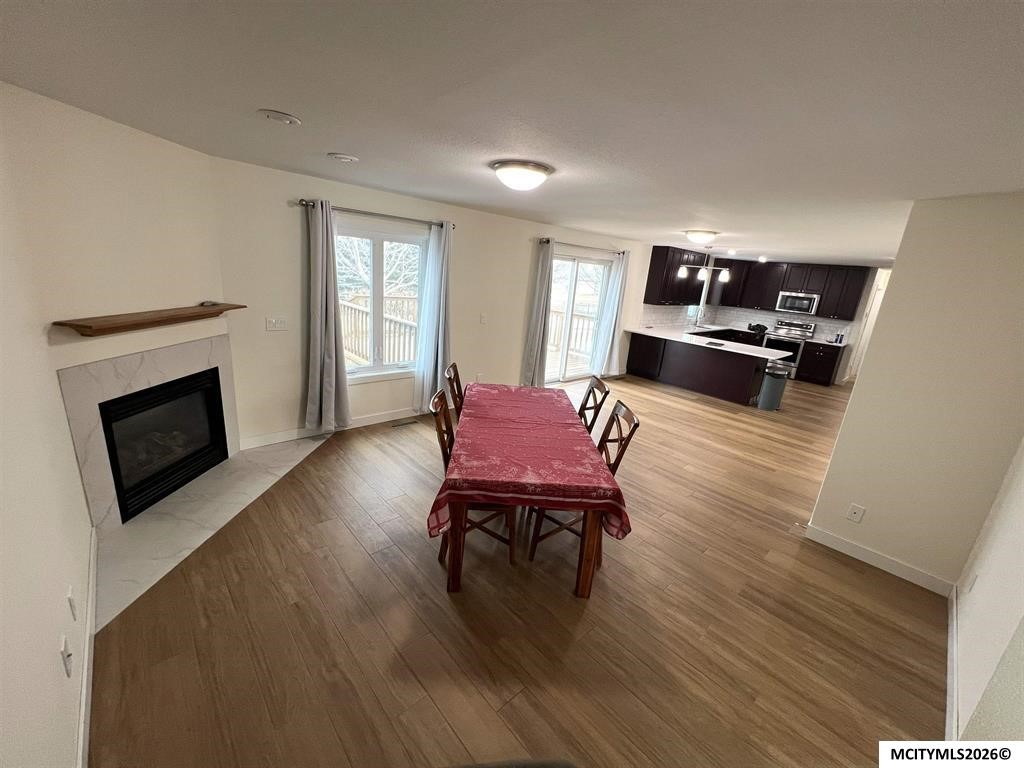 Lovely and young 2 bed/1 bath one level condo in Greenwood! Enter into the relaxing living room, where the ambiance is enhanced by the warm glow of a fireplace creating a space perfect for both quiet evenings and engaging conversations.