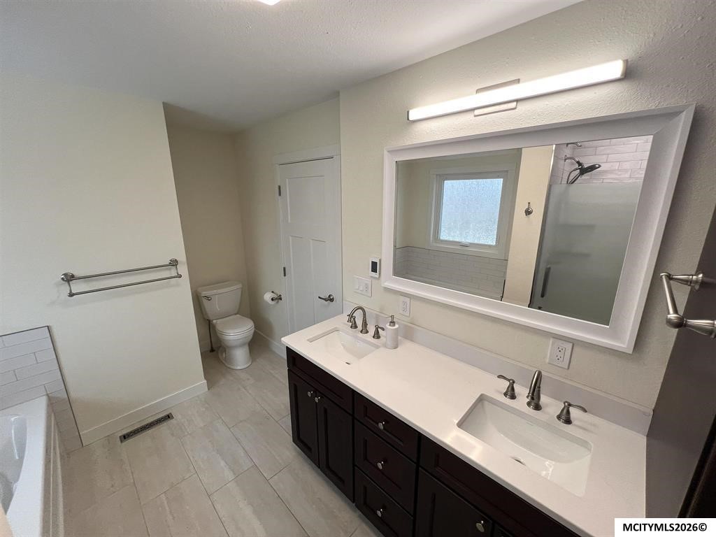 A stunning 2-story home nestled on a quiet cul-de-sac in Stone Pillar Subdivision is waiting to be called your new Dream Home. There has been a ton of updates completed on the interior and gives the feel of a brand new home. Starting on the main floor you find a large living room and family room with a gas fireplace, dining room, laundry room, updated 1/2 bath, and a beautiful New kitchen with appliances included. Upstairs you find 3 bedrooms, a full updated bathroom with in floor heat, a large primary bedroom suite with a large walk in closet, and updated full bathroom with in floor heat, bubbler tub, and walk in shower. Down to the basement you will find the 5th bedroom, large family room, and another updated full bathroom. The large oversized attached 3 stall heated garage is an added bonus. Outside you find a large back yard with a newly installed fence and a large deck overlooking the back yard. The furnace, AC, and water heater have also been updated. Dont miss out! Call today!