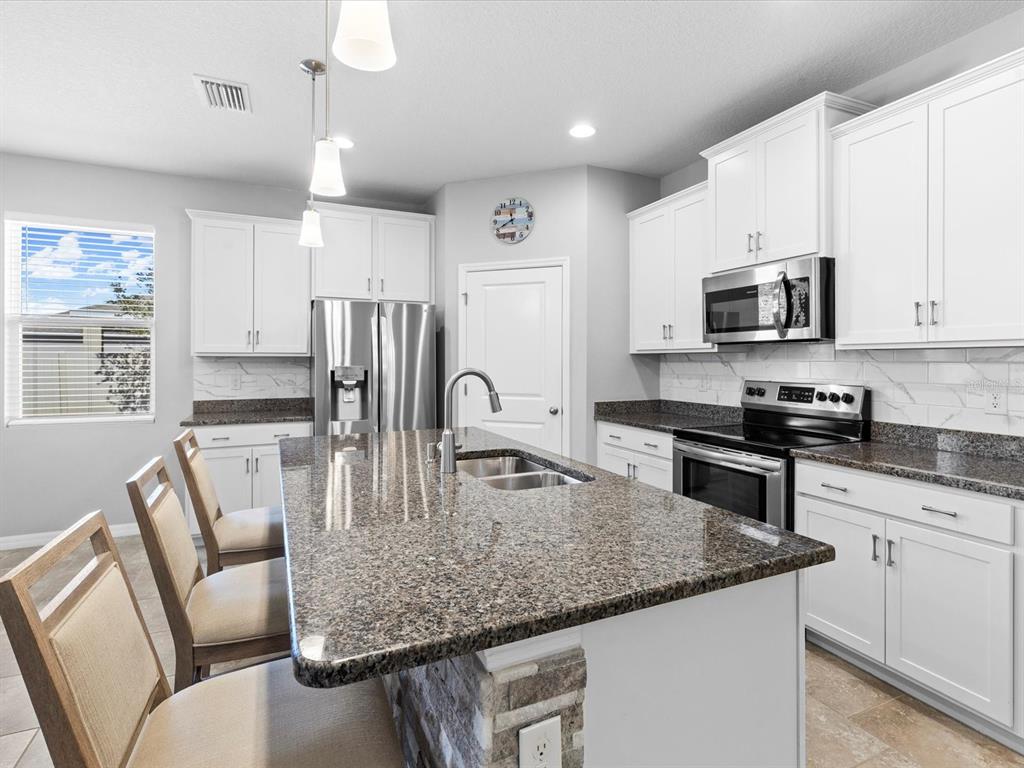 Welcome Home to this exceptionally spacious rare 5 Bedroom 3 Bath residence!! Imagine having the opportunity to own a nearly-new, elegant ranch-style home nestled in the Highly Sought after Community of The Preserve at South Branch. This 2,237 sq. ft. residence offers a harmonious blend of luxury and versatility. The main living area boasts an expansive OPEN FLOOR PLAN with soaring ceilings, a gourmet kitchen equipped with granite countertops, stainless steel appliances, a large island, and 42-inch cabinets. The primary suite is a serene retreat, complete with dual sinks, a walk-in shower, private water closet and a generous walk-in closet. The five bedroom split floor plan offers lots of choices for you from plenty of rooms for the family, a home office or flex space so many choices. The homes is equipped with a water softener and filtration system. Step outside to the screened-in patio and enjoy your morning coffee where you'll enjoy peaceful views of the quiet preserve with the Florida birds and wildlife! The Modern RESORT STYLE community amenities include 2 POOLS, an upgraded fitness center, access to the walking and biking trails, a dog park, playgrounds and more. Ideally located near top-rated schools, shopping, dining, local universities, medical facilities, Amusement Parks, Downtown Tampa, and the world-renowned Gulf Coast beaches and Golf Courses. A must-see property—schedule your private tour today!