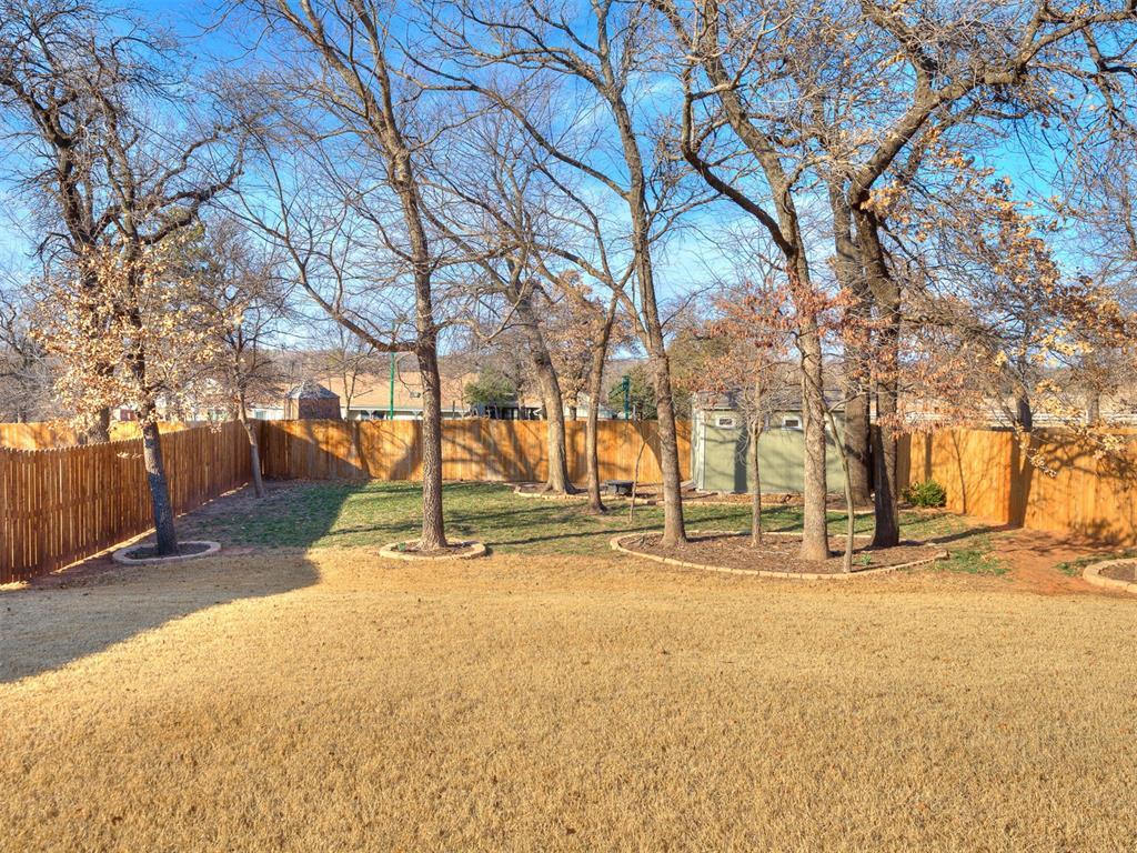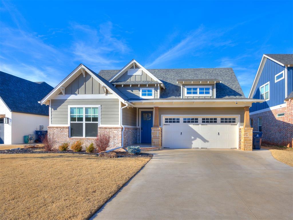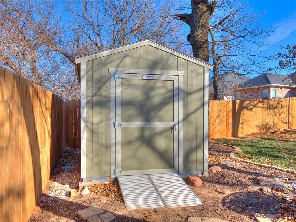 Welcome to this rare, beautifully upgraded Modern Farmhouse by McCaleb Homes in The Preserve at Oakdale Ridge. This is a charming, highly desirable, one-street neighborhood surrounded by a serene wooded preserve.This very functional open floor plan offers 3 bedrooms, 2 bathrooms, a 3-car tandem garage, plus a designated study.The inviting living room showcases a rock corner fireplace with wood-beam mantel and built-in media nook, flowing seamlessly into the spacious chefs kitchen featuring a large island, abundant cabinetry, and additional dining space.The private primary suite is designed for comfort and convenience with dual vanities, an oversized shower, freestanding tub, and a spacious walk-in closet connected directly to the utility room.Step outside to a covered porch overlooking mature landscaping and the tree preserve, plus enjoy an insulated outdoor storage building with pegboard walls ideal for hobbies and organization.Abundant privacy yet still close to I-35, shopping, restaurants and entertainment. Approximate drive times:Downtown OKC 15 min Tinker AFB 20 min Airport 25 min OKC Zoo & Science Museum 12 min New YMCA & upcoming public library (Summer 2026) 10 min