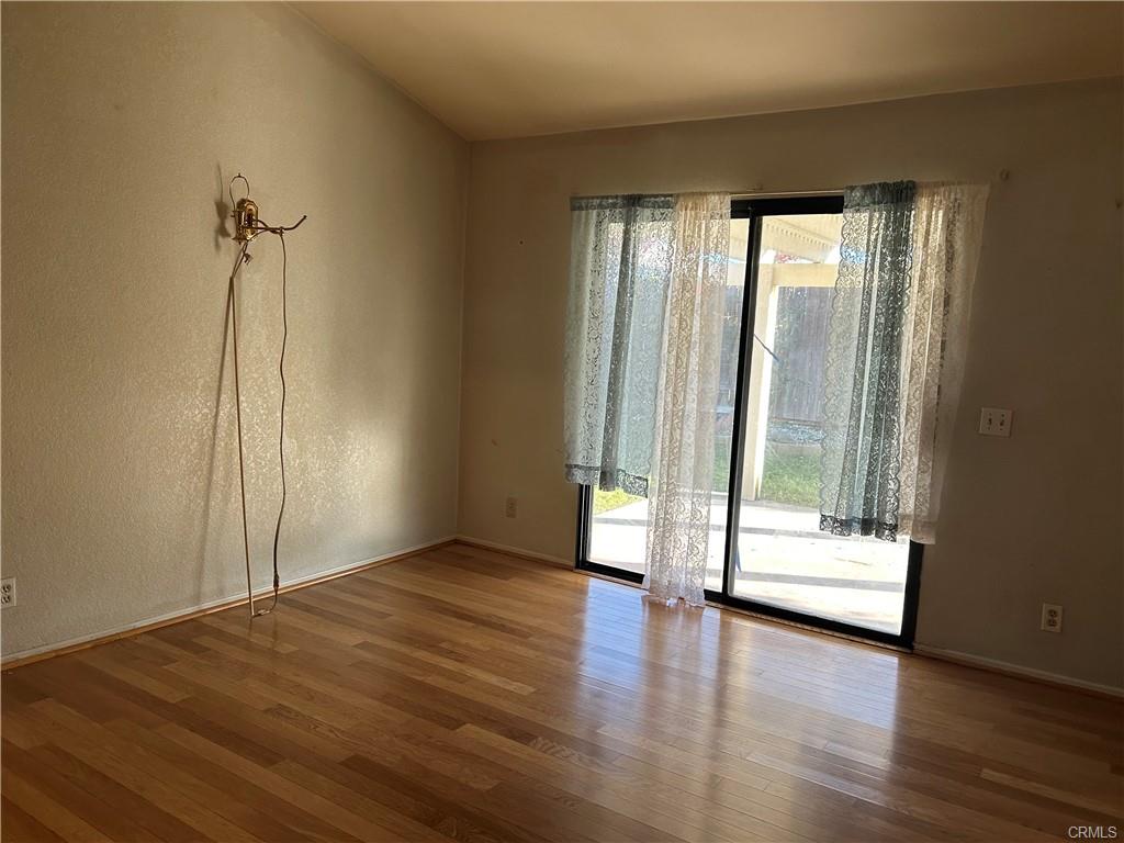 This 3-bedroom, 2-bath home features a functional layout and a spacious backyard. Entry living room leads into an open kitchen with ample cabinetry and a breakfast bar, joined by a family room that opens to a covered patio. The primary bedroom has a private bath and own entry to backyard; two additional bedrooms share a second bathroom.