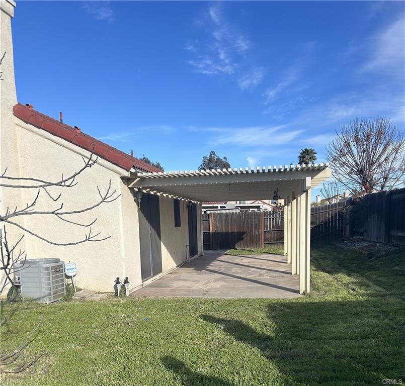 This 3-bedroom, 2-bath home features a functional layout and a spacious backyard. Entry living room leads into an open kitchen with ample cabinetry and a breakfast bar, joined by a family room that opens to a covered patio. The primary bedroom has a private bath and own entry to backyard; two additional bedrooms share a second bathroom. Recent updates include a new HVAC system, electrical box and wiring, water lines, and exterior fencing. The backyard is ideal for kids, pets, or gatherings, with a cemented covered alumna wood patio and low-maintenance landscaping.