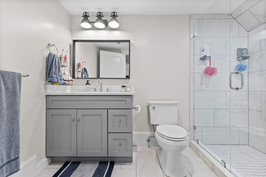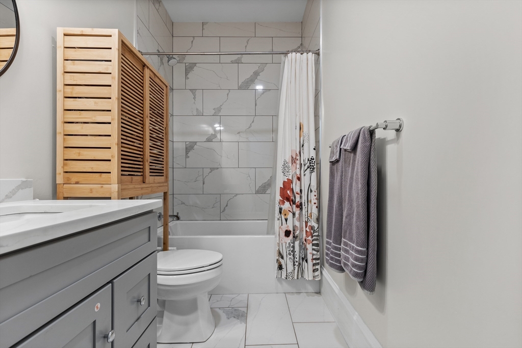 Experience modern living in this beautiful condo at 199 Trenton Street! This sophisticated home features two floors of living space with an open concept floor plan, stunning kitchen finishes with quartz countertops, full slab backsplash, double high cabinetry and GE appliances. This two bedroom, two bath features a floor-through primary suite equipped with study nook, 75”x6 walk-in closet with custom cabinetry, and primary bath with a walk-in shower. The upper level bedroom is highlighted by a sun-filled bay window. Custom blinds installed throughout. Additional amenities include in-unit washer/dryer, Central HVAC, Smart thermostat, shared green space, and low condo fee. Nestled in the vibrant Eagle Hill neighborhood, just minutes away from two MBTA Blue Line stops, trendy restaurants, and Bremen Street Park, making it easy to explore all that East Boston has to offer. Experience the perfect blend of luxury, style, and convenience.