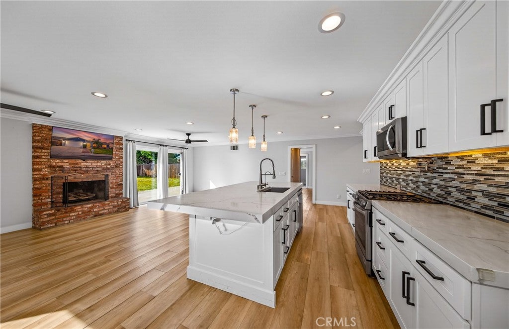 MOVE IN READY...Welcome to this charming three bedroom, two bath home thoughtfully remodeled throughout 2019-2021. The kitchen shines with quartz countertops and a stylish backsplash, while the family room has a spacious layout with a fireplace that creates the perfect space for cozy evenings. The AC/Heater unit is newer as well. Nestled in a well-established neighborhood, the large backyard provides plenty of room to play, entertain, or unwind-truly a great home for making lasting family memories. The property is located near the 60 freeway, schools, and shopping. Come take a look.