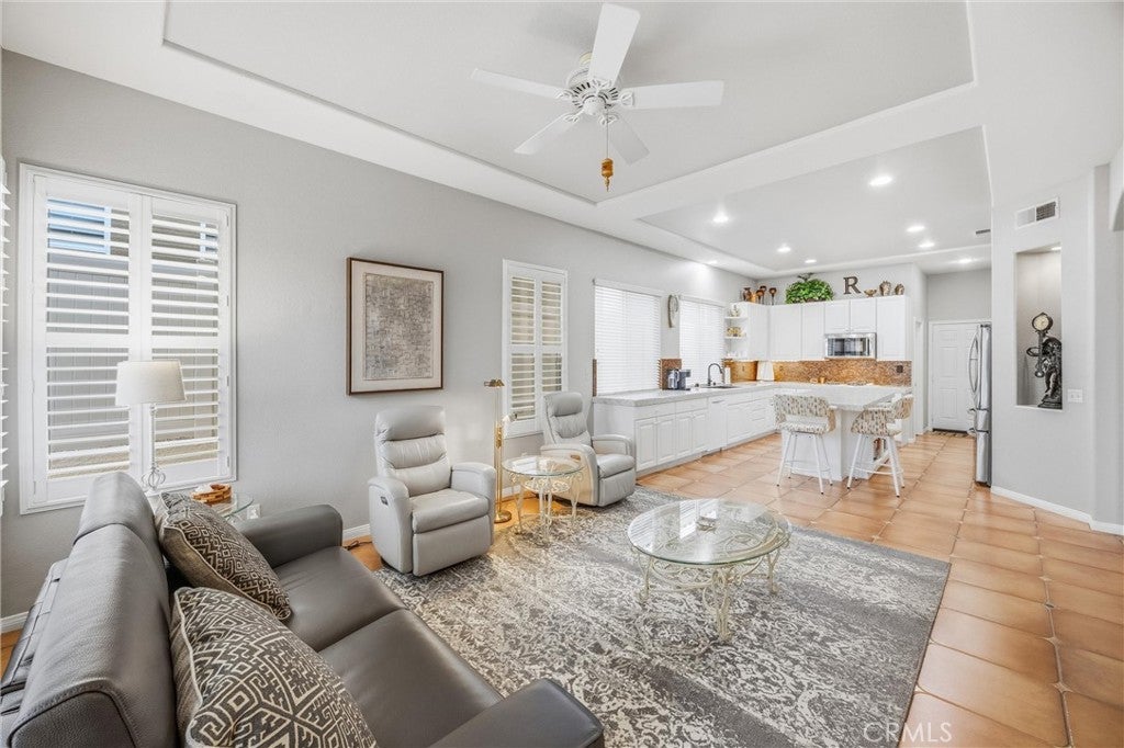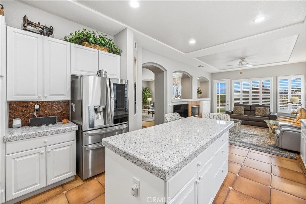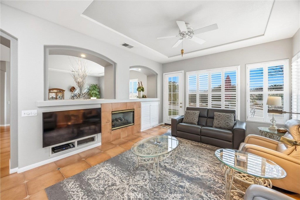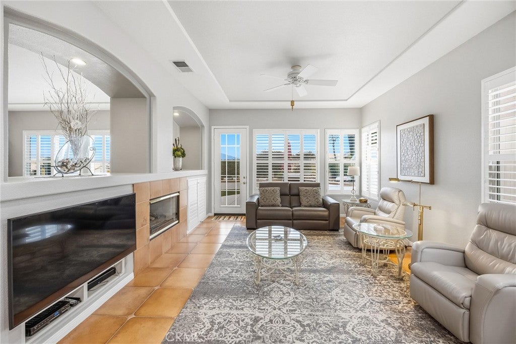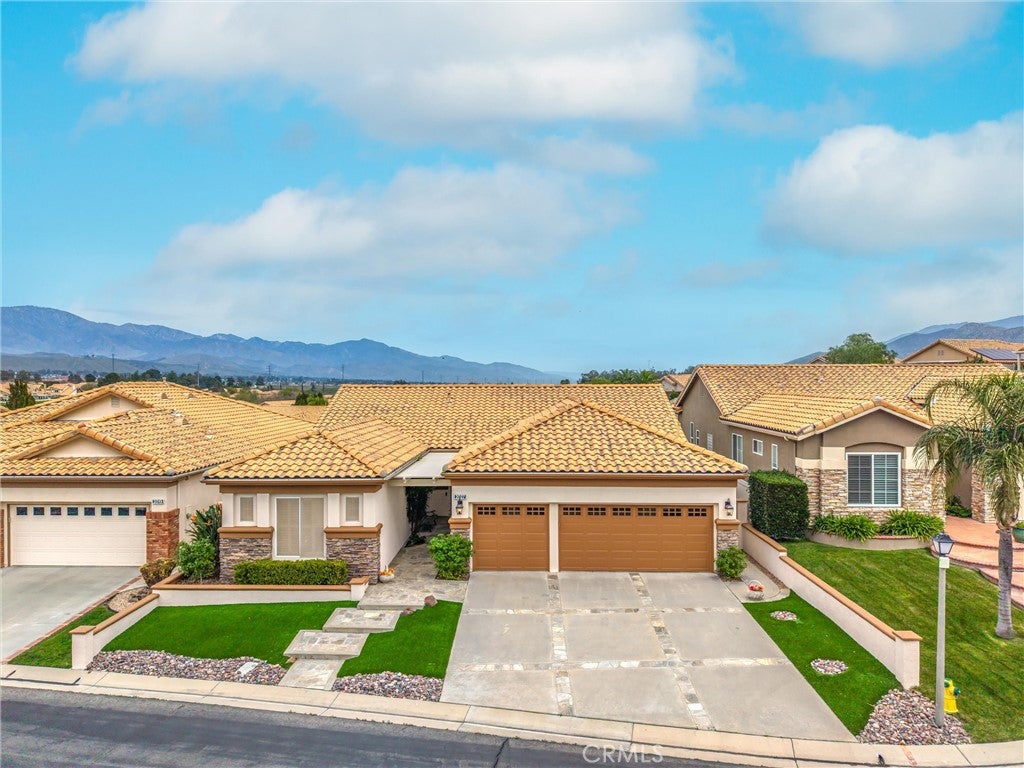 Welcome to 2027 Melbourne Circle, a beautifully maintained residence nestled in the prestigious, guard-gated 55 Sun Lakes Country Club community. This exceptional Wisteria floor plan features 2,219 square feet of comfort, style, and thoughtfully designed living space. Step inside this 2 bedroom, 2.5 bath home and the spacious living room quickly becomes the focal point of the home with abundant natural light and views. The dining room creates an easy, open flow with plenty of room for memorable gatherings. Step inside the kitchen, where an oversized island, double ovens, and beautiful quartz countertops create both sytle and functionality. The kitchen opens to the family room, where a charming fireplace anchors a space destined to be your favorite spot for relaxing. The serene primary suite captures lovely backyard views with the majestic San Gorgonio Mountains beyond. Enjoy a full en-suite bath with double vanities and a walk-in closet enhanced by a built-in organization system. The guest bedroom and bath are conveniently situated side by side, with the bathroom featuring a newer walk-in shower designed for safety and comfort. The Wisteria also includes a versatile bonus room, ready to serve any purpose you envision. An attached three-car garage-a rare find in Sun Lakes Country Club-is designed for storage and includes a newer water heater. The impressive yard surrounding this delightful home boasts low-maintenance synthetic turf in the front and a backyard that offers stunning mountain vistas. The community benefits from access to premier amenities that include 2 golf courses, 3 swimming pools, tennis and pickleball courts, 3 clubhouses, fitness facilities, 2 restaurants, lounge, and so much more. This home offers a resort lifestyle in a serene setting, perfect for any active senior seeking a vibrant community to call home.