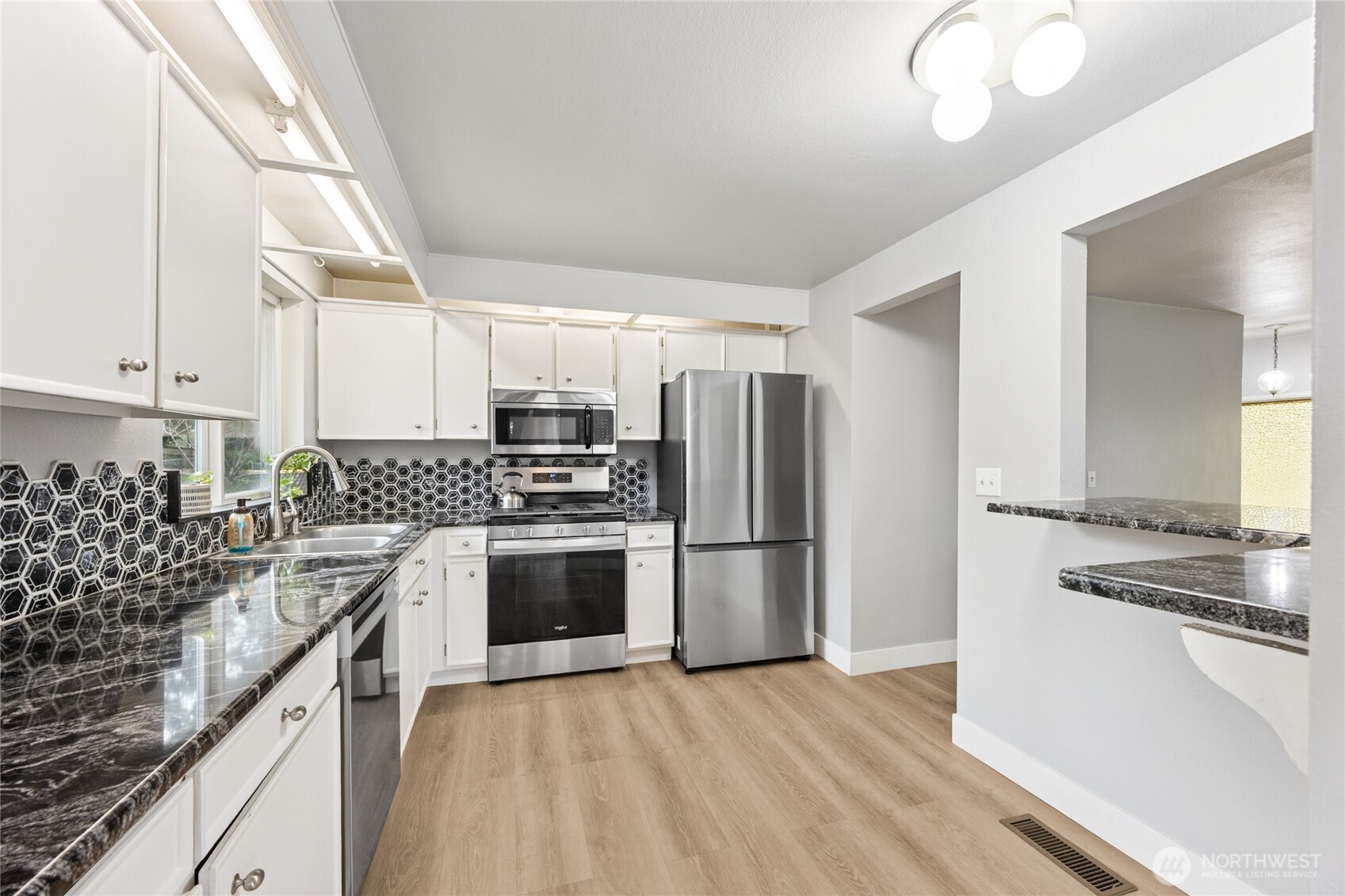 VA Assumable! Renovated! Private! No HOA! Fully-Fenced! Located at the end of a quiet cul-de-sac on a dead-end road, this well-maintained home offers privacy, space, and convenience with no HOA. The property sits on an oversized, usable lot with excellent yard depth, mature trees, and natural separation from neighboring homes—ideal for outdoor living, pets, or future improvements. Recent updates provide peace of mind, including a new roof, newer furnace, newer flooring, renovated bathrooms, and newer kitchen appliances. The kitchen is bright and functional with ample storage and workspace, flowing easily into the main living and dining areas. The lower level offers flexible living space, perfect for a media room, home office, guest area, or recreation space. A bonus room further enhances versatility to fit a variety of lifestyle needs. Additional features include a new shed for extra storage and a spacious deck overlooking the backyard, ideal for entertaining or relaxing. Situated in an established, tree-lined neighborhood with minimal traffic, yet just minutes from shopping, dining, major commuter routes, and JBLM, this home offers the ideal balance of quiet residential living and everyday accessibility.