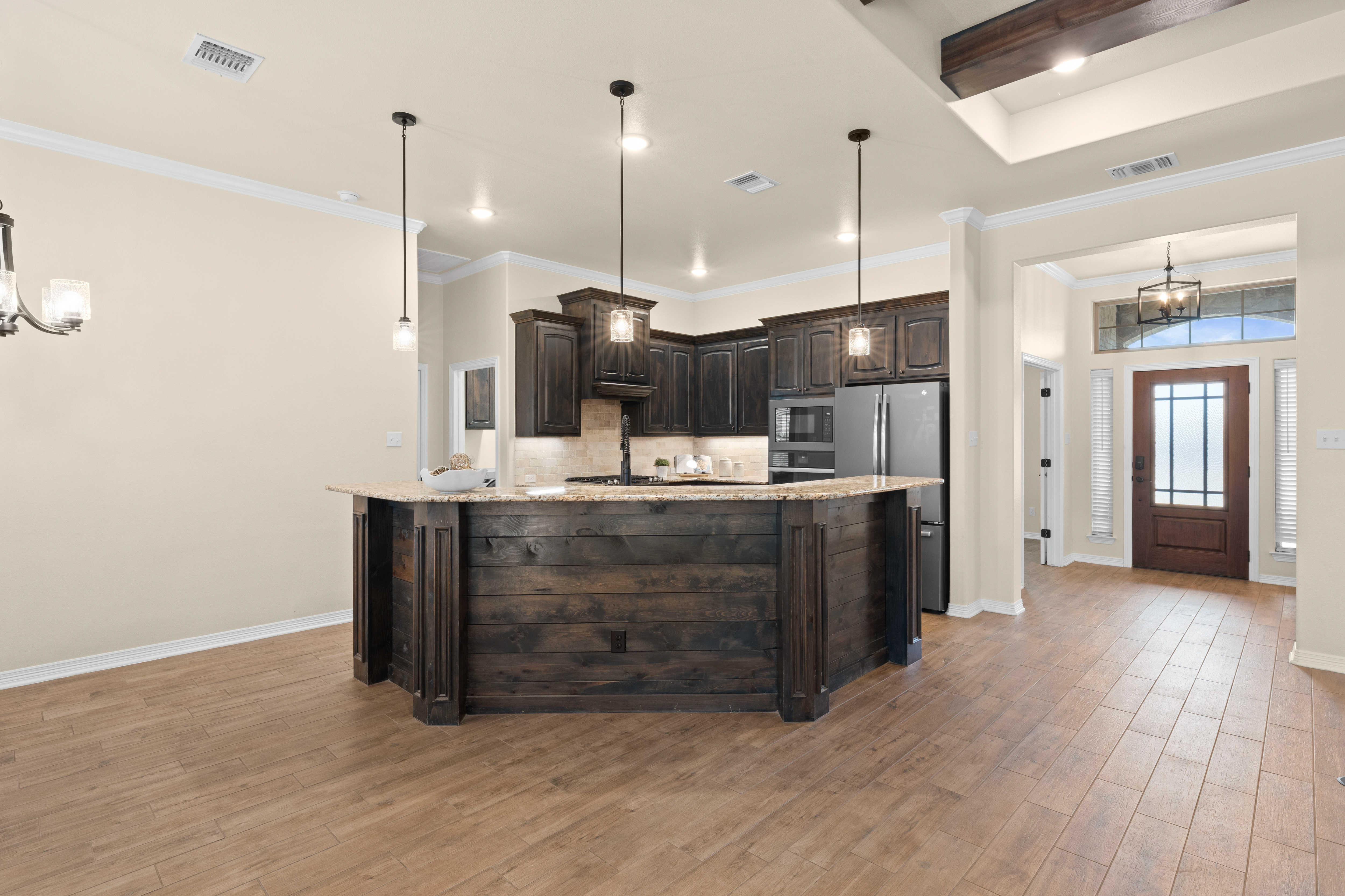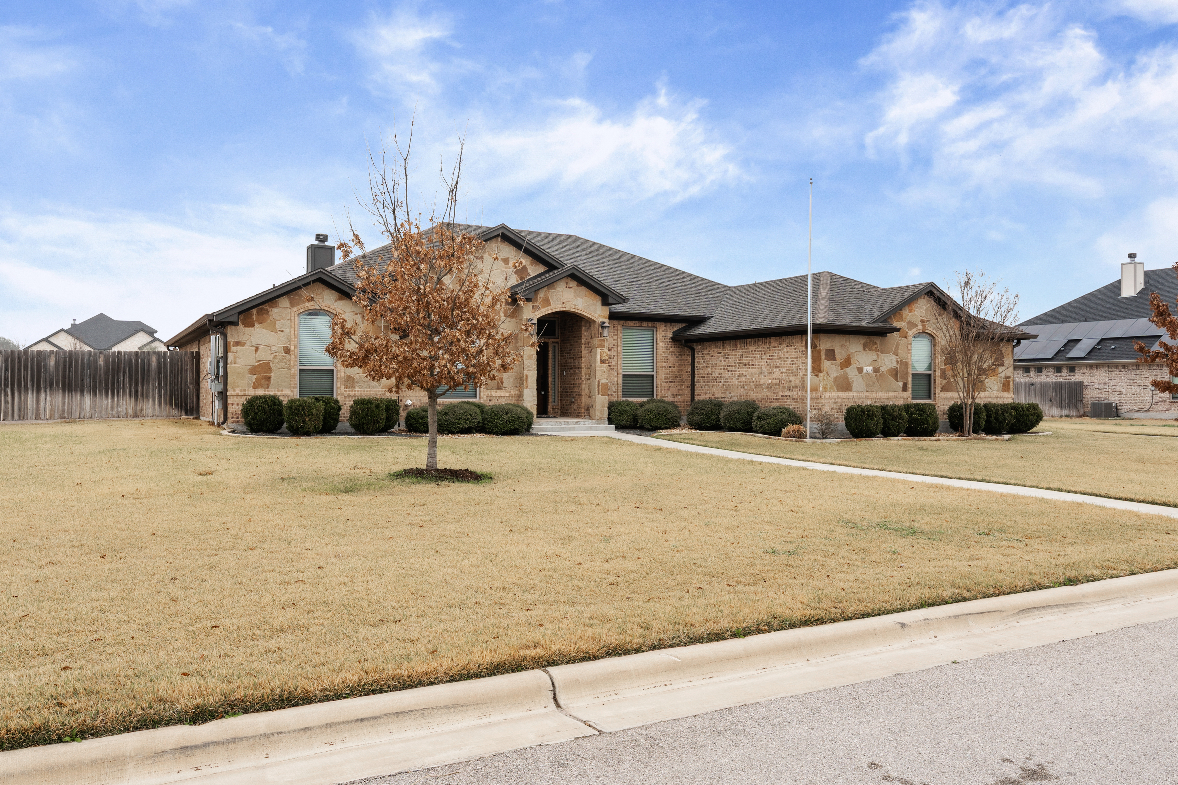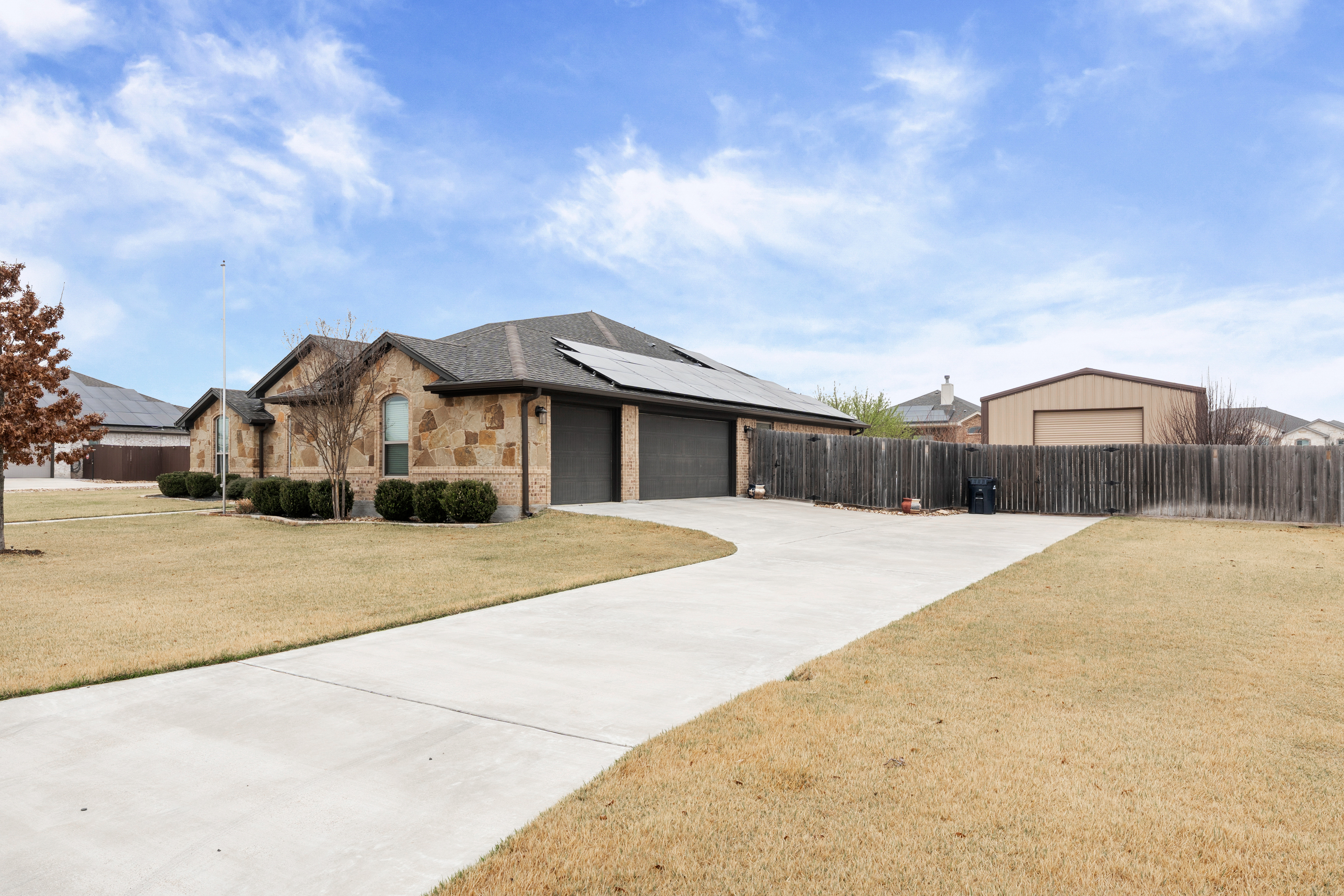 Welcome to this exceptional move-in ready Carothers home, perfectly situated in a highly desired neighborhood with no HOA and low Tax rate— offering luxury, privacy, and over half an acre of beautifully enhanced living space. From the moment you enter, you’re greeted by soaring ceilings accented with striking wood beams and a stunning custom fireplace that anchors the spacious living room. Designed for both elegance and functionality, the open-concept layout flows seamlessly into a formal dining space and a true chef’s kitchen featuring a gas stove, expansive prep areas, and premium finishes — ideal for entertaining or everyday luxury living. The thoughtfully designed split floorplan provides privacy and comfort. The extra-large primary suite is a true retreat, complete with French doors leading into a spa-like ensuite bath and an oversized walk-in closet. Two additional bedrooms offer generous space, while the bonus room showcases a dedicated office with glass French doors — perfect for working from home in style.This home includes fully paid-off solar panels with a battery backup system and the option to sell excess energy back to the power company, offering both sustainability and long-term savings. A full-home water softener system enhances water quality throughout. The detached workshop or RV storage building is insulated with spray foam, providing energy efficiency and versatile use. An extended back patio creates the perfect outdoor entertaining space overlooking the expansive backyard. The property also features mature fruit trees and a full aerobic sprinkler system to maintain the landscaping with ease. Step outside to enjoy over half an acre of beautifully maintained property with space to relax, entertain, and fully embrace Texas living. Every detail has been thoughtfully upgraded — making this the perfect turnkey luxury property combining efficiency, comfort, and high-end design.This is more than a home — it’s a lifestyle.
