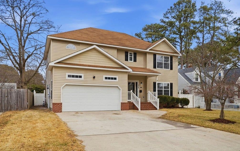 SPACIOUS TRANSITIONAL with Fresh Paint & New Carpet, Formal Living & Dining Rooms, Family Room with Gas Fireplace & New LVP Flooring, Eat-In Kitchen with Granite Countertops & Stainless Steel Appliances. 2nd Floor Laundry with New Washer & Dryer, HUGE Primary Suite with Walk-In Closet & Private Bath with Garden Tub, Separate Shower, & Double Vanities, 3 Additional Bedrooms are Spacious with Large Closets. Covered Front Porch, 2 Car Garage Oversized Driveway for Ample Off Street Parking, Private Backyard, Deck, & Detached Workshop/Storage Shed. Established Neighborhood Convenient to Shopping, Dining, & Easy Access to I-64 & Bases.