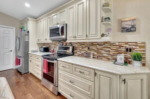 PERFECTLY LOCATED AT THE CORNER END OF THE LAKE. BEAUTIFULLY REMODELED 3 BED/2 BATH HOME, WITH A PRIVATE SCREENED LANAI WITH COOL DECK IN THE BACKYARD. GORGEOUS HARDWOOD FLOORING INSIDE THROUGHOUT. HURRICANE GLASS FRONT DOOR. THE KITCHEN HAS STAINLESS STEAL APPLIANCES, DECORATIVE WOOD CABINETS WITH STUNNING QUARTZITE COUNTERTOPS. COMPLETE HURRICANE ACCORDIAN SHUTTERS.