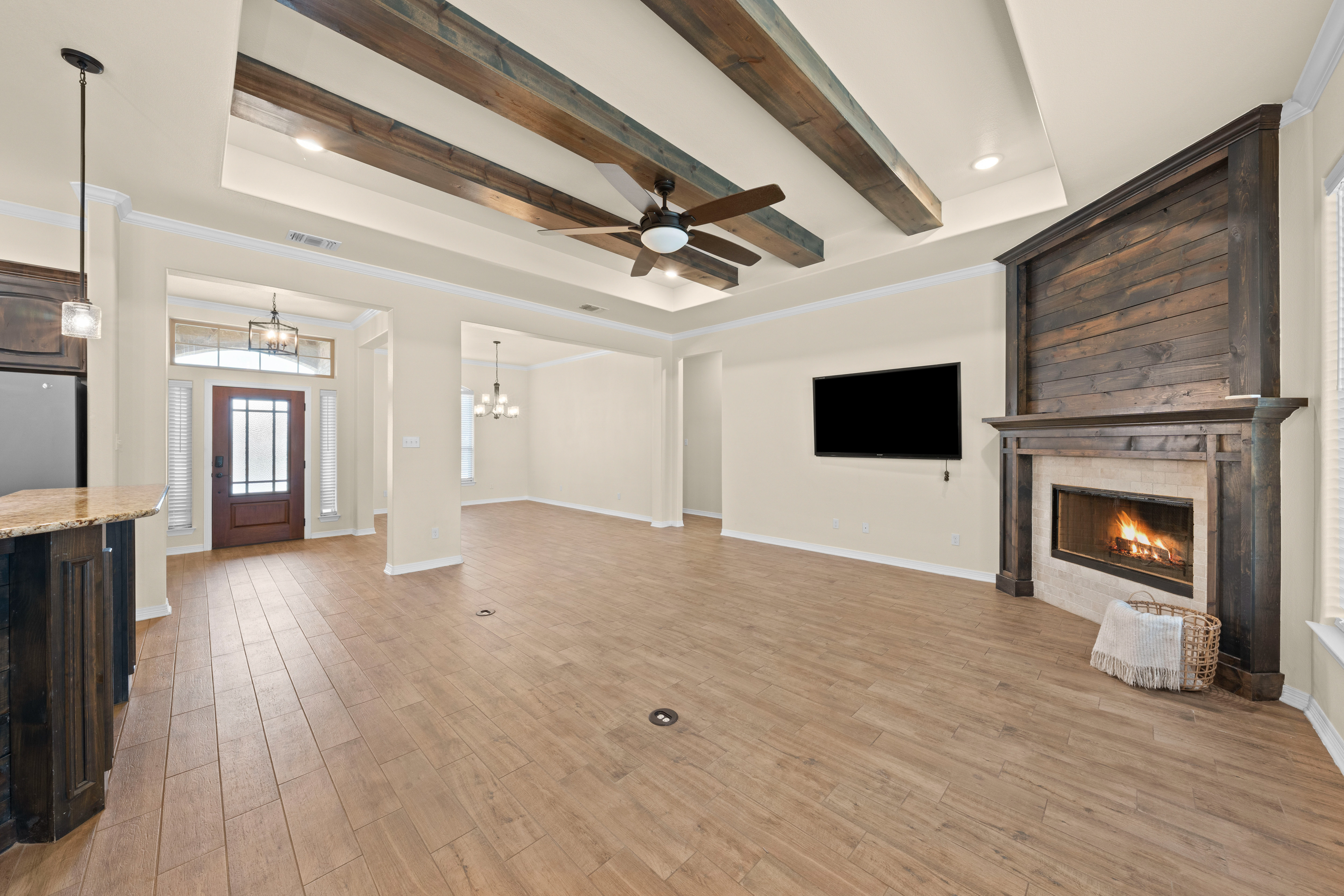 Welcome to this exceptional move-in ready Carothers home, perfectly situated in a highly desired neighborhood with no HOA and low Tax rate— offering luxury, privacy, and over half an acre of beautifully enhanced living space. From the moment you enter, you’re greeted by soaring ceilings accented with striking wood beams and a stunning custom fireplace that anchors the spacious living room.