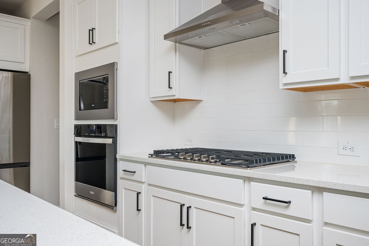 Welcome to this nearly new 3-bedroom, 2.5-bath two-story home in the gated community of The Village at Shallowford, ideally located less than three miles from vibrant Downtown Woodstock. Built in 2024, this popular Cary A floor plan offers a bright, open-concept main level designed for modern living and entertaining. The spacious kitchen overlooks the family room and features stainless steel appliances (including refrigerator), quartz countertops, large island with breakfast bar, 42 cabinetry & abundant prep space. The inviting family room is anchored by a gas log fireplace with shiplap extending to the ceiling and a natural cedar mantel for a warm, designer touch. Hardwood flooring flows throughout the main level, complemented by hardwood stairs with an open black iron railing and hardwood flooring upstairs. Step outside to your rear patio overlooking a large, flat greenspace with a privacy fence backdrop; easily adaptable for full fencing if desired. Upstairs, the Owners Suite impresses with a tray ceiling and a spa-like bath featuring a large tiled shower with frameless glass door. The laundry room is conveniently located upstairs, stubbed for a utility sink, and includes washer and dryer. Residents of The Village at Shallowford enjoy a community pool and clubhouse, with easy access to top shopping, dining, and entertainment in both Woodstock and Kennesaw, major highways, and sought-after Cobb County schools. Move-in ready and better than new - without the wait.