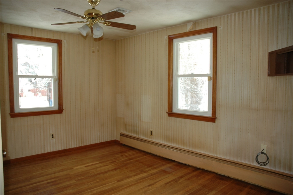 Well-maintained 2-bedroom home offering great value and potential in desirable Tewksbury! Features include hardwood floors throughout (just refinished), a fireplaced living room, and an eat-in kitchen with backyard views, plus an almost-new refrigerator and dishwasher. The full bath includes a newly tiled shower stall and convenient stackable washer and dryer. A recently added finished 3-season room provides wonderful extra space and could offer approximately 300 additional square feet of living area if heated. Set on a fenced 10,890 sq ft lot, this vinyl-sided home also offers newer windows, roof, and a partially finished basement with newer flooring. Needs some paint and minor updates but has solid bones and excellent potential. I have included actual photos and Ai generated photos of the rooms painted and some painted and furnished pictures too. The street is a dead-end and is close but not too close to the highway.