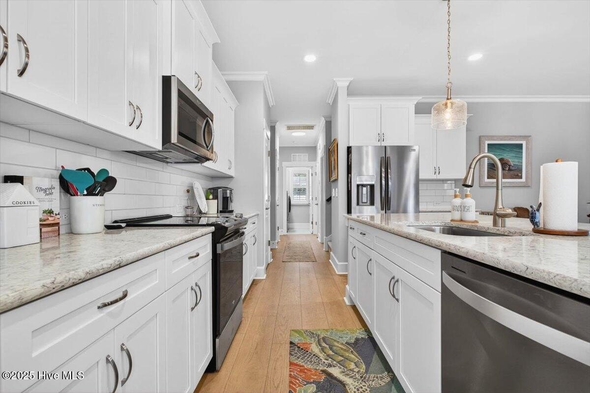 Beautifully Remodeled Home in Highly Sought-After Bluewater Bay! This stunning 3-bedroom, 2-bath gem nestled on a spacious .51-acre lot backing up to the scenic Bluewater Bay Walking Trail. This home offers both privacy and convenience in a tranquil setting. Bright and welcoming formal living area, perfect for relaxing or entertaining. Chef style kitchen with modern finishes, a generous breakfast bar, and opens seamlessly to the formal dining room, ideal for hosting family dinners or social gatherings. The master suite is complemented with a walk-in closet, dual sinks, and a tub/shower. Two additional bedrooms offer comfort and ample storage, perfect for families or guests. Large fenced backyard, shaded by mature trees. Located just minutes from shopping, dining, schools and beaches. Plenty of room for a pool!! Dont miss your chance to own a move-in-ready home in one of the areas most beloved communities!