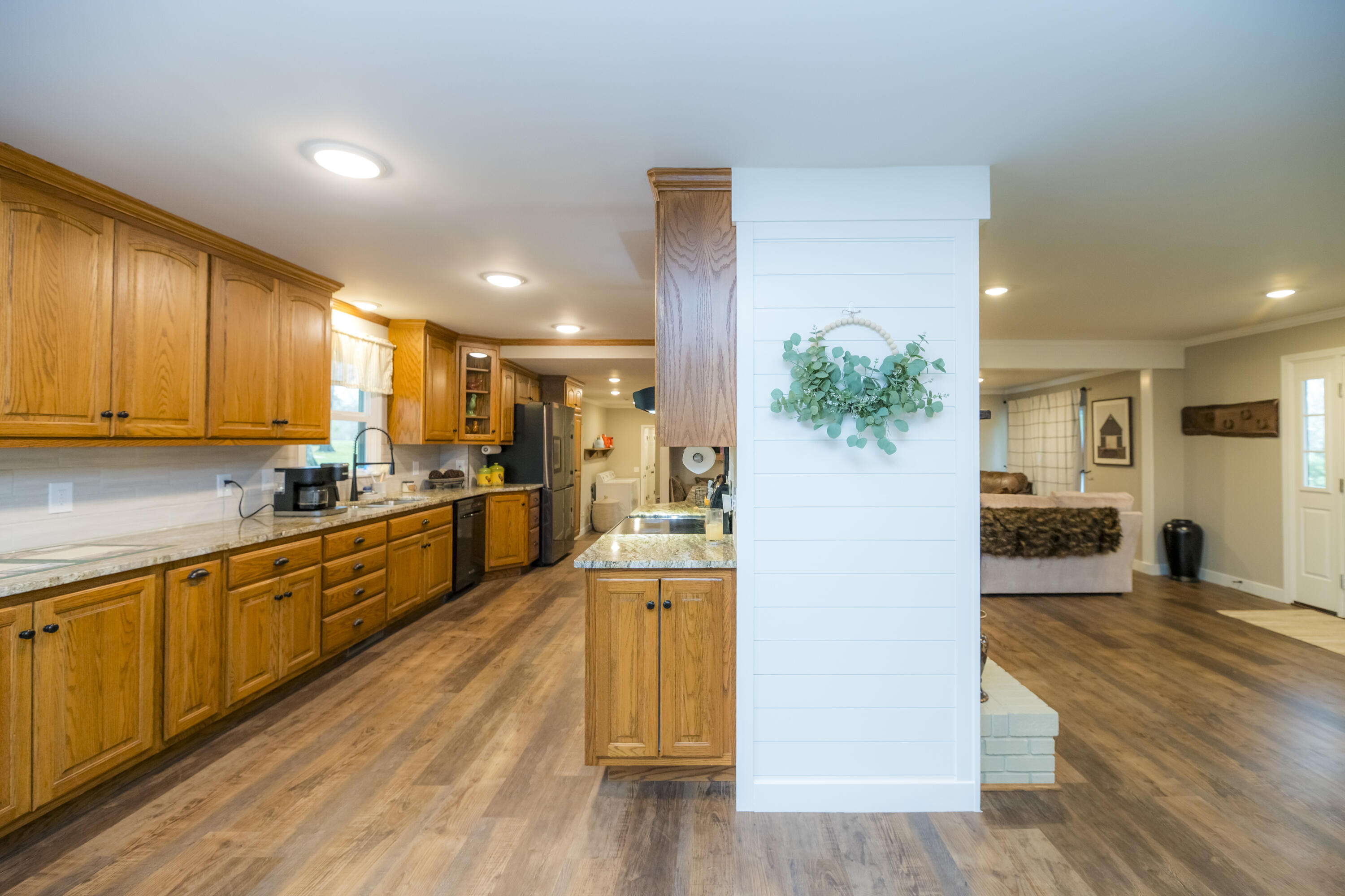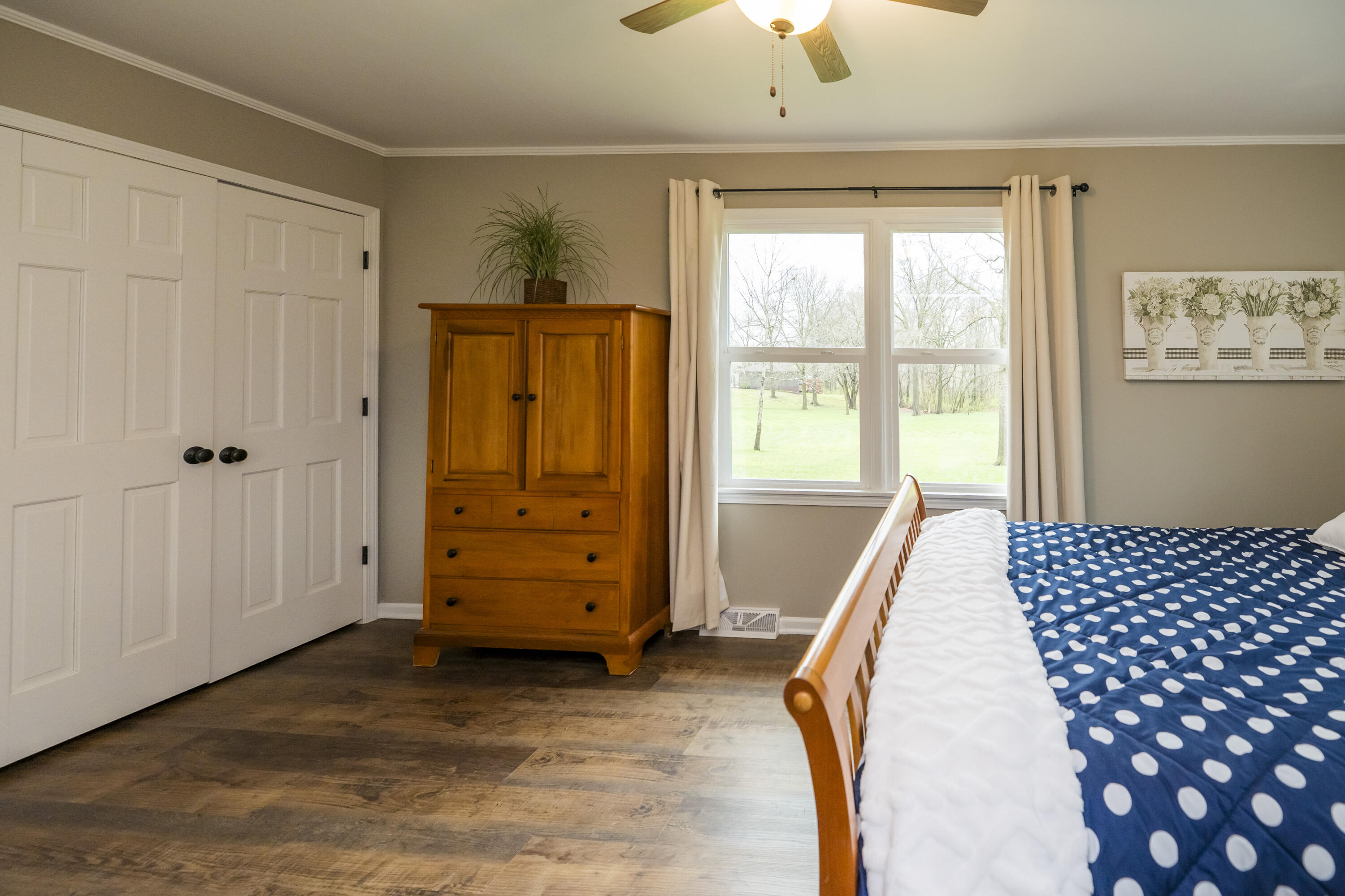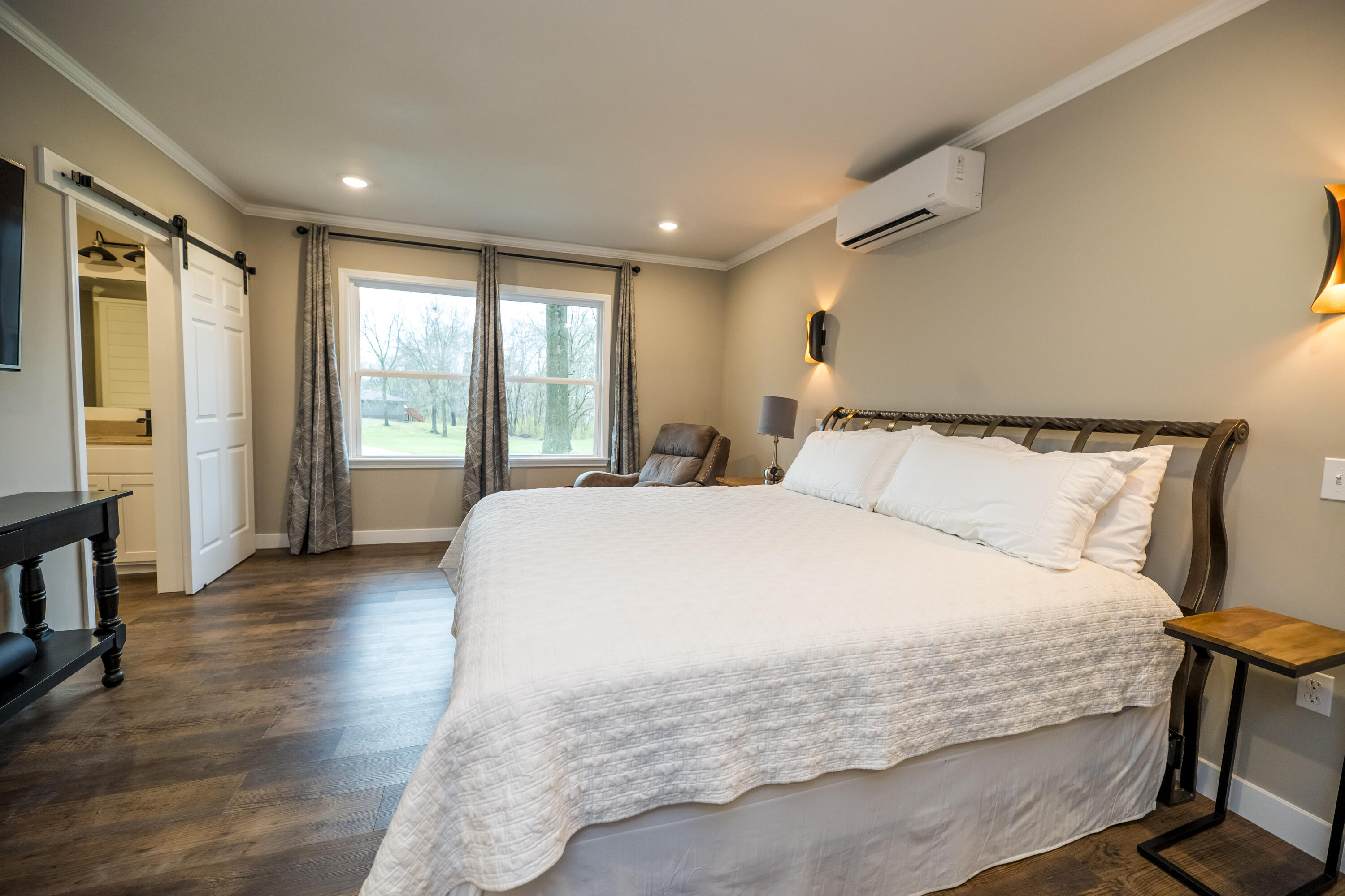 This private, updated 5BR home on 5 acres in Midway delights the senses! Structural & aesthetic renovations, both inside & out, include extensive clearing of the lot, transforming it from overgrown brush to jaw-dropping tranquility. Newly-added primary suite encompasses almost half the main level, featuring large BR, ensuite bathroom, custom cabinets, abundant closet space & laundry.