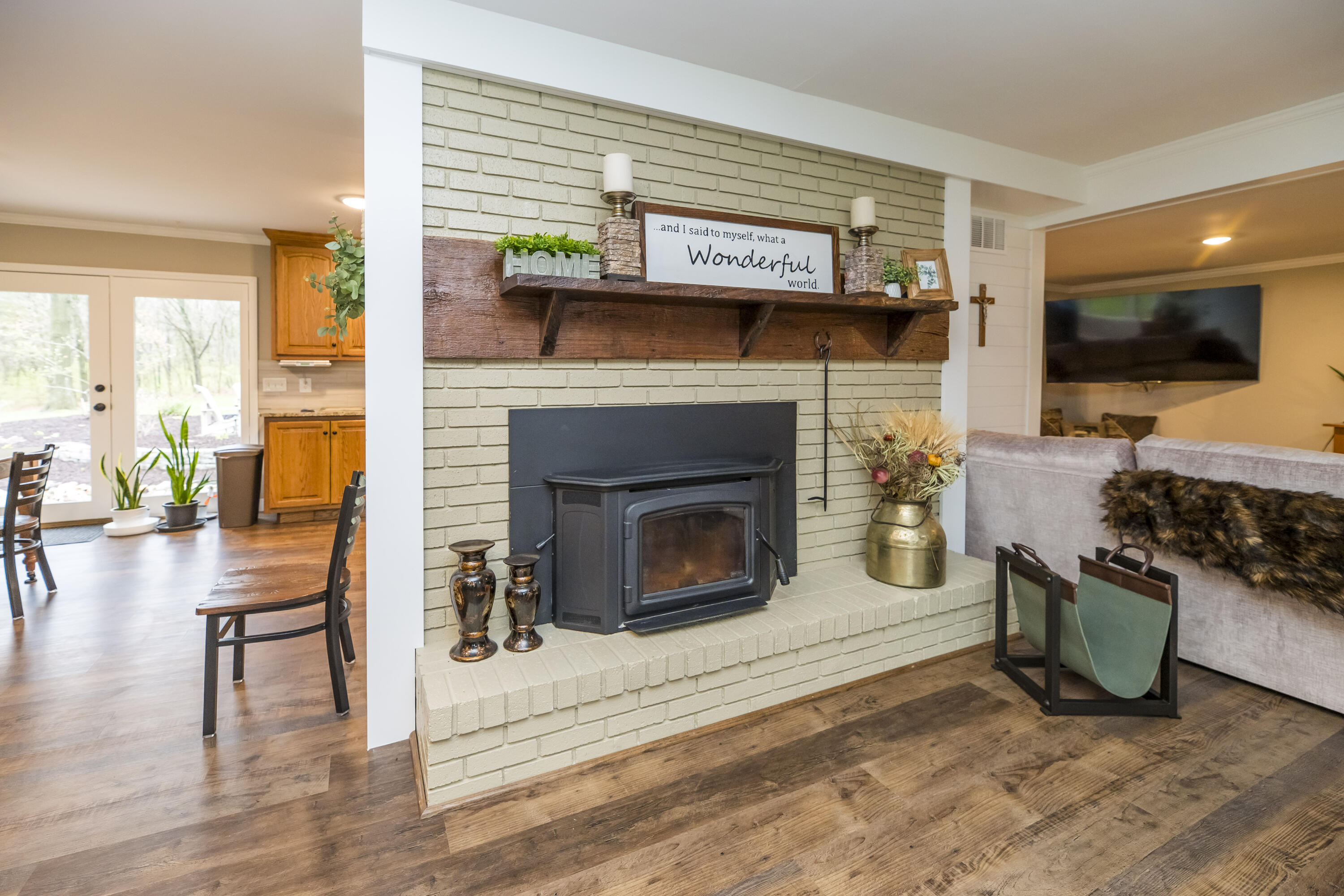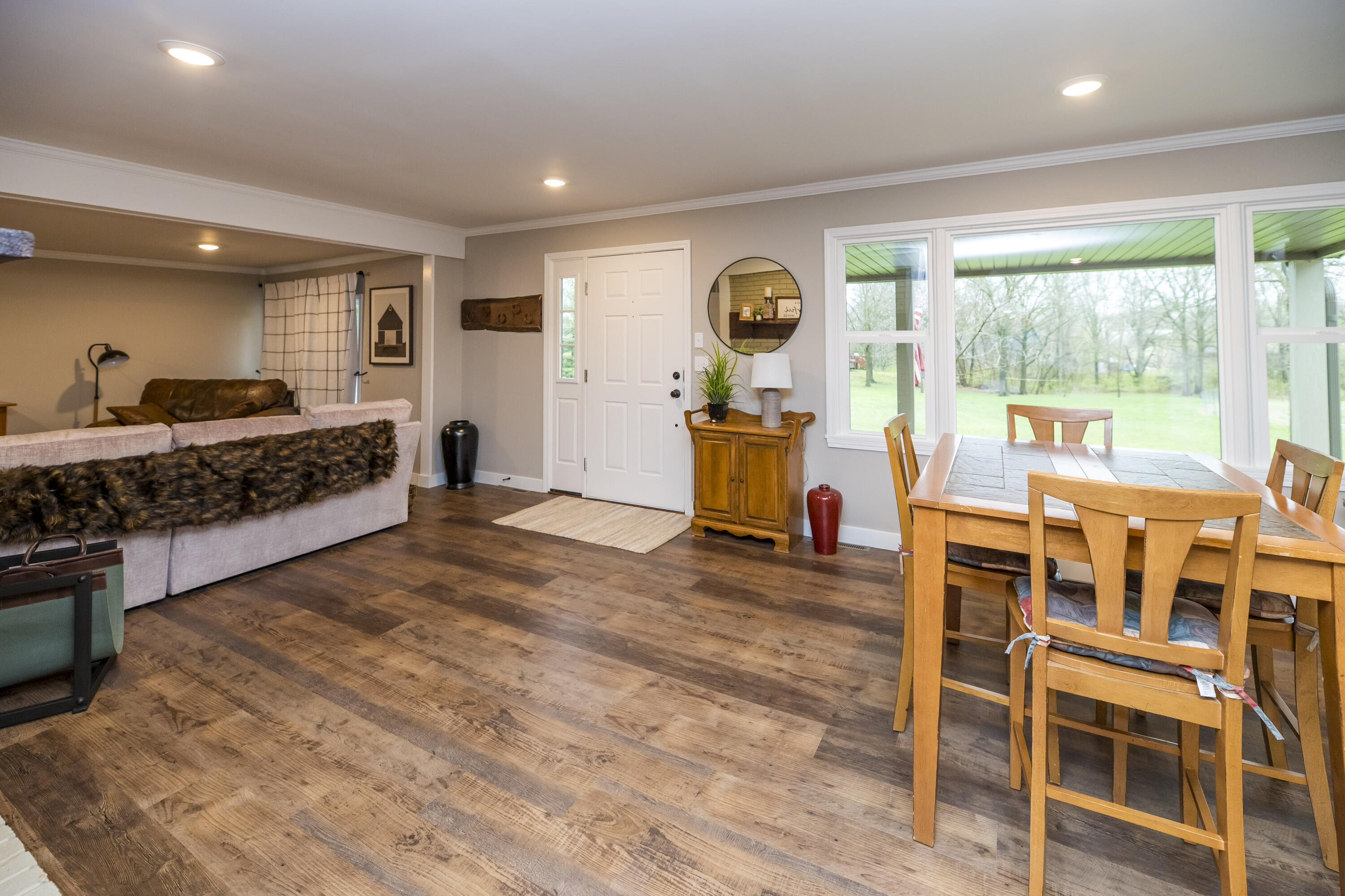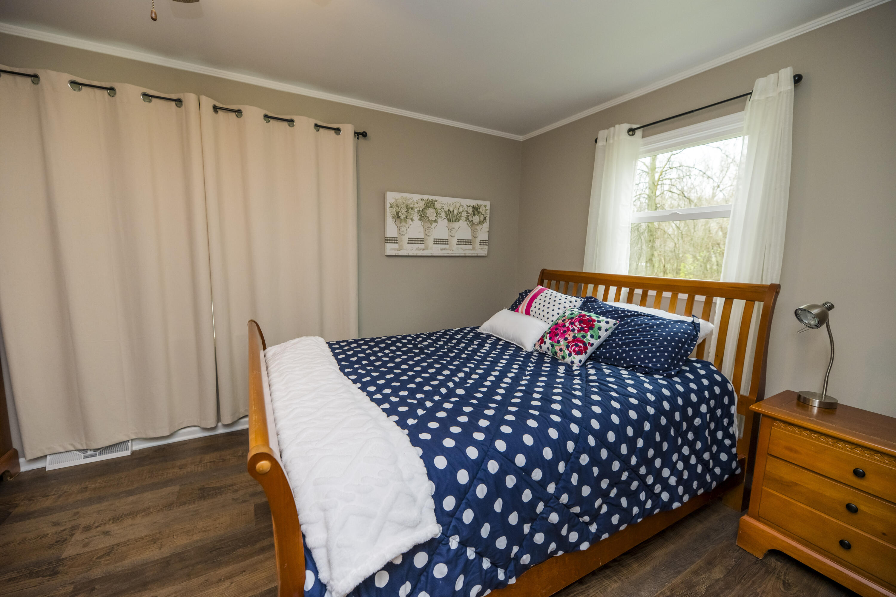 Looking for a beautifully crafted log cabin? You need to check this one out! Set on 4.65 acres, this property is surrounded by mature trees and open space to provide perfect blend of privacy and peaceful living. Your breath will be taken away when you step inside! The spacious living room features soaring high ceilings, exposed wood beams and a beautiful wood burning fireplace.