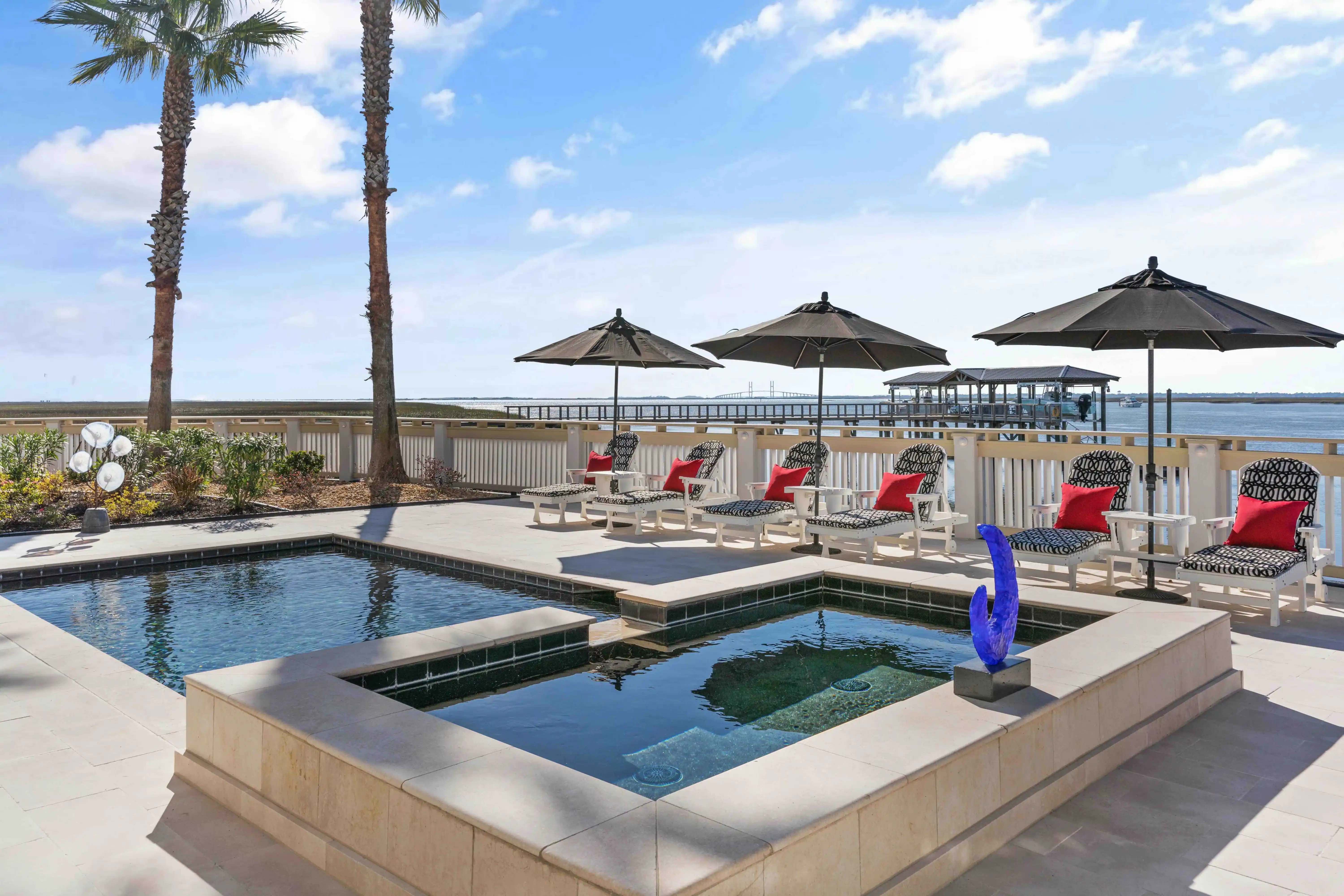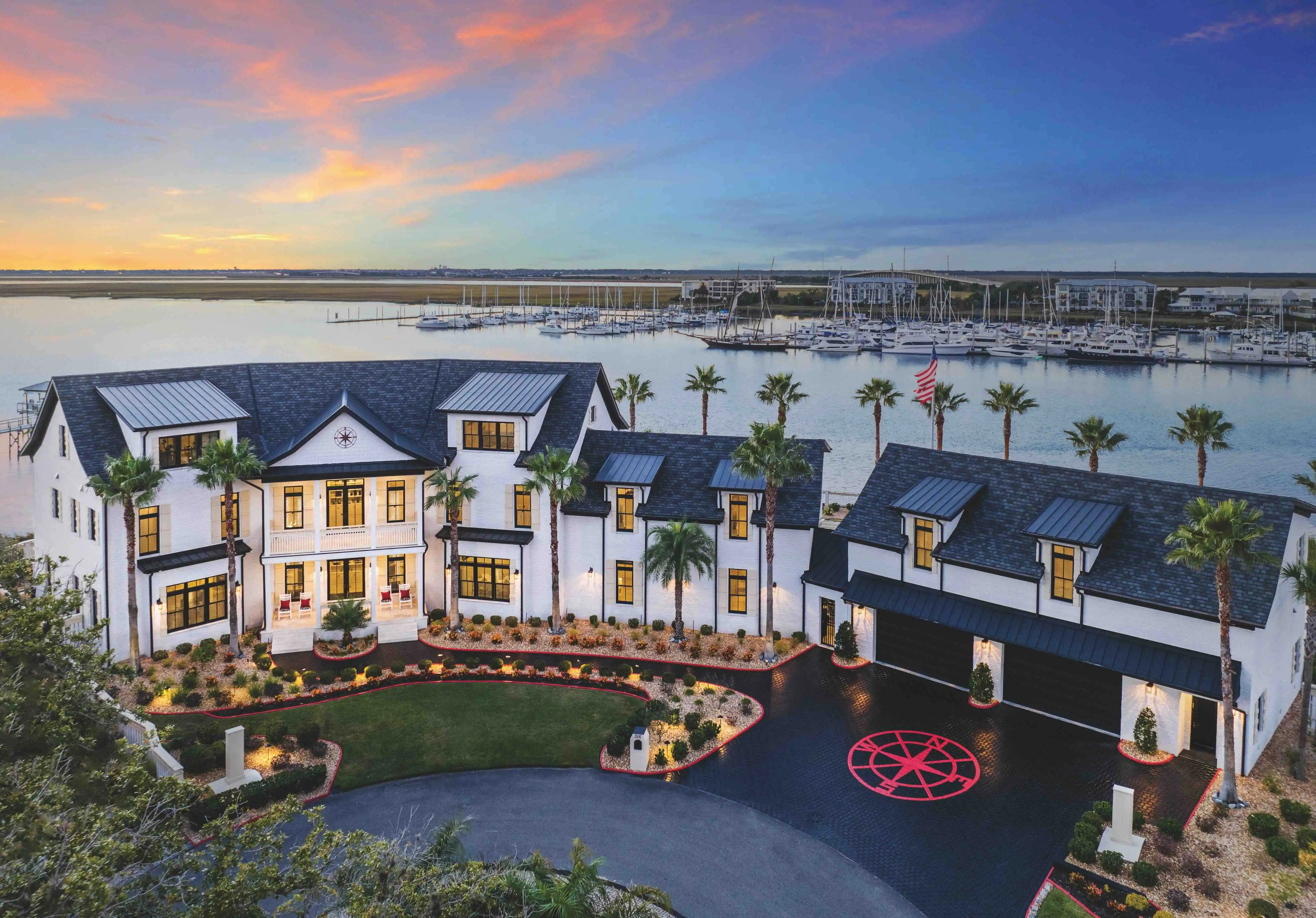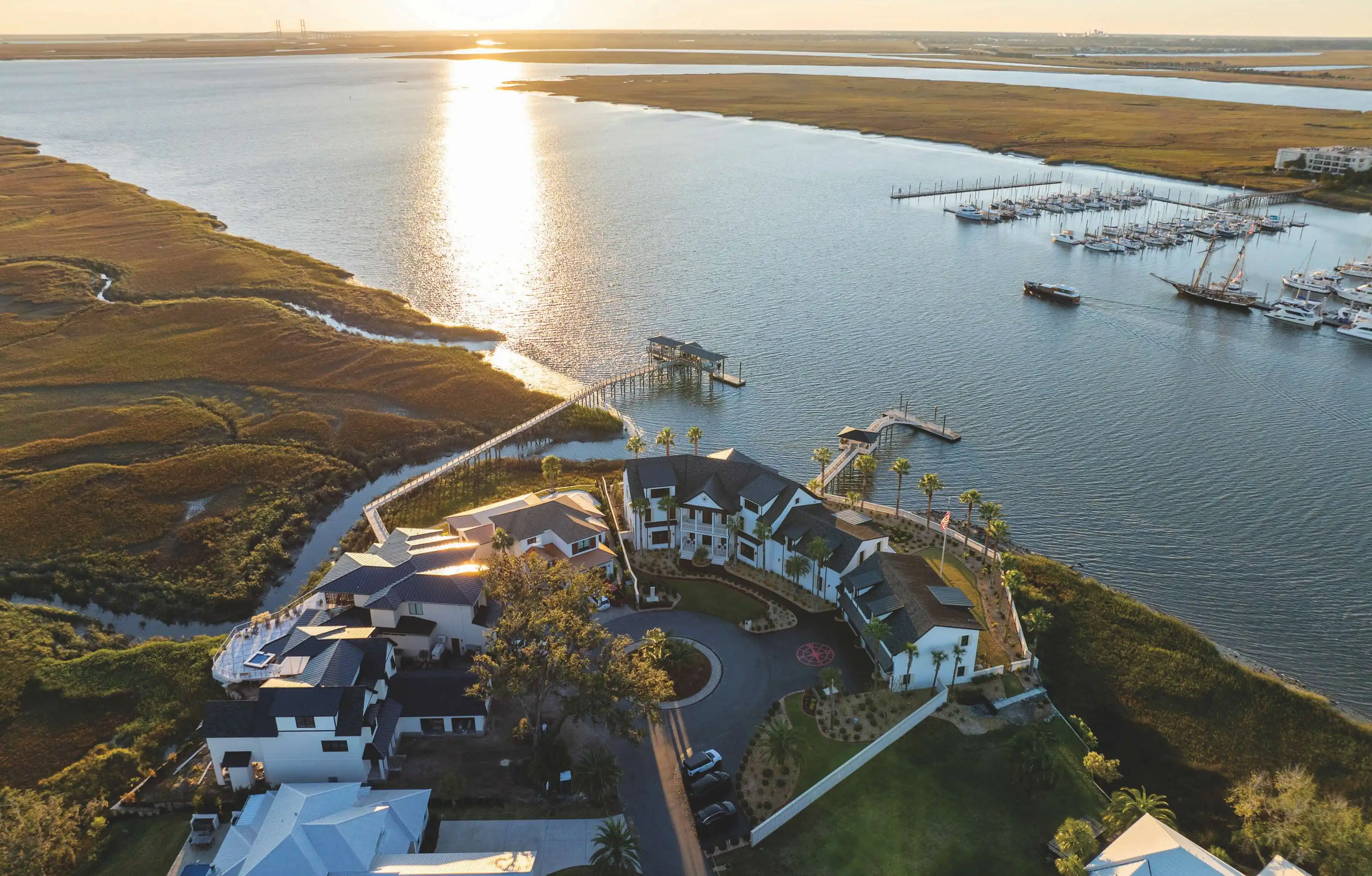 Nothing compares to The Mansion on St Simons Island, offering every imaginable luxury for living the Golden Isles lifestyle! Welcome to coastal elegance at 316 Yacht Club, where sophisticated living meets the serene beauty of the waterfront. This residence provides a rare opportunity to indulge in a lifestyle of luxury and leisure, surrounded by panoramic views of Frederica River and beyond. This home was designed to be timeless and will never be outdated, with classic, luxurious finishes such as Turkish Travertine stone and true hardwood flooring throughout. More than 11,000 square feet of living space, including a full guest quarters with kitchen & laundry over the 8 car garage, all tide dock area that is permittable for expansion & covered dock pavilion with built in seating, navigable for any size boat, anytime. Featuring a swimming pool, hot tub, fire pit, grilling station, outdoor shower, built in dining islands to accommodate 16 or more, game room with wet bar, home gym, multiple lounge areas & pool room with entertainment station & full bathroom. Quick & easy access on & off the island, near the FJ Torres causeway. This property sits on 3 lots & offers the most spectacular sunrises & sunsets you'll ever see, right in your own backyard. Priced under current appraisal. Featured on the cover of Prestige Global magazine, the only property on Saint Simons Island to ever to be chosen for the cover of this luxury lifestyle magazine.