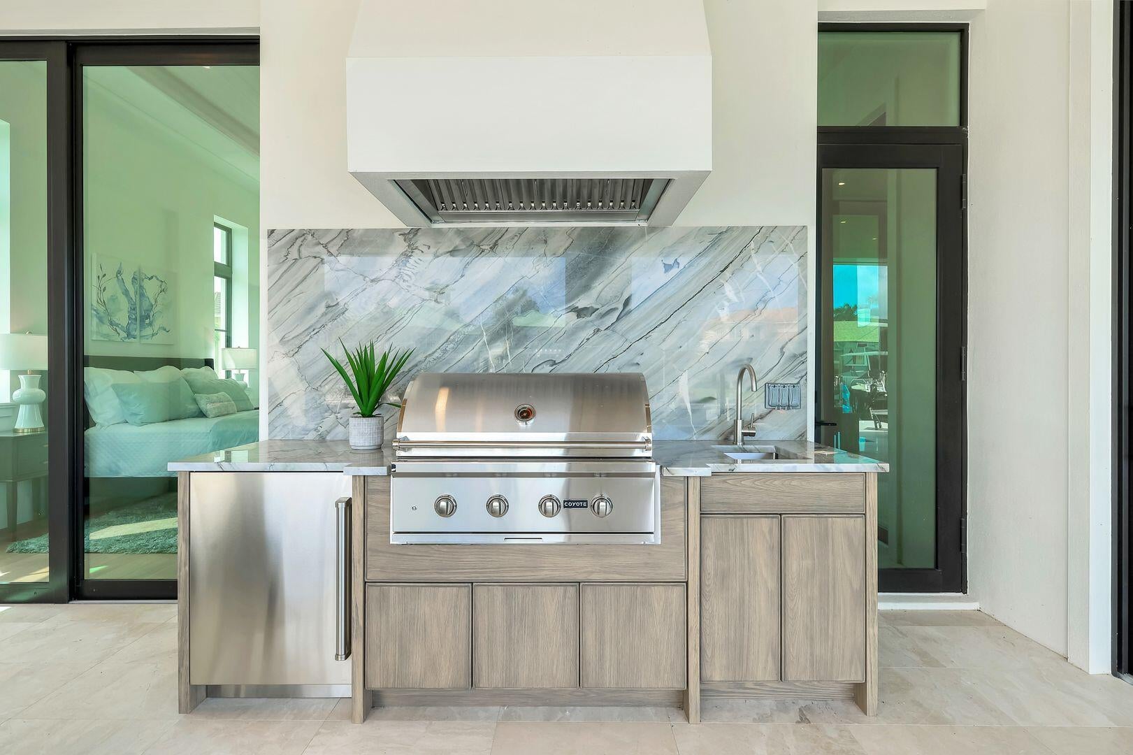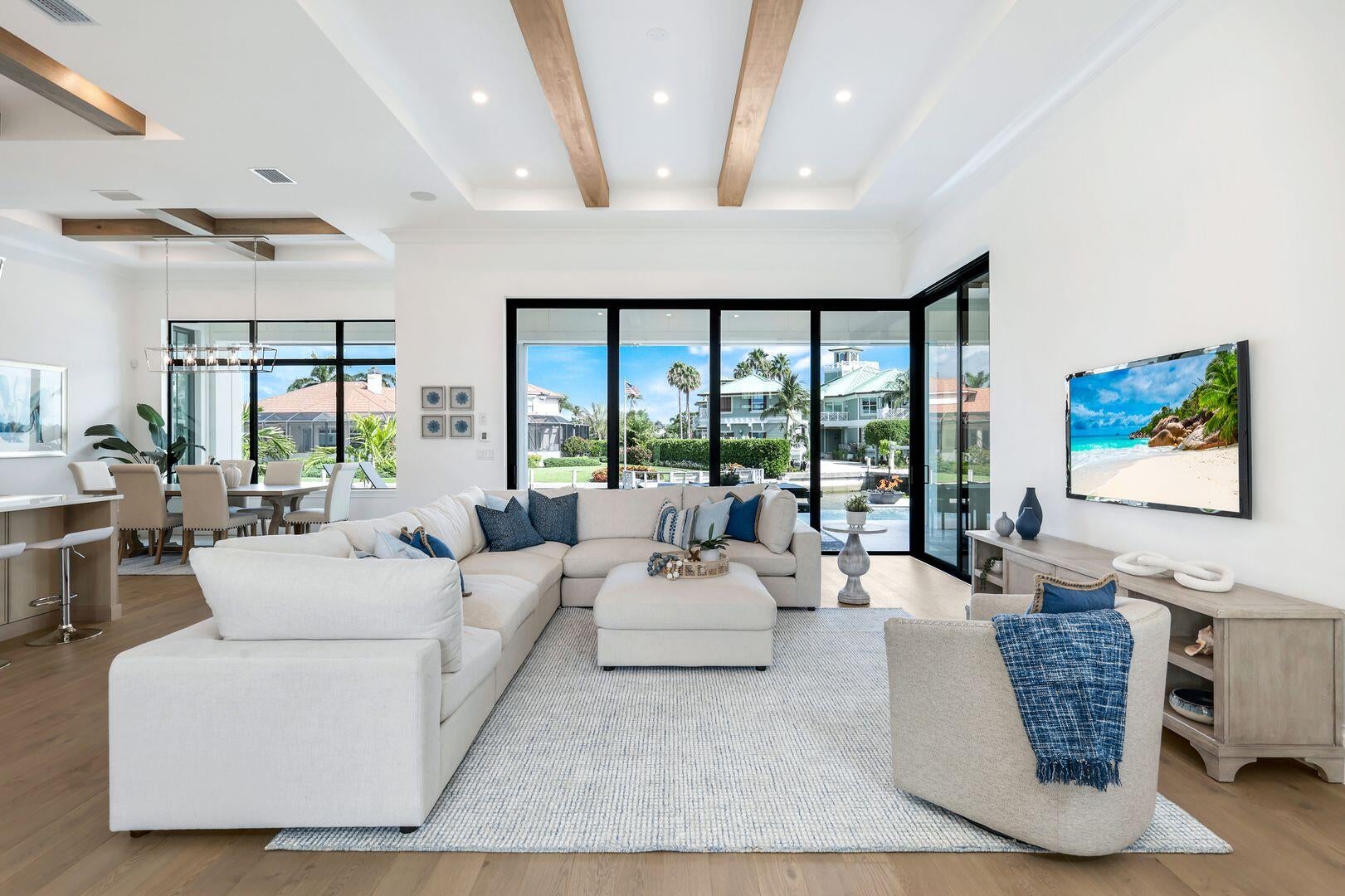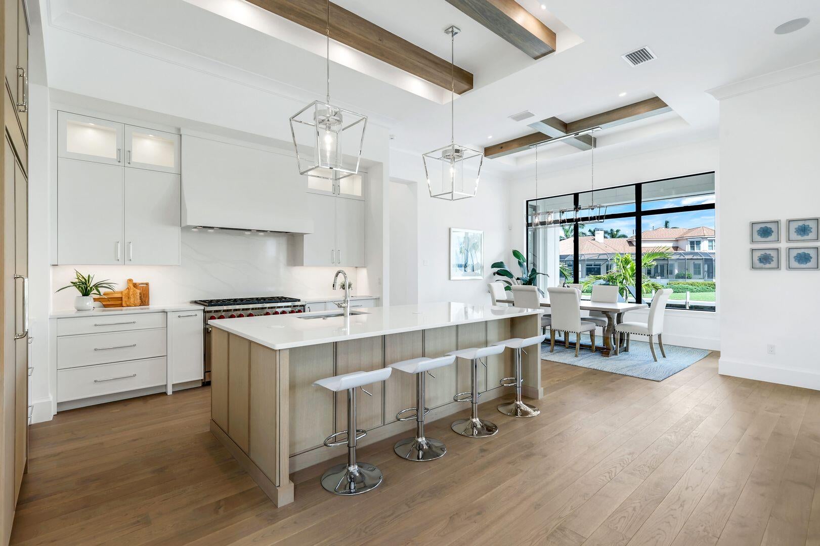 Introducing a grand scale luxury Coastal Contemporary ready for occupancy waterfront estate home custom built by award winning Stonebreaker Builders which has spectacular views of the Marco River and stunning sunsets.