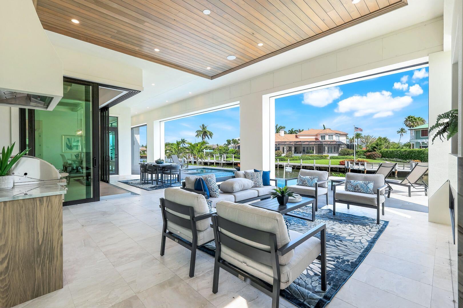 Introducing a grand scale luxury Coastal Contemporary move in ready waterfront estate home custom built by award winning Stonebreaker Builders which has spectacular views of the Marco River and stunning sunsets.