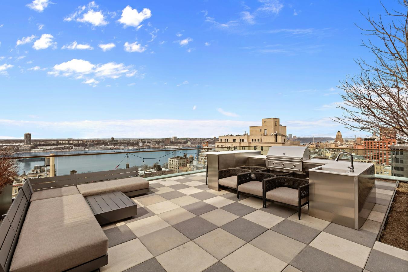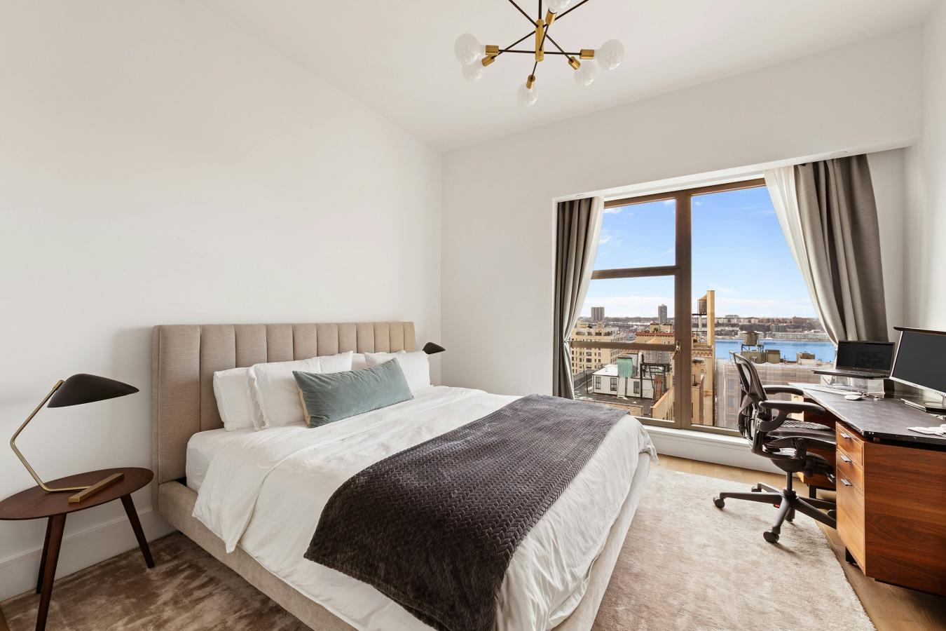 Experience elevated Upper West Side living at The Westly , a striking modern residence that blends classic neighborhood charm with contemporary design. Residence 17C is a spacious 2,467-square-foot three-bedroom home with the potential to convert to a four-bedroom or add a private home office , offering exceptional flexibility for modern living. Perched on a high floor, the residence enjoys sweeping open views in multiple directions -south to the Midtown skyline, west to the Hudson River, and north to the George Washington Bridge-creating a bright and airy atmosphere throughout. A gracious entry foyer with two closets and an elegant powder room finished in Calacatta Gold marble with bronze accents welcomes you into the home. The expansive corner living and dining room , wrapped in oversized windows, provides an ideal setting for both entertaining and everyday living while capturing spectacular city and river views. The windowed chefs kitchen faces south and features Crema Delicato marble countertops, a mosaic marble backsplash, custom walnut-lined cabinetry by Aster Cucine with matte white lacquer doors, and premium Gaggenau appliances. The corner primary suite enjoys stunning northwest exposures overlooking the Hudson River and Upper West Side skyline. The luxurious windowed five-fixture primary bath is beautifully finished in Calacatta Gold marble , with double sinks, a soaking tub, radiant heated mosaic marble floors, and polished nickel fixtures by Waterworks. Two additional bedrooms face west with open views, one featuring an ensuite bathroom . Secondary baths are elegantly designed with white Namibia marble floors and accent walls in a herringbone pattern, marble vanities, and classic white porcelain tile. A Bosch washer and dryer is conveniently located in a separate laundry closet. Thanks to its generous proportions and well-designed layout , the home offers the opportunity to create a fourth bedroom, den, or dedicated home office , making Residence 17C adaptable to a variety of lifestyle needs. Designed by ODA Architecture, The Westly offers an exceptional collection of amenities, including: 24-hour concierge and resident manager Dramatic lobby with 30-foot ceilings Resident lounge State-of-the-art fitness center and yoga studio Childrens playroom and youth lounge Music room Private storage and bike room Pet grooming station