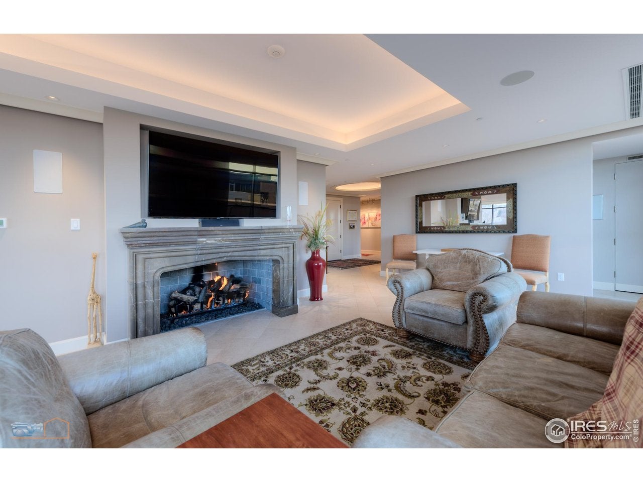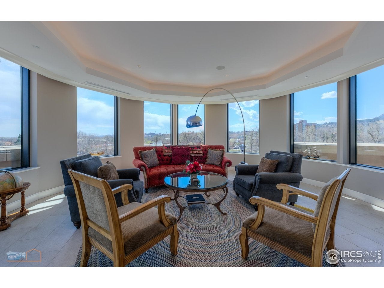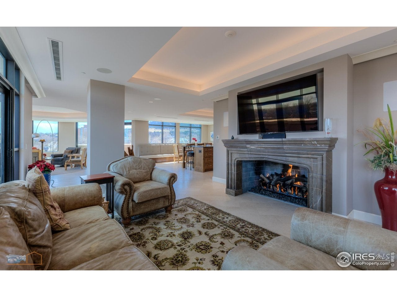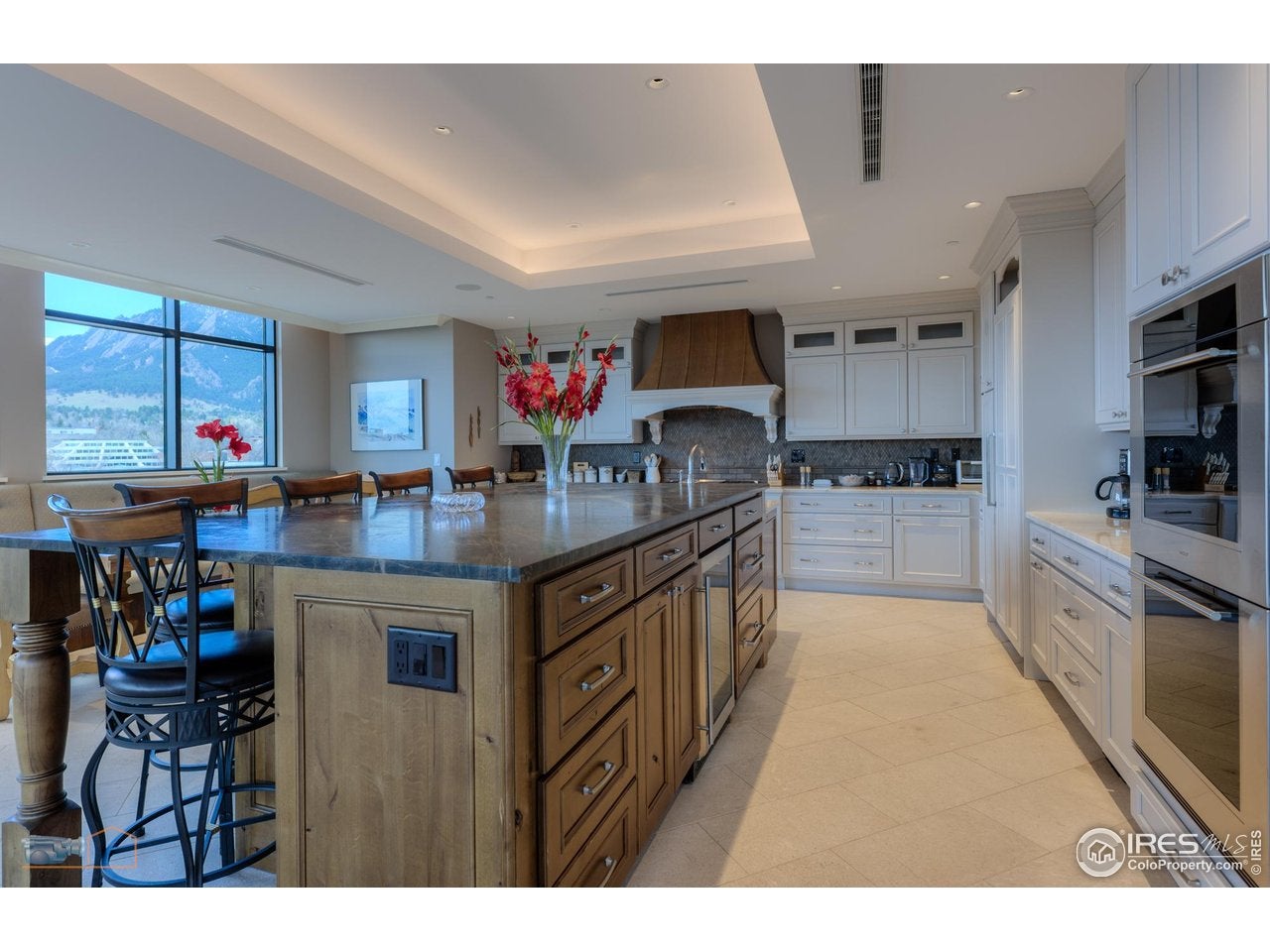 Considered by many to be the finest residence in downtown Boulder. Stunning 4415 sf penthouse in the Arete with floor-to-ceiling panoramic views above tree line to the Flatirons, Central Park, Boulder Creek, Folsom Stadium, Chautauqua and Pearl St. Mall. And all of downtown within steps or viewed from a 1400sf wrap around patio. This build-out, only finished in 2018, features a rare turret style living room of convex architecture providing full vistas 24/7 without the need to be outside. The turret, with expansive windows, floods the living space with abundant sunshine. An inviting open-concept layout seamlessly merges the kitchen, dining, and living areas, making entertaining and socializing a central focus. Moros Fabrication cut and installed the large Pental slab quartz kitchen island and natural stone granite countertops. Wolf double ovens and range top, Sub-Zero refrigerator, custom cabinetry, bespoke range hood, and wine cooler make this kitchen truly a haven for culinary enthusiasts. The family room with custom fireplace and marble mantel, provides a cozy retreat while keeping the mountains in view. Adjacent home office with built ins. The generous primary bedroom will not disappoint, with recessed cove lighting, TV/fireplace and library wall. Luxurious spa like bathroom, additional primary vanity & an expansive walk-in closet. The current owner uses one of the three additional bedrooms as an exercise room, but all have ensuite bathrooms, granite counters and direct access to the 1400sf wraparound patio that enjoys late day sunshine. 15 patio doors w/screens in 3 directions provide natural air flow throughout. Abundant and discrete storage everywhere plus this penthouse comes with a 150sf storage room in the garage. The unit comes with 3 dedicated underground parking spaces with additional parking available for guests. The Arete is an elite building and certified as Silver Leeds consistently drawing the highest resale prices in Boulder since opening in 2009.