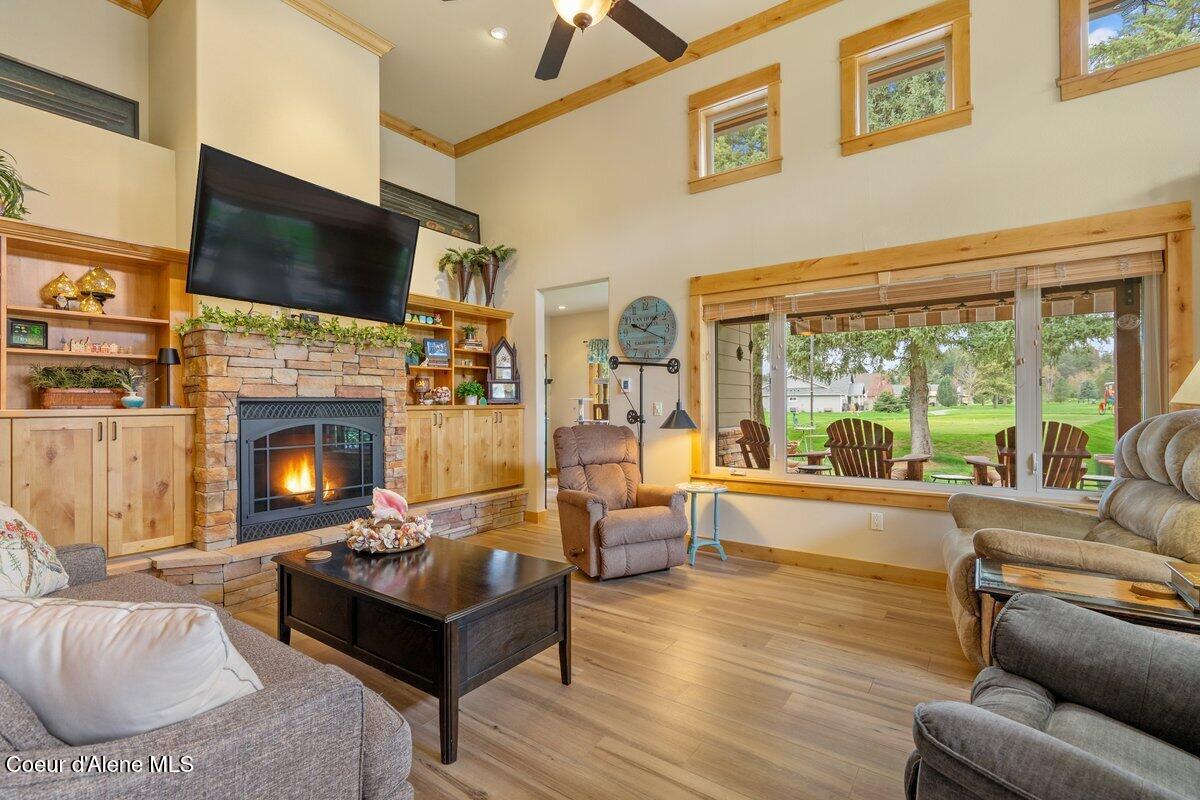 Best Golf Course View in Stoneridge! This Craftsman Style Townhouse was Built in 2008. Rear Patio Looks Over the 12th Tee Box and is Gently Shaded by Pine Trees and a Motorized Awning. On the Main Level of this Townhome are Two Bedroom Suites, Office, Half Bath, & Laundry Room. Above the Garage is a Spacious Bonus Room, 12 x 20, with a Half Bath. Recent Updates Include Tile Flooring in the Living/Dining Room & Office. The Master Bathroom has had a Recent Remodel. Radiant Floor Heating Added in Living Room and Master Bath. Additional Upgrades Include Kitchen Appliances, Extension of Rear Deck, Tankless Water Heater, and Comfort Height Toilets. The Exterior of the Home was Painted in 2025. The HOA Dues are 380 per Month and Include Mowing, Plowing, Water, Sewer and Trash. Each Owner also has Access to a Community REC Center, with an Indoor Pool & Exercise Room. Stoneridge is a Recreational Community w/Golf Course, Pickleball Courts, Onsite Restaurant and Walking Trails. Located Near Spokane, and the Resort Towns of Coeur dAlene and Sandpoint.