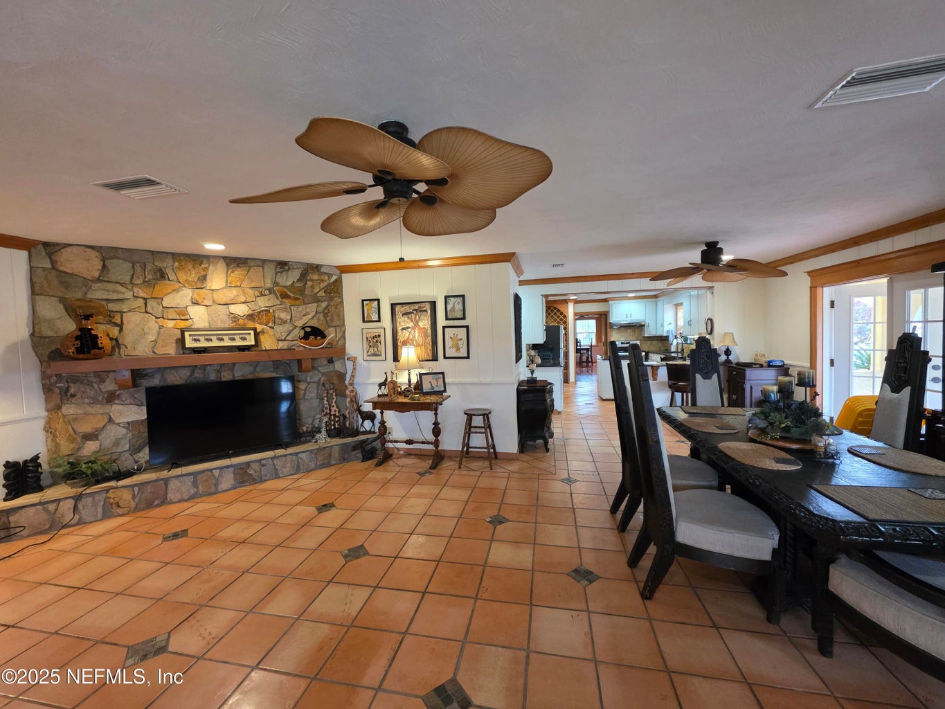 Spanish Farmhouse Retreat on 5 Acres! Set in Sevilles quiet agricultural community, this custom Spanish-style farmhouse offers privacy, charm, and versatility. A tree-lined drive leads to a circular entry and oversized 3-car garage with breezeway. Inside, enjoy an open floor plan with granite countertops, hardwood floors, crown molding, recessed lighting, and a cozy fireplace. French doors and double-pane windows bring in abundant natural light. The property includes a detached Mother-In-Law Quarters, tack horse barn, 3 grazing paddocks, RV pad with hookup, gazebo/summer kitchen, and carport/shed. Expansive patios provide space for entertaining or relaxing in peaceful surroundings. Lovingly maintained, this home combines timeless finishes with country living, just 40 minutes from Flagler Beach, Ormond Beach, and Deland.