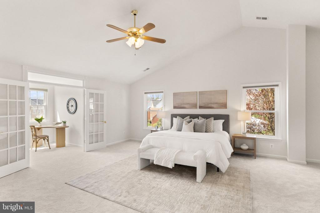 Impeccable & tastefully updated Apple Tree home w/ideal floorplan, beautiful landscape & tranquil backyard retreat. A grand entry w/curved staircase complemented by extensive hardwoods & luxurious carpet. Designer touches & Parisian charm shine throughout. Convenient main-level bedroom/den with beveled glass French doors, bath w/new shower.