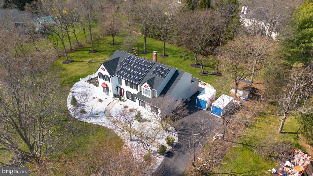 NEWER SEPTIC & NEWER ROOF ! Sophistication and ambiance come together masterfully in this home creating an unparalleled combination of visual excellence. This Beautiful 5-bedroom, 3.5-bath brick-front Colonial is nestled on a private cul-de-sac of just 16 custom homes in the highly desirable West Windsor-Plainsboro School District. The gourmet kitchen features upgraded cabinetry, granite countertops, a tiled backsplash, stainless steel appliances, wine fridge, and ceramic tile flooring. The adjacent breakfast area includes custom built-in seating, recessed lighting, and beautiful views of the private backyard. A dramatic two-story foyer with hardwood floors welcomes you and opens to a formal living room with a bay window and a dining room with chair rail and crown molding. The expansive family room features vaulted ceilings, two skylights, hardwood floors, and a brick fireplace, creating a bright and inviting space perfect for relaxing or entertaining. The first-floor office with recessed lighting and French doors leading to the family room is ideal for a work-from-home setup. Nearby, the laundry room leads to a private first-floor bedroom with a full bathroom and separate entrance, perfect for guests, extended family. Upstairs, you will find four generously sized bedrooms with hardwood flooring and ceiling fans. The hallway bathroom was tastefully updated in 2021 with a double quartz vanity and shower/tub combination. The expansive primary suite offers hardwood flooring, a sitting area, and a large big closet with custom built-in shelving. The updated primary bath features quartz counters, a shower, and a Jacuzzi tub overlooking the serene backyard. The fully finished basement provides an exercise area, recreation space, ample storage, and convenient outdoor access through concrete stairs and Bilco doors. Step outside to enjoy the newly built large patio, perfect for outdoor entertaining, relaxing, and enjoying the peaceful backyard setting. Additional highlights include a new solar panel system for energy efficiency, New whole house generator, new leaf gutter guard, central vacuum, new gutters (2022), A/C (2020), furnace (2020), and water heater (2019).