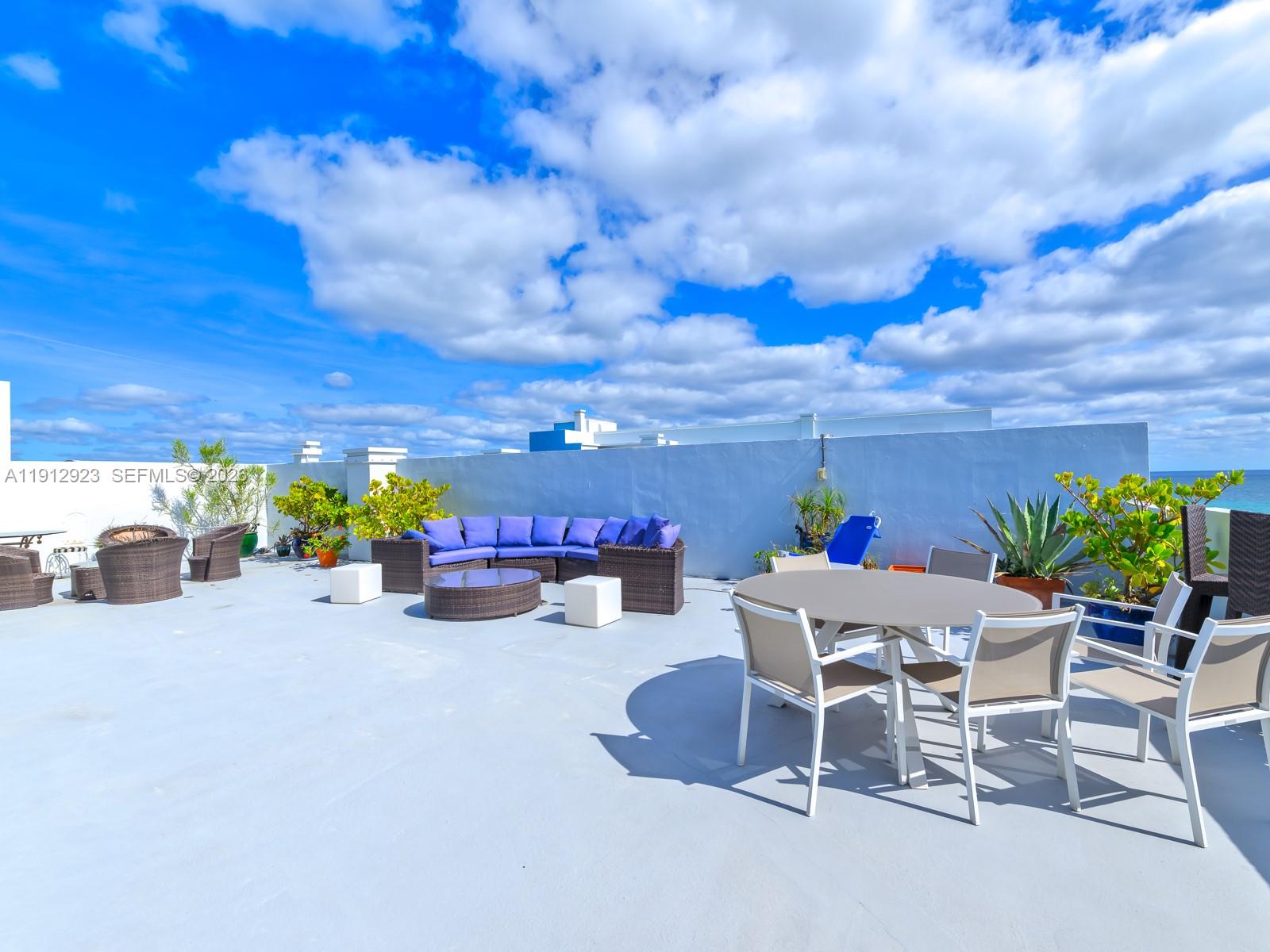 Live on the beach and stroll on the broadwalk in this exceptional three bedroom two bathroom just under 3,000 sf penthouse condo featuring a massive private terrace with wraparound views. The interior showcases a truly unique design with reclaimed Chicago brick flooring throughout, vibrant accents, and an open living space filled with natural light. The chefs kitchen, spacious bedrooms, and seamless indoor-outdoor flow make this home perfect for relaxing or entertaining. Complete impact windows and heated rooftop pool. Enjoy sunrise coffees, ocean breezes, and unmatched privacy. Unit includes two covered parking spaces. Both 40 & 50 year certifications have been completed and there are no pending assessments. On Hollywood Beach conveniently located between Miami & Fort Lauderdale.