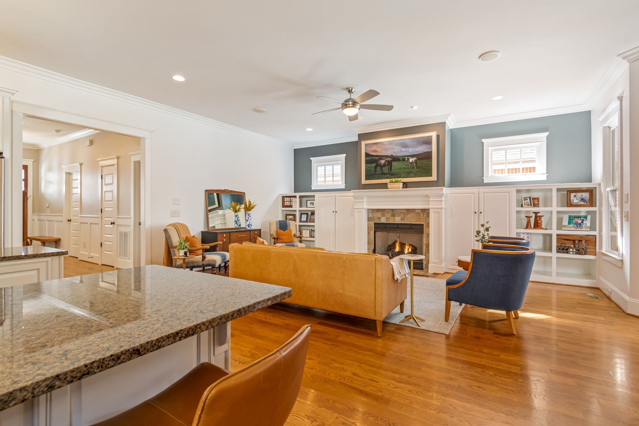 Beautifully upgraded home in Yorba Linda offering 4 bedrooms, 2 bathrooms, and approximately 1,843 square feet of living space on a generous 7,800 square foot corner lot. The inviting living room sets a warm tone, leading into a well-appointed kitchen featuring custom cabinetry, granite countertops, stainless steel appliances, a pantry, and a breakfast bar that opens seamlessly to the family room.