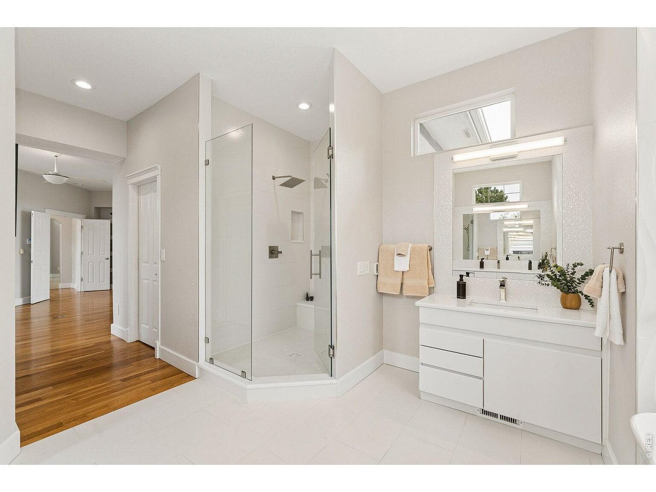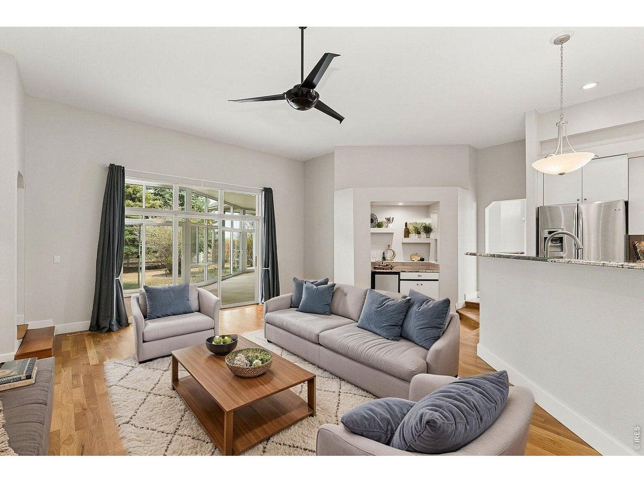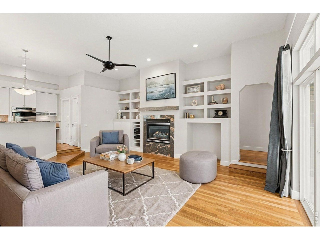 SLEEK SERENITY MOMENTS FROM JORDAN CREEK. Step into this modern beauty to experience the cascade of natural light flowing through a massive wall of windows, w/stunning views rarely found near so many comforts. Top to bottom slate tile encases the gas linear fireplace, highlighting soaring ceilings, clean lines, and incredible open span of the living room.
