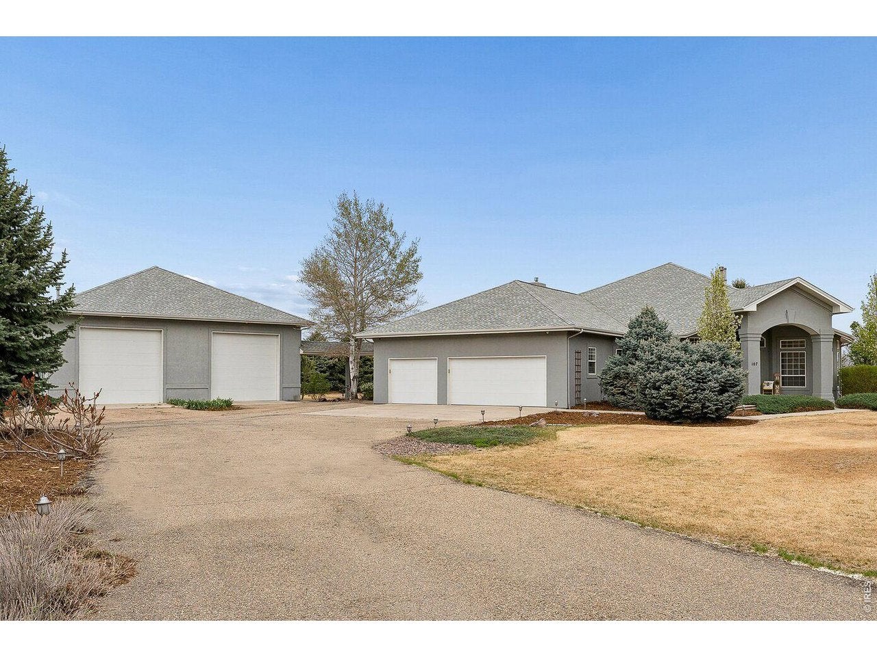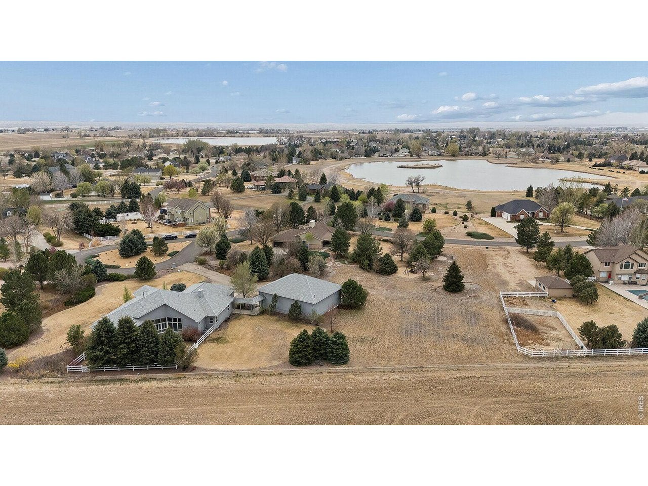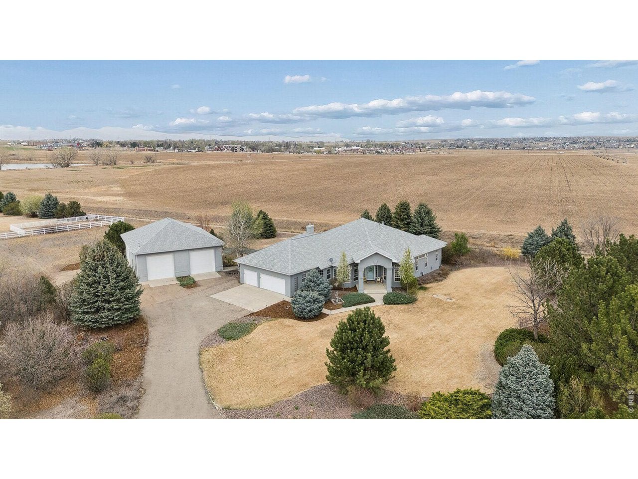Car enthusiast? RV Traveler? All Around Tinkerer? OVER 260,000 invested in 35 x 50 DETACHED SHOP with DRIVE THRU 12 x 12 Overhead Doors with Openers, 220v Service, and Gas HEAT awaits... Welcome to this stunning CUSTOM ranch-style home in the highly sought-after Mulligan Lake Estates. Nestled in a serene cul-de-sac setting with access to a private lake, this beautifully maintained 1.37-acre property offers a peaceful retreat with mature trees and abundant privacy and VIEWS! Step inside to discover an open floor plan featuring high vaulted ceilings and gorgeous wood floors throughout the main living area. With 4 bedrooms, 3.5 baths and a perfect work-from-home office, this home fits a lot of people beautifully. Many UPDATES including high-end light fixtures, a fully remodeled primary bath, and a gourmet kitchen. Fully finished basement with 1 bedroom, a craft room, fully bath, rec room, and PLENTY OF STORAGE. The community has a private lake for fishing and paddle boating (no motorized boats) and walking trails. A great feel of small town living with the convenience to everything the front range has to offer. Conveniently located minutes from I-25, 15 minutes to Longmont, and 20 minutes to Loveland, this move-in-ready home combines luxury, comfort, and convenience in a serene setting. This is a beautiful house in a great location - come check it out! Did I mention the MASSIVE Detached RV/Garage/Workshop?