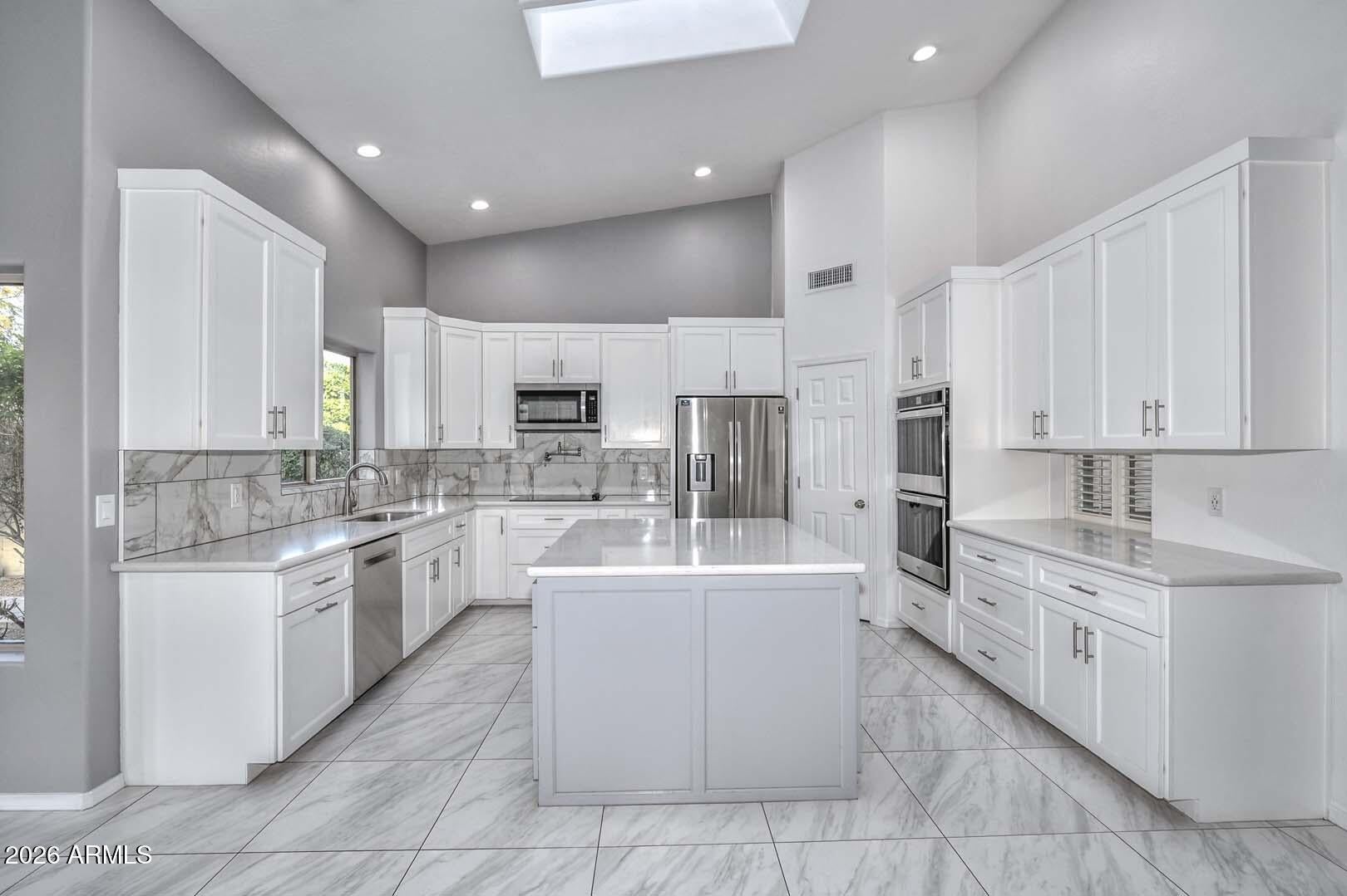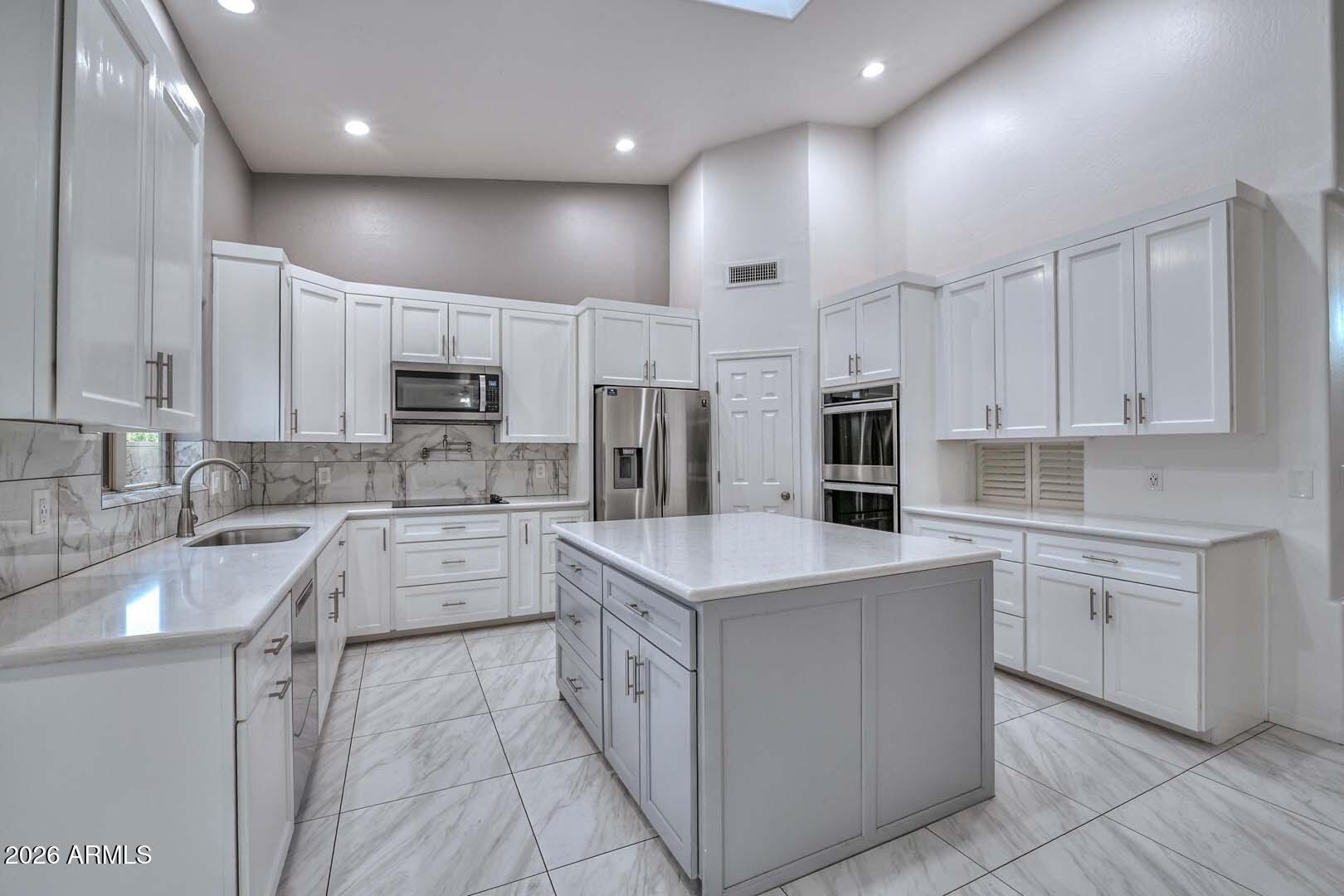 Gorgeous Medallion Home boasts a spacious floor plan with nearly 4,000 sq ft offering 5 BR, 3 BA, and numerous upgrades throughout!! Lg lot located in secluded gated community of Lookout Mountainside with mountain views! Beautiful interior accentuated by new carpet, new paint throughout, vaulted ceilings, large pillars, Plantation Shutters, cutouts, sky lights, and recessed lighting. Two Master Bedrooms -upstairs and downstairs. 2 total BR downstairs (including MA), 3 total BR upstairs (including MA) plus a large bonus/game room-perfect for pool table, games, guest room, office, playroom, etc. Generous linen closets and understairs storage. Fabulous light and bright eat-in kitchen with skylight, center island, and quartz countertops. Abundant white, soft-close cabinets. Stainless Steel sink, faucet, WP Microwave, WP Double Ovens, Samsung Refrig with water dispenser and ice maker, and Bosch dishwasher. Large pantry. Ex long and spacious family room. Kitchen Butlers Pass-Through to formal dining room. Upstairs MA features huge walk-in closet, plant shelves, new ceiling fan, MA bath with tub, shower, dual sinks, private toilet room and a storage pantry. Wooden staircase. 3 car extended garage - ex wide and ex deep. Electrolux Central Vacuum. Laundry Room has sink with new faucet, cabinets with countertops, Whirlpool Duet Washer/Dryer front loaders. Upstairs Laundry Chute. All New 2025/26: Garage Doors, water heater, BR blinds, recessed lighting, patio lights, irrigation valves, interior paint, Guest BA updates with fixtures, toilet and vanity. MA Shower & tub upgrades, toilet, and hardware fixtures (door knobs, faucets, handles, etc.). New 2024: Tile Roof New 2019: Floor Tile, Kitchen Remodel New 2018: Exterior Paint, A/C unit (1), Bath updated with hand bars, vanity, granite and toilet. Step into a backyard oasis featuring a sparkling Pebble Tec pool, flowering vegetation, fruit tree, and beautiful sunsets viewed from covered patio and pool. There is a grassy area, flagstone, oversized side yard, and planters. This extraordinary estate has it all! Near Interstates 51 & 101, PV Mall, schools, hiking trails, and highly rated eateries. Adjacent to mountain preserve with hiking trails & short walk to park. Experience North Phoenix living at its finest!