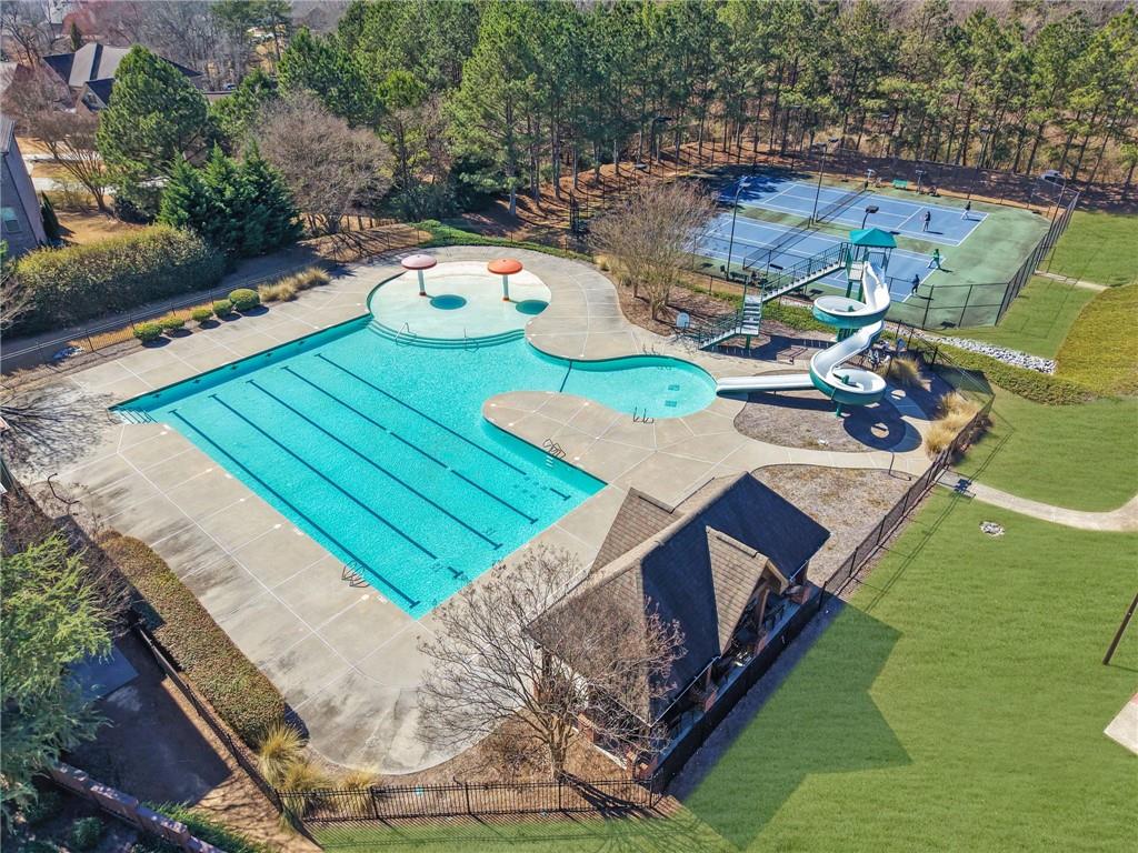 Welcome to this beautifully maintained Craftsman-style home in the highly sought-after, gated community of Stonewater Creek. From the moment you step into the welcoming foyer, youll appreciate the thoughtful design and effortless flow of this exceptional residence. The heart of the home is the beautifully appointed kitchen, featuring gleaming cabinetry, stainless steel appliances, an oversized refrigerator, and an open view to the family room. The main level also offers a private guest suite, ideal for hosting visitors or accommodating multigenerational living with ease. Relax in the spacious family room or step outside to the rear screened-in porch, where you can enjoy year-round comfort and serene views. The backyard is designed for both relaxation and entertaining, complete with a stone patio, covered screened area, and an oversized Jacuzzi hot tub that creates your own private retreat. Upstairs, youll find generously sized secondary bedrooms with walk-in closets and a versatile flex space ideal for a craft room, recreation room. The oversized primary suite serves as a true sanctuary, featuring a double vanity, spa-like bath, and a walk-in closet with a custom organization system. The full, unfinished basement provides abundant storage and endless possibilities, whether you envision an additional bedroom, home theater, gym, or extended living space. Residents of Stonewater Creek enjoy resort-style amenities including a beautifully appointed clubhouse, a pool with water slide and splash pad, and multiple tennis courts. Conveniently located near highly rated public schools, local dining and shopping, and offering easy access to I-85, this home combines luxury, comfort, and convenience in one exceptional offering.