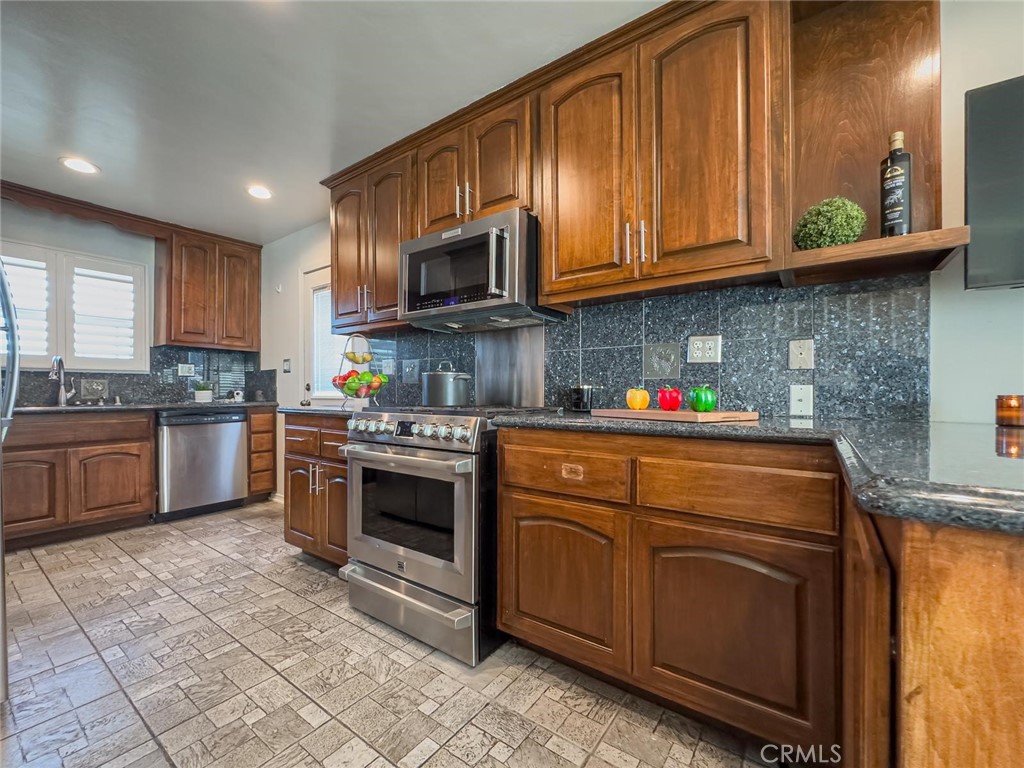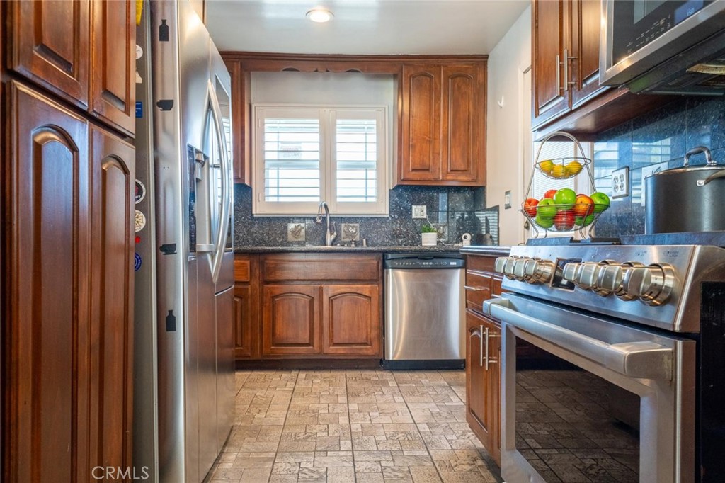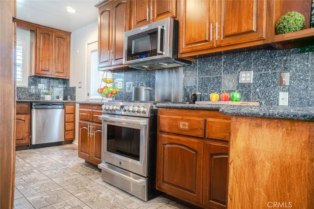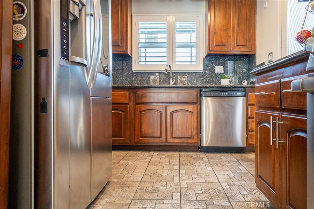 Welcome to this charming three bedrooms two bath single-story California Traditional-style home. Featuring a spacious driveway with room for up to three vehicles and an attached two-car garage. Equipped with solar panels for energy efficiency. Interior offers durable vinyl flooring in the living room and bedrooms, tile flooring in the kitchen and dining area, and plantation shutters throughout. Updated kitchen includes black granite countertops, granite backsplash, and mahogany-stained cabinetry, with washer and dryer hookups. Bathroom features subway tile surround and updated finishes. The primary bathroom has a jacuzzi bath with water jets. Enjoy recessed lighting in the main living areas and sliding door access to a backyard with a mix of concrete and grass, perfect for entertaining. Additional highlights include tankless water heater and rear chimney. Points of interest close to this home includes, South Bay Pavilion Mall, Carson Town Square Shopping Center, Victoria Park. For sports and entertainment, there is Dignity Health Sport Center. Home of the LA Galaxy soccer team and major concert events venue. Freeway access, commuter friendly, close to 91,110 and the 405 Frwy