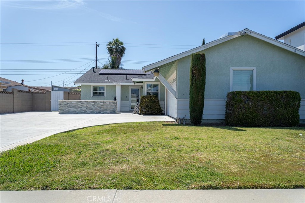 Welcome to this charming three bedrooms two bath single-story California Traditional-style home. Featuring a spacious driveway with room for up to three vehicles and an attached two-car garage. Equipped with solar panels for energy efficiency. Interior offers durable vinyl flooring in the living room and bedrooms, tile flooring in the kitchen and dining area, and plantation shutters throughout.