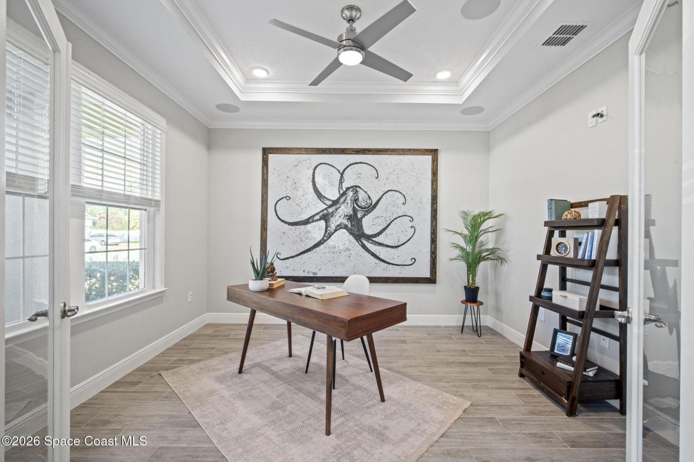 Step into the Space Coast lifestyle youve been dreaming of in N Merritt Island! Offering just over 3,000, 4BR, 3BA Office & 3 Car Garage. Soaring 12 ceilings with tray accents, crown molding throughout & a bright open floor plan.