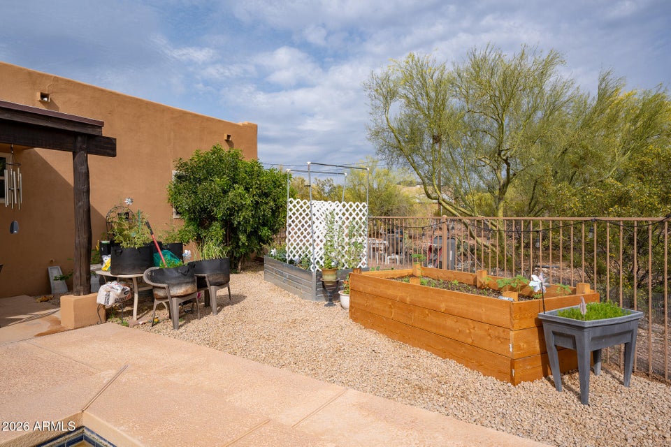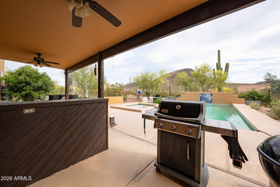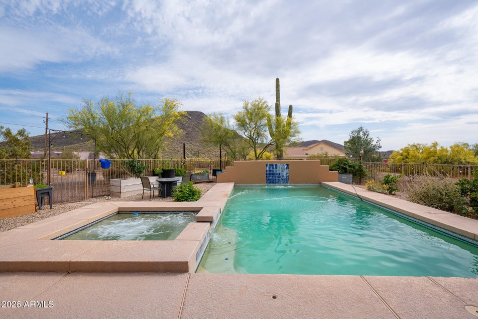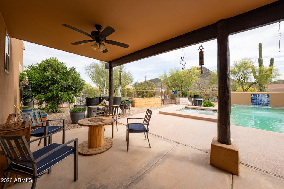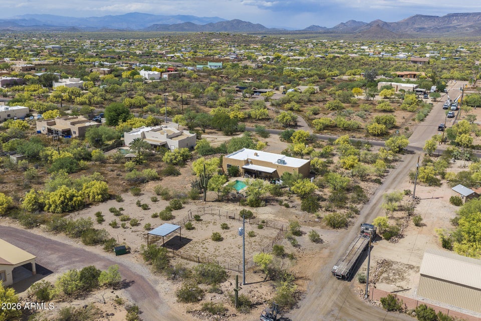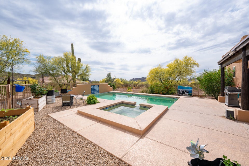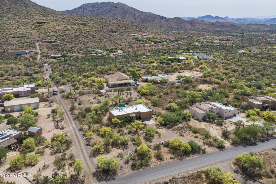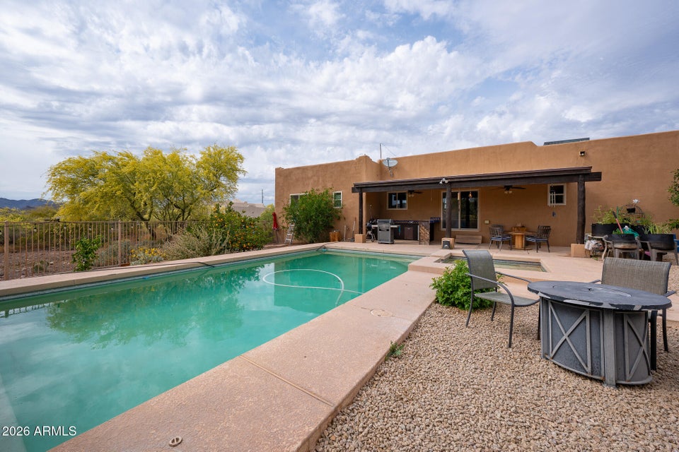Experience the perfect blend of Arizona lifestyle, privacy, and functionality with this beautifully maintained 4-bedroom, 2-bath custom home situated on 1.06 acres in one of the most desirable areas of New River--on the east side of Circle Mountain, known for its exceptional aquifer and clean, great-tasting water. From the moment you arrive, youre welcomed by a charming front sitting area with a tranquil koi pond, setting the tone for what truly feels like a private retreat reminiscent of a high-end bed and breakfast. Inside, the home features 10-foot ceilings, Saltillo tile flooring throughout with new luxury vinyl plank flooring in owners suit , granite countertops, GE Profile appliances, and a stunning travertine backsplash. The inviting living room showcases a beautifulfireplace, creating warmth and character. Major upgrades provide peace of mind, including all new dual-pane, low-E windows and sliding glass door (2022), new front door and casing (2023), water heater (2023), new roof (2026), complete exterior paint and wood staining (2025), and all Viga poles were replaced (2026). Additional improvements include a newer AC , garage door opener, and updated pool equipment (approx. 5 years).The outdoor living space is designed for true Arizona enjoyment, featuring a resort-style pool and spa, outdoor kitchen and barbecue area, covered patio, and multiple areas to relax and take in the breathtaking mountain views and unforgettable sunsets. The property has a turn out area, and plenty of room to build a mare motel or more for horse enthusiasts with access to endless riding, hiking, and biking trails throughout the New River mountain range, with views of Pyramid Peak, Table Mountain, and beyond. The grounds also include mature lemon and pomegranate trees and a dedicated gardening area, adding to the propertys charm and sustainability. A rare opportunity to own a true desert sanctuary where comfort, character, and wide-open living come together--this is more than a home, its a lifestyle.