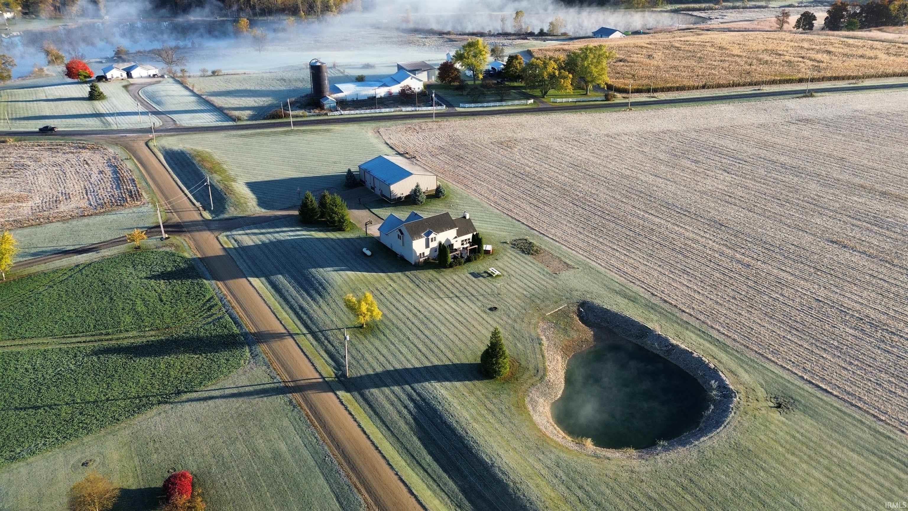 SELLER RELOCATING! PRICED TO MOVE!! Nestled on 5 private acres and back portion could be its own separate buildable lot. This exceptional estate blends refined craftsmanship with resort-style living. The home offers 3 spacious bedrooms and 2.5 baths, anchored by a dramatic floor-to-ceiling stone fireplace that creates a stunning focal point in the main living area. Thoughtfully designed custom cabinetry and built-ins add both beauty and function throughout. Step outside to your own retreat featuring a pond, new concrete patio with pergola, and a hot tub‹”perfect for relaxing or entertaining while taking in peaceful country views. For hobbyists, entrepreneurs, or collectors, the impressive 45x60 barn is a standout, equipped with 14' overhead doors, Modine radiant tube heat, a wood burner, and window A/C, making it usable year-round. The entertainment continues in the speakeasy-themed basement with full bar, a true showstopper complete with a pool table, projection screen, and full entertainment setup‹”ideal for hosting unforgettable gatherings or cozy movie nights. Major updates provide peace of mind, including brand-new siding and roof in 2024 and property is protected by Night Owl system. This one-of-a-kind property offers space, privacy, and character rarely found, all in a setting designed for both everyday comfort and extraordinary entertaining.