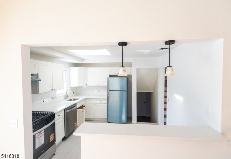 Nothing to do but unpack! Beautifully renovated 4-bedroom, 2 full-bath split-level home offering modern upgrades and a convenient location in one of Carterets most desirable neighborhoods. This move-in ready property features brand-new siding, a new roof, and a new hot water heater for peace of mind. Inside, youll find a stunning new kitchen complete with new cabinetry, quartz countertops, and brand-new appliances, along with fully updated bathrooms. Refinished hardwood floors run throughout the home, adding warmth and character. The spacious formal living room and dining room combo boasts vaulted ceilings, creating an open and airy feel thats perfect for entertaining. The new garage door opener, and new epoxy floors in the garage and partially finished basement brighten up the spaces. Conveniently located close to NYC bus transportation, the NJ Turnpike, Garden State Parkway, and Routes1, 9, and 287, making commuting a breeze.