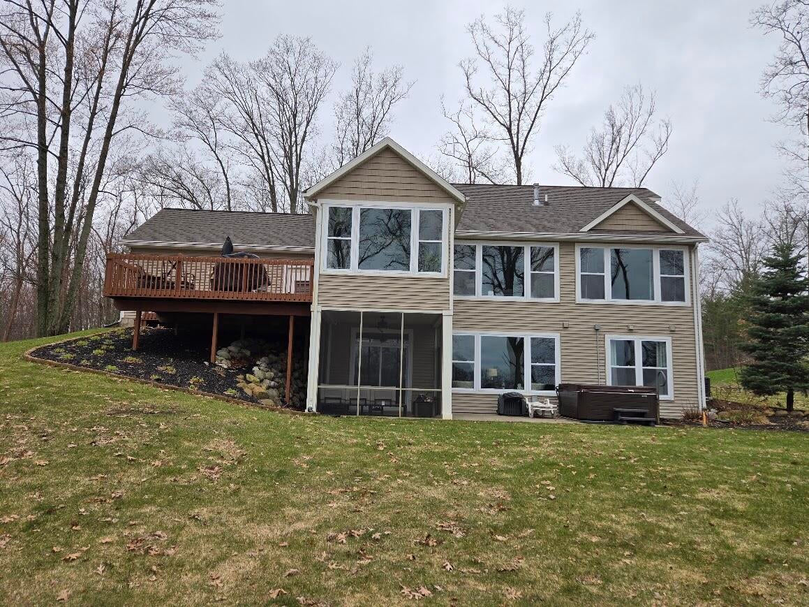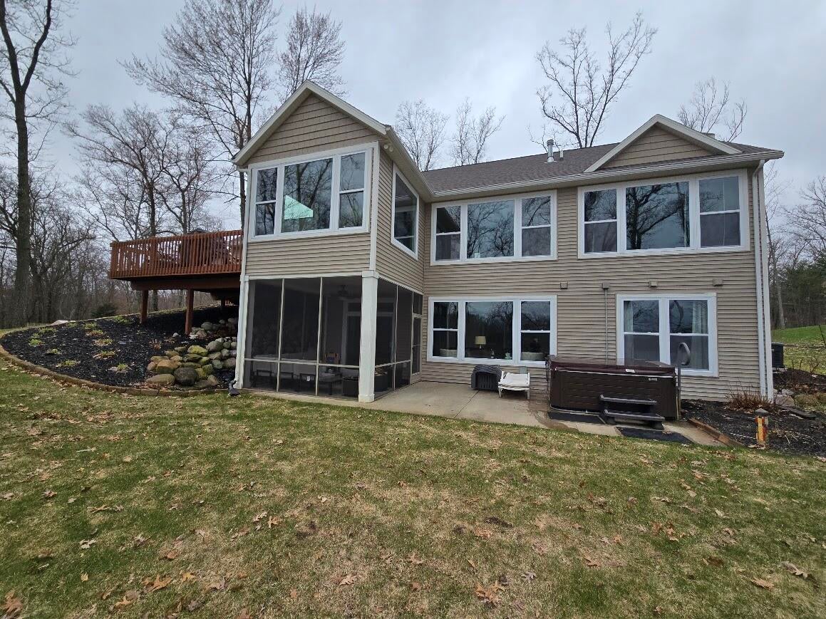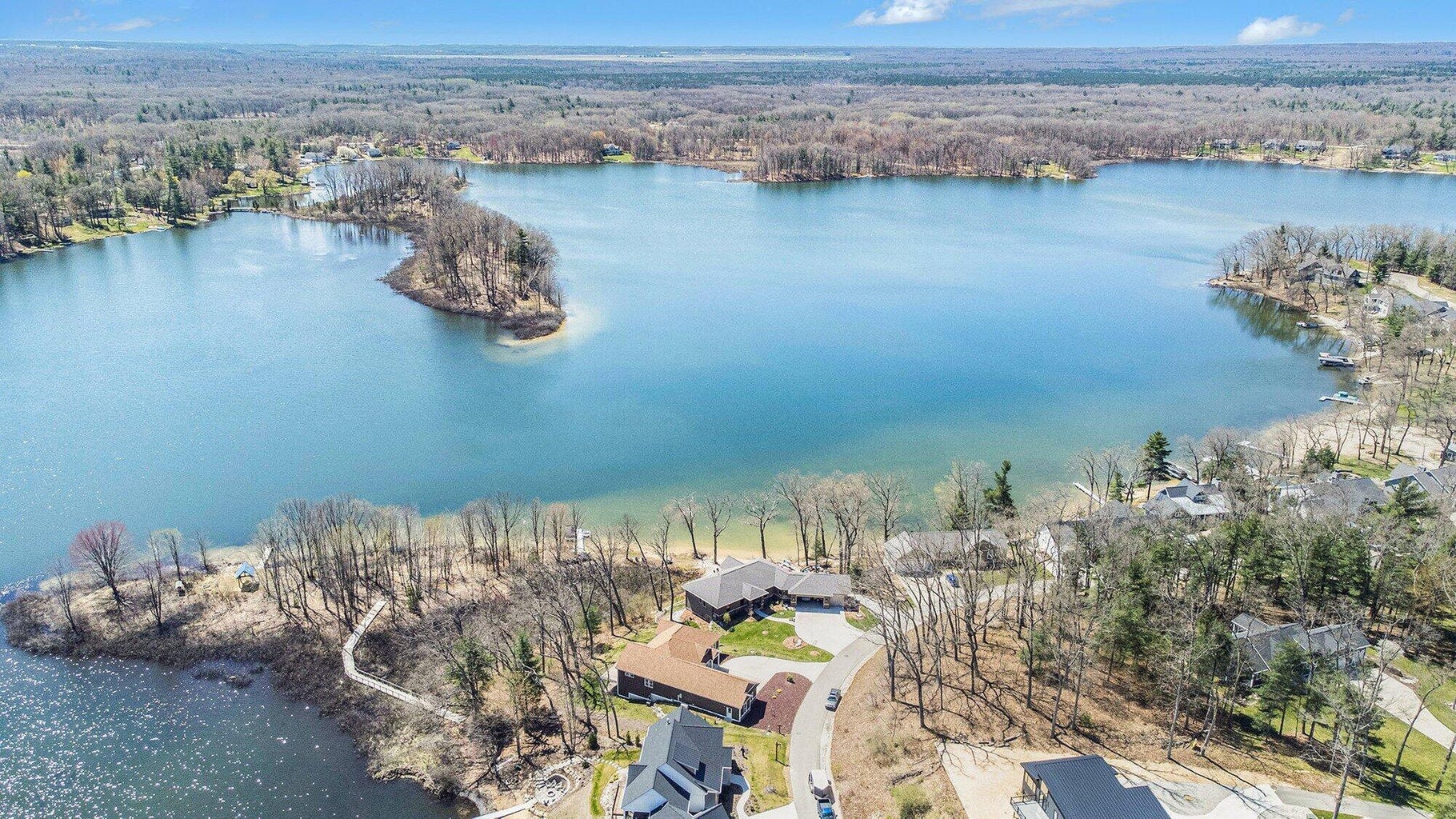 This custom built parade of homes 3 bedroom 2.5 bath ranch offers 82 feet of private frontage on all sports Petit Lake. Petit Lake is a private lake AND all sports!! The home has a a main floor sunroom over looking the lake, a huge primary suite, custom kitchen and a living room with a gas log fireplace. The lower level has a large family room, and a screened in room to enjoy those lake views too. On the outside youll find a new Generac generator, a hot tub, and a sloping yard down to the lake. The home sits at the end of a cul de sac which allows for privacy too. This home and property truly has it all. Call today for a private tour!