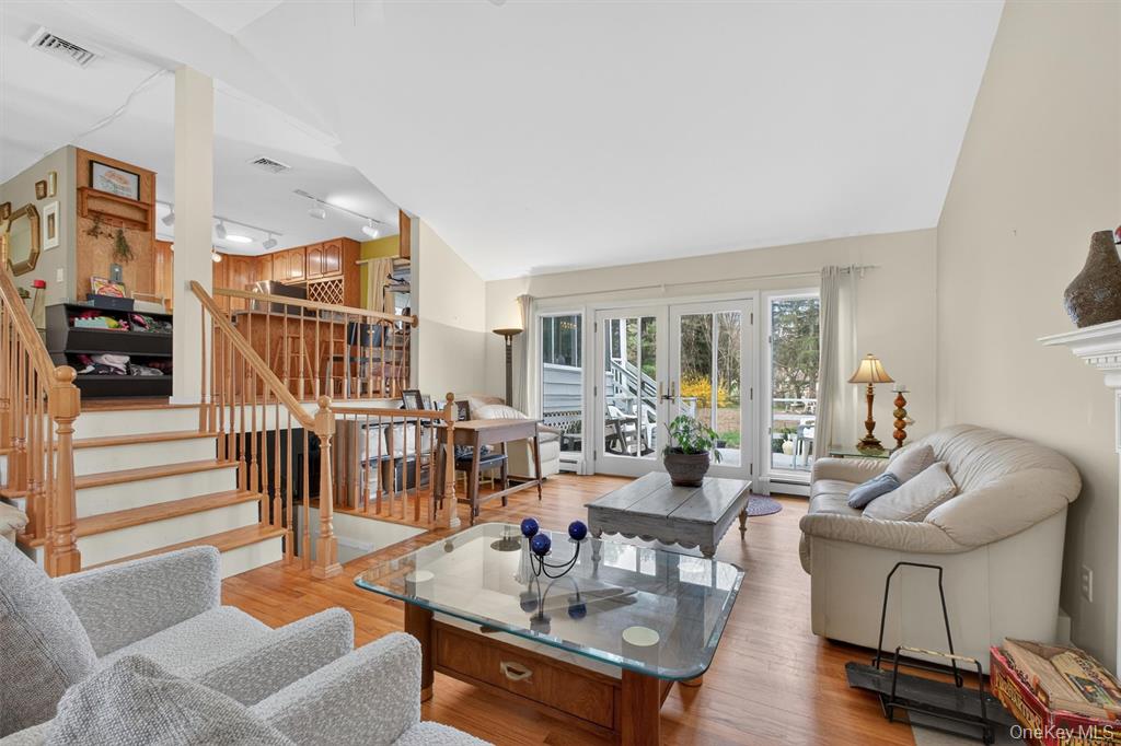 Discover the comfort and versatility of this well-maintained raised ranch, set on a corner lot in the established Brettview Acres community. An expansive living room addition anchors the main level, featuring hardwood floors and a cozy fireplace, with French doors opening to a private deck for easy indoor-outdoor living.