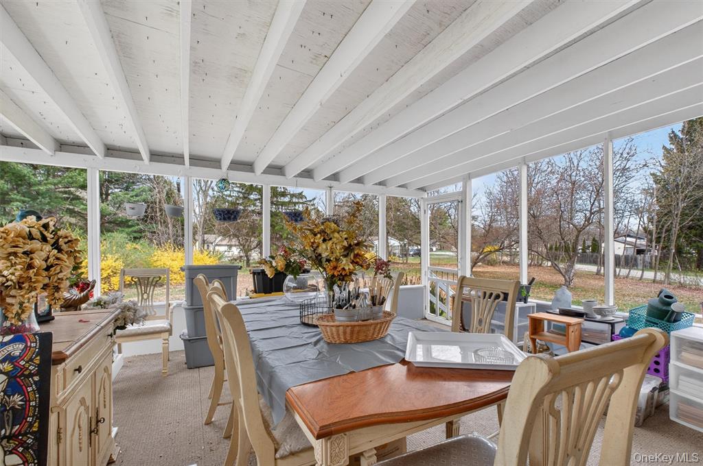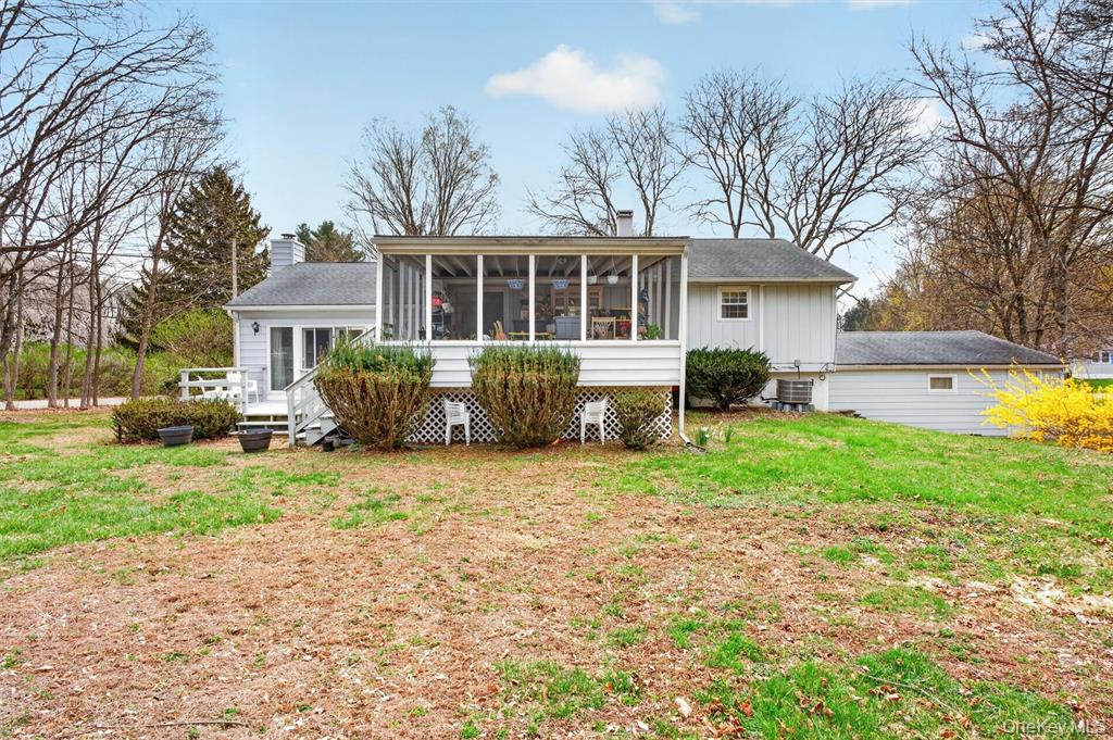 Discover the comfort and versatility of this well-maintained raised ranch, set on a corner lot in the established Brettview Acres community. An expansive living room addition anchors the main level, featuring hardwood floors and a cozy fireplace, with French doors opening to a private deck for easy indoor-outdoor living. The main level offers a functional kitchen with ample cabinet and counter space, a formal dining room, three comfortable bedrooms, and a full bathroom. The lower level adds even more flexibility with a partially finished space that includes a family room, laundry area, an additional room ideal for hobbies or home office use, and a second full bathroom. Enjoy the outdoors from the large screened-in porch overlooking the level backyard — perfect for relaxing or entertaining. Additional highlights include 200-amp electrical service, a newer high-efficiency oil boiler with baseboard heat, and central air conditioning with heat-pump functionality to help manage energy costs. A spacious two-car garage addition provides plenty of room for vehicles, storage, and workshop needs. Conveniently located near everyday amenities, schools, shopping, and major commuter routes, this home offers both comfort and practicality.