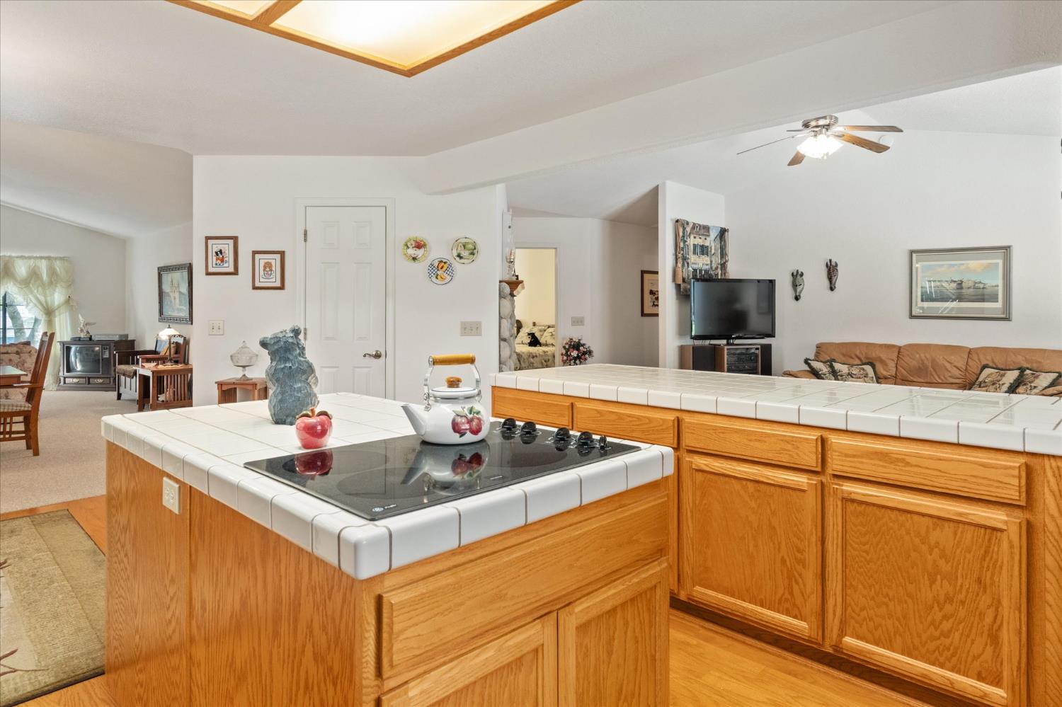 Immaculate, like-new Ranch offers pristine curb appeal & stunning open floor plan with impressive finishes. Soaring ceilings highlight the Great Room with built-in electric fireplace & rich wood mantle, framed in stone w/ wall of windows. Kitchen features granite counters, center island, pantry & sunny breakfast nook that opens to deck overlooking the tree-lined yard.