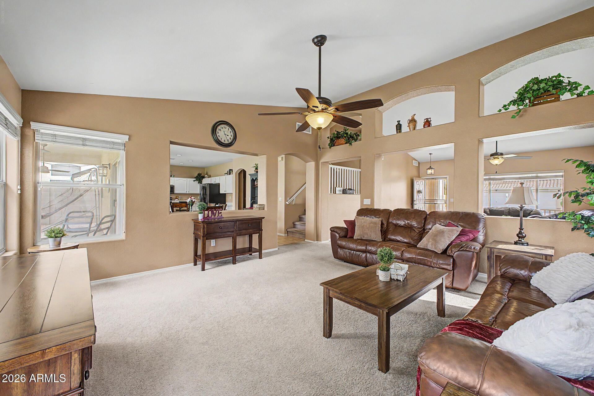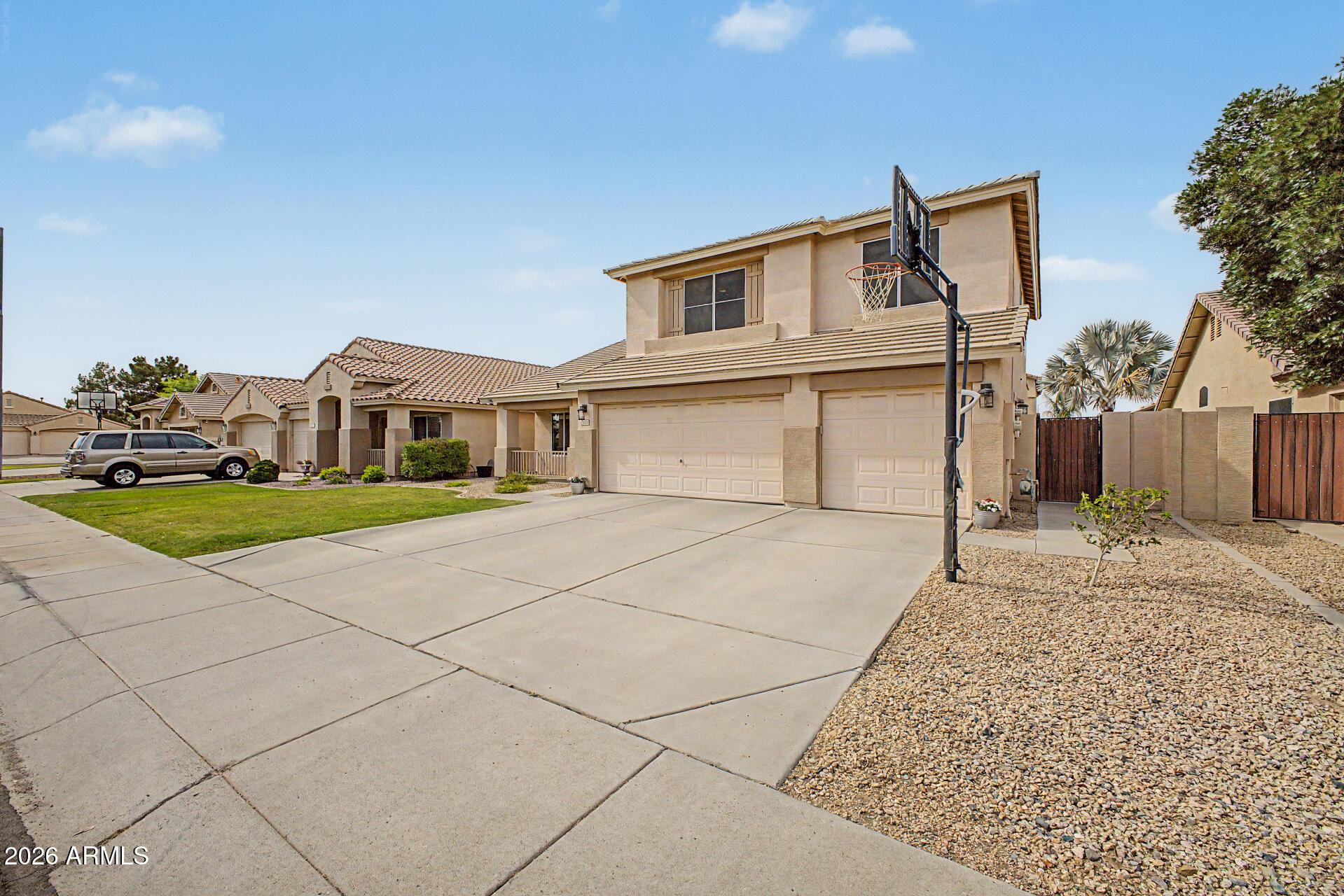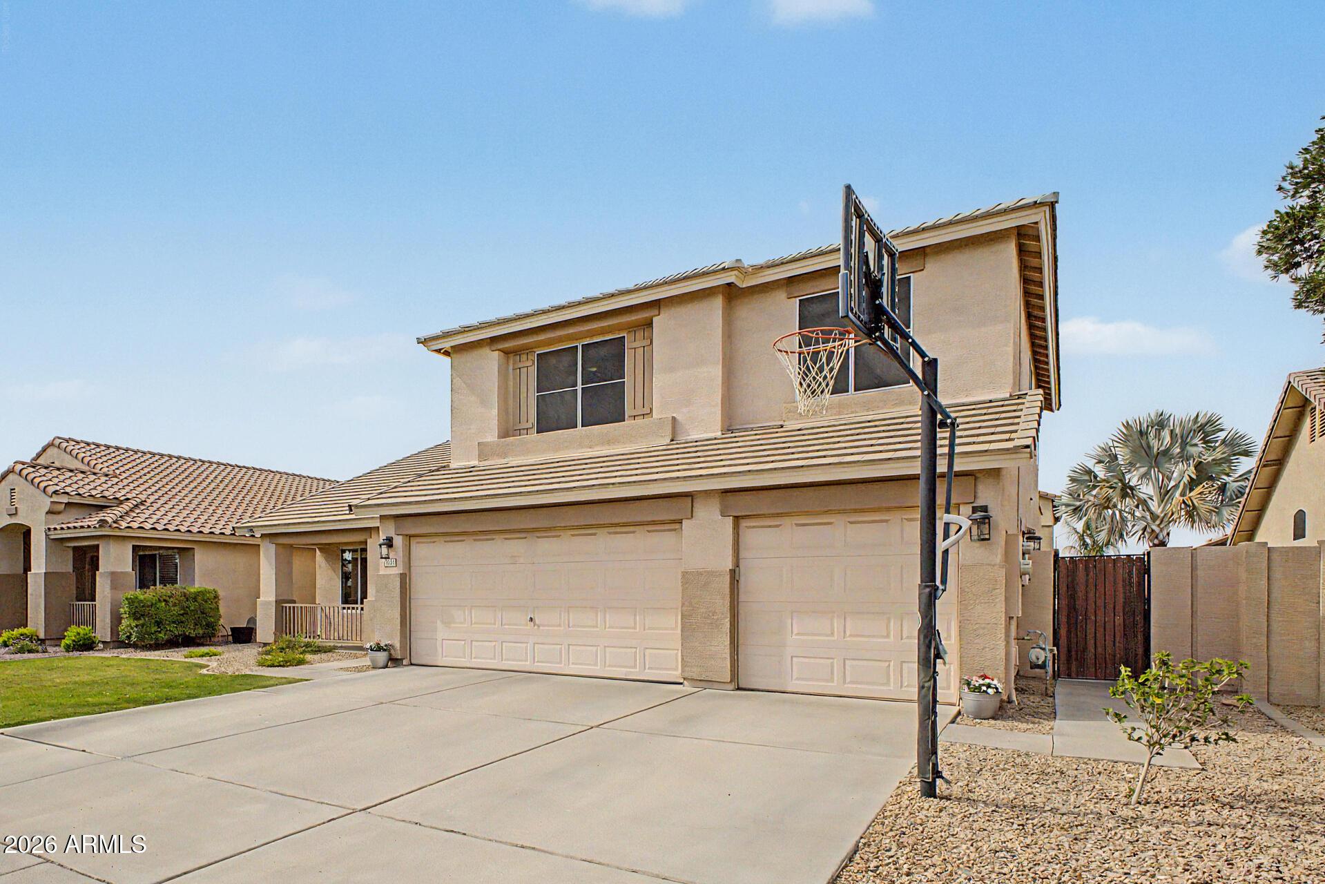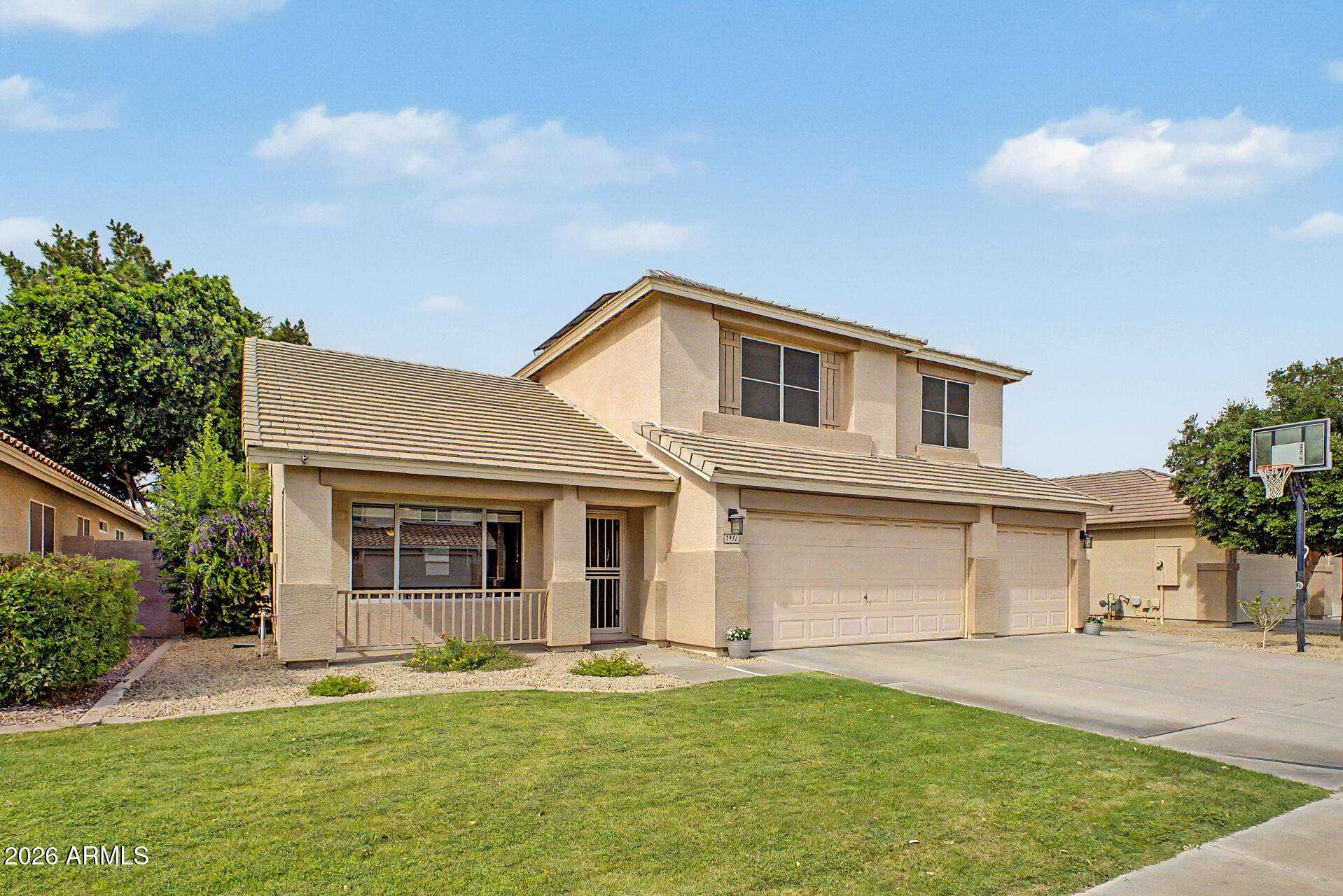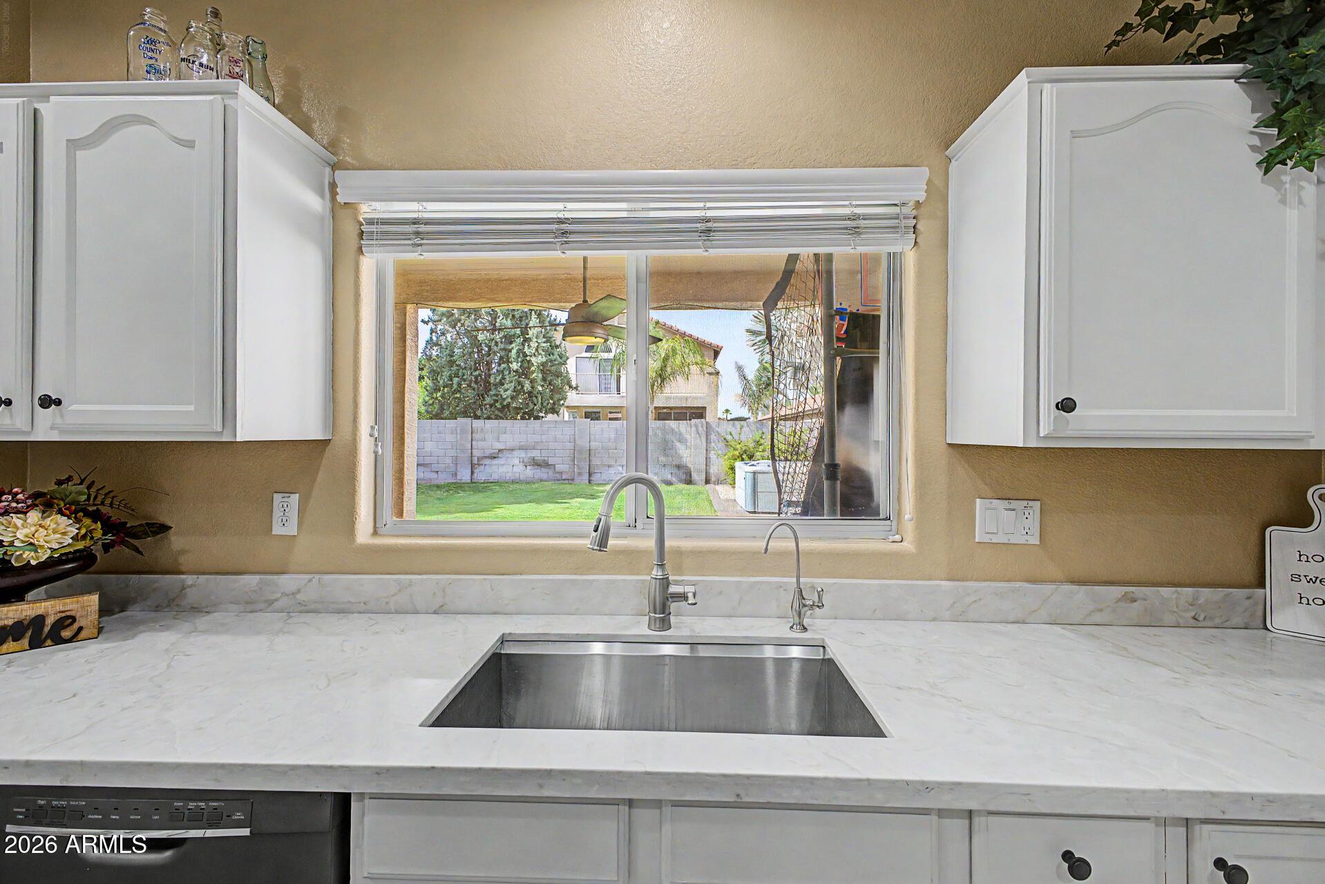 Original owners who meticulously maintained & upgraded house.Owned solar panels, saving hundreds of dollars per month on electricity.Upstairs bathrooms redone with easy to clean tub/shower and master walk in shower. New granite countertops, sinks, hardware, and painted cabinet vanities.Large kitchen with many cabinets, drawers, & counter space. Raised eat-in bar. Large pantry with additional shelves put in for storage.Kitchen cabinets painted and new quartz countertops. Large single bowl stainless steel sink, new refrigerator and washer/dryer convey.New fans and fixtures throughout house, including the back patio w/mister system.New salt water, hot water tank, & reverse osmosis. Gas line to dryer is included. Backyard newly redesigned with pavers, lush bushes, green grass & saltwater spa.Large 3 car garage with cabinets for storage.Low traffic street with New River walking path at the end, Rated A schools.