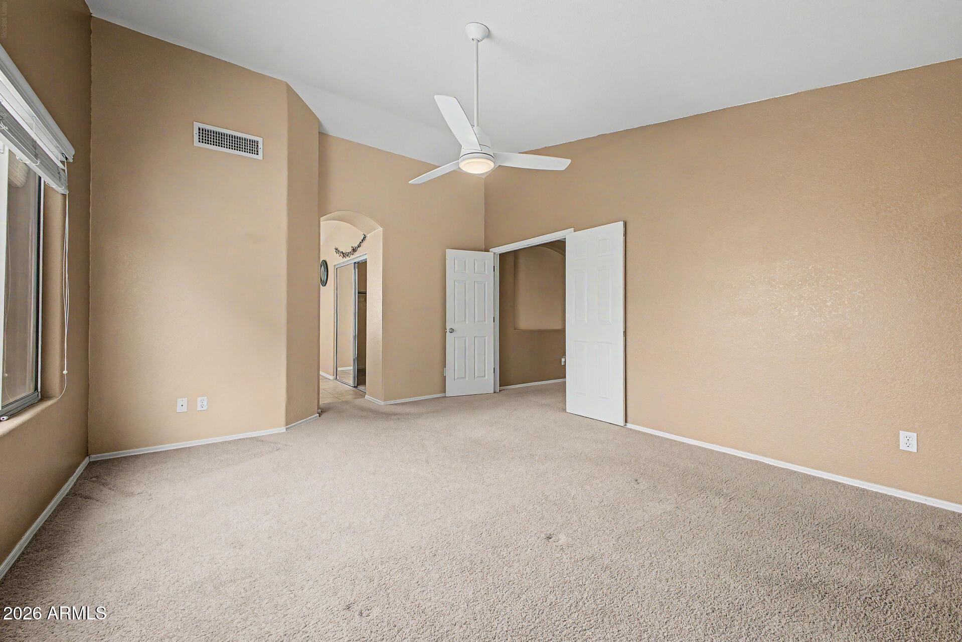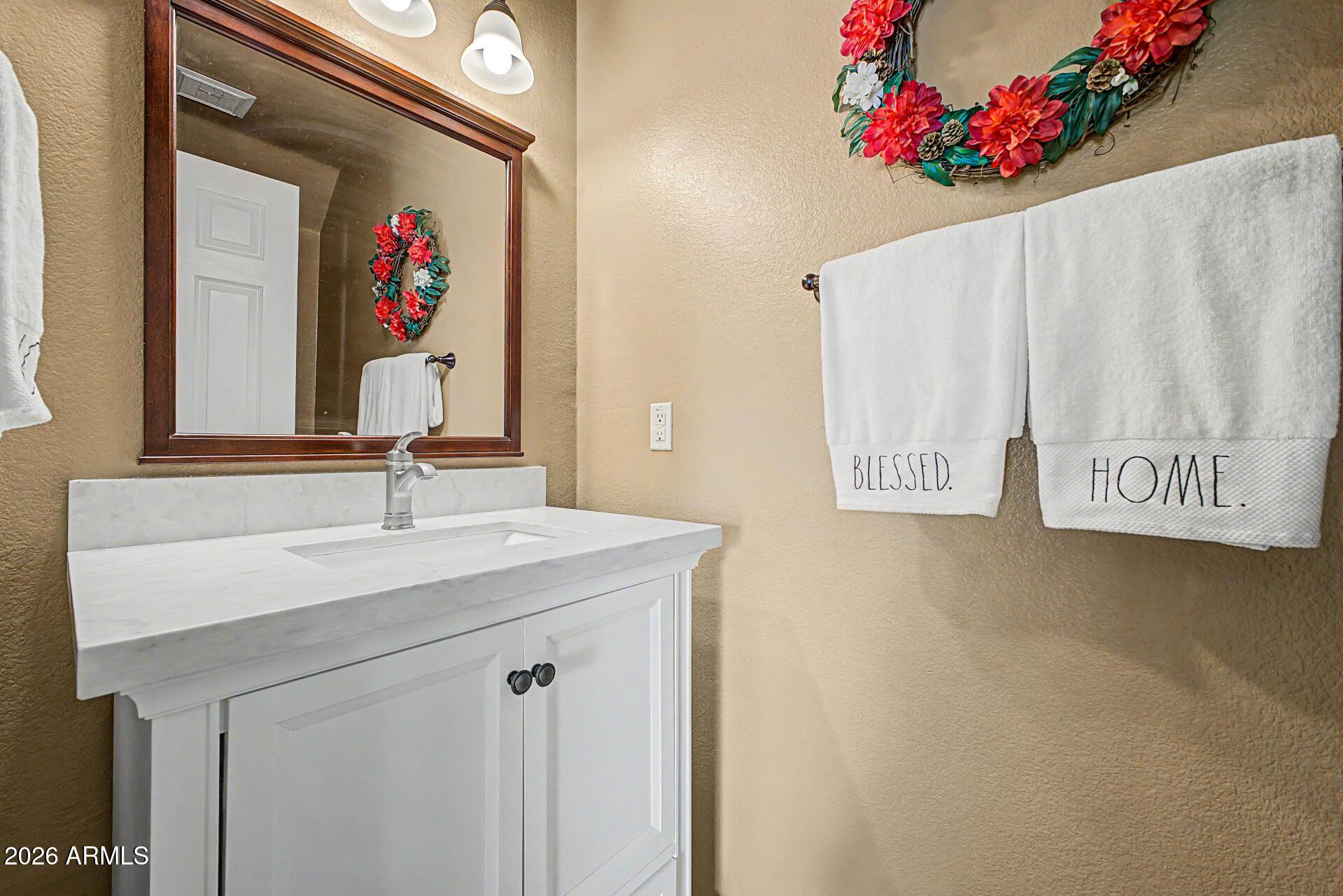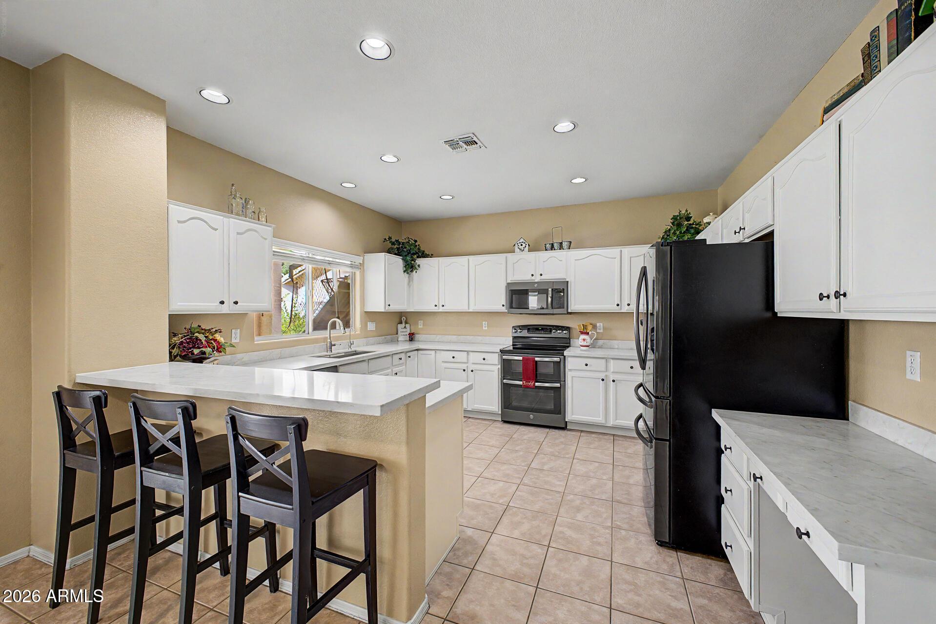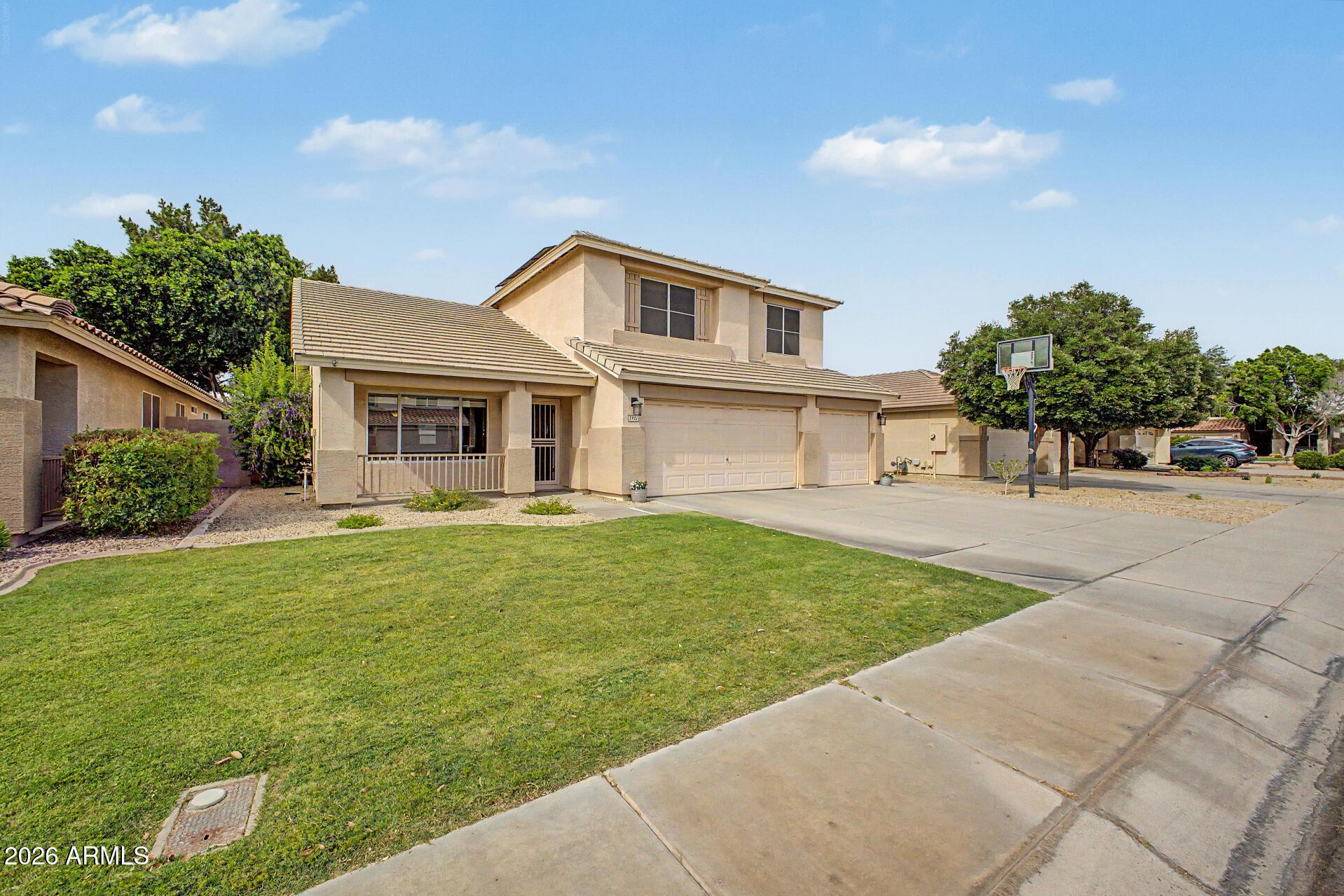 Original owners who meticulously maintained & upgraded house.Owned solar panels, saving hundreds of dollars per month on electricity.Upstairs bathrooms redone with easy to clean tub/shower and master walk in shower. New granite countertops, sinks, hardware, and painted cabinet vanities.Large kitchen with many cabinets, drawers, & counter space. Raised eat-in bar. Large pantry with additional shelves put in for storage.Kitchen cabinets painted and new quartz countertops. Large single bowl stainless steel sink, new refrigerator and washer/dryer convey.New fans and fixtures throughout house, including the back patio w/mister system.New salt water, hot water tank, & reverse osmosis. Gas line to dryer is included. Backyard newly redesigned with pavers, lush bushes, green grass & saltwater spa.Large 3 car garage with cabinets for storage.Low traffic street with New River walking path at the end, Rated A schools.