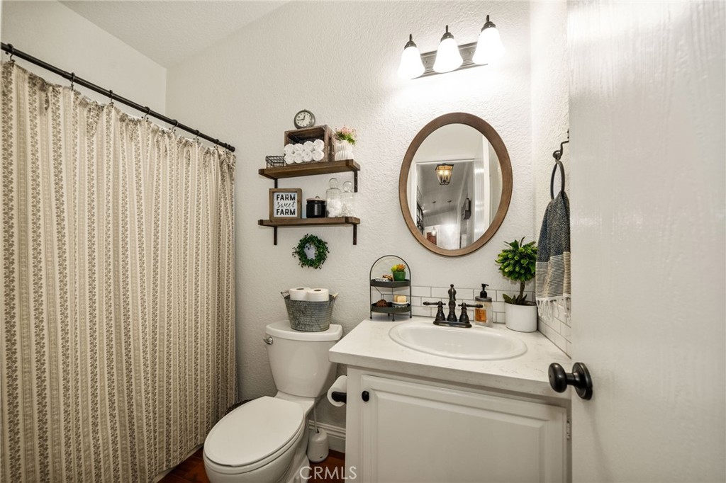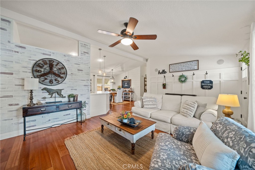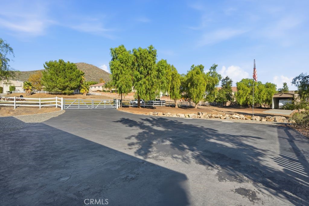 Pride of ownership shines in this meticulously maintained farmhouse style, permanent foundation home. The extra unique value in this opportunity with almost 2 acres and zoned R-A could possibly open up creative potential for buyers looking to expand with ADU or partial garage conversion, or adding structures etc. Custom upgrades include vaulted ceilings, real cherrywood flooring, recessed lighting, ceiling fans, shiplap and board-and-batten accents, elegant quartz kitchen countertops, and a costly 4-stage reverse osmosis filtration included. More upgrades include a 200-amp electrical panel, newer water heater, and an energy saving whole house fan. The walk-in pantry features motion lighting and extra outlets, and all appliances including refrigerator included in purchase. The utility sink in the separated laundry room off the kitchen adds convenience, and the washer and dryer are bonus gifts. Two of four bedrooms boast walk-in closets too! Step outside to an expansive front porch overlooking nearly 2 acres of beautifully cared-for land. The property also offers two oversized detached 2-car garages (one ultra-high for lifted vehicles) with storage, workspace, utility sinks, and separate sub panels, plus a soundproof insulated music room and office between them. All structures are complete with rain gutters for property care, security lighting on timers, and an electric gated front fence with indoor button-controlled access. Fencing includes 3-rail wood, picket, and cross-fenced areas with a secure dog run, and auto sprinklers and drip systems make gardening effortless. Outdoor highlights include a built-in rock fire pit, vintage windmill, fruit trees, and a charming walking bridge over the natural riverbed irrigation. This almost 2-acre property is zoned for horses and agriculture. Perfect country living perks, just minutes from stores and freeways. A true Oasis blending rural charm with city convenience.