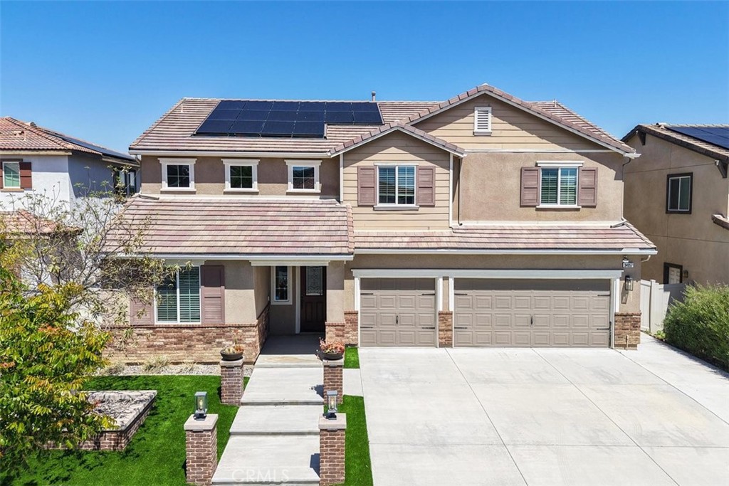 Amazing newer home......with no HOA! Incredible 5Br/3Ba with a Beautiful Pebble Tech Saltwater Pool and Spa, BBQ Island! Paid off 16 Panel Solar System, with Tesla Backup Battery, which means you'll never be left in the dark. Tankless Water Heater, Water Softener & Osmosis System. Electronic Car Charger. Entertainers dream kitchen with walk-in pantry, island and tons of cabinet space. Massive Great Room (25x17). There's a downstairs bedroom with full bath and spacious office (which is an optional 6th bedroom). Upstairs features a bright airy loft, big laundry room and 4 huge bedrooms. Primary Bedroom has a Newer Upgraded Beautiful Large Walk-in Shower, dual sink areas and a huge walk-in closet. Ceiling fans in all bedrooms. Backyard also features a dog run. There is no maintenance at all in the front and backyards. Near Alderwood Park with playground, large, enclosed dog run, pickleball & basketball courts, close to Loma Linda University Medical Center, Kaiser, new Costco, schools and shopping, This home will not last long!